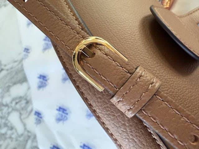 De riem van de tas is afneembaar en gaat doorheen de flap. Het handvat is subtieler en minder aanwezig en stijf als bij de klassieke Brillant. Het enige wat nog doet herinneren aan de klassieker is de boekel en de lederen detaillering errond. Het gehele concept van de Brillant is heruitgevonden met de Tempo. Mij doet hij meer denken aan de 90’s Macao, qua formaat en draagbaarheid. Ik vind hem perfect in Cinnamon, omdat hij zo slouchy valt. Om die reden vind ik een uitvoering in naturelle tinten mooi passen. In Aniline leder, met de belofte van een mooie patine, zou ik hem zelfs nog liever zien. Het is een tas om samen oud mee te worden.