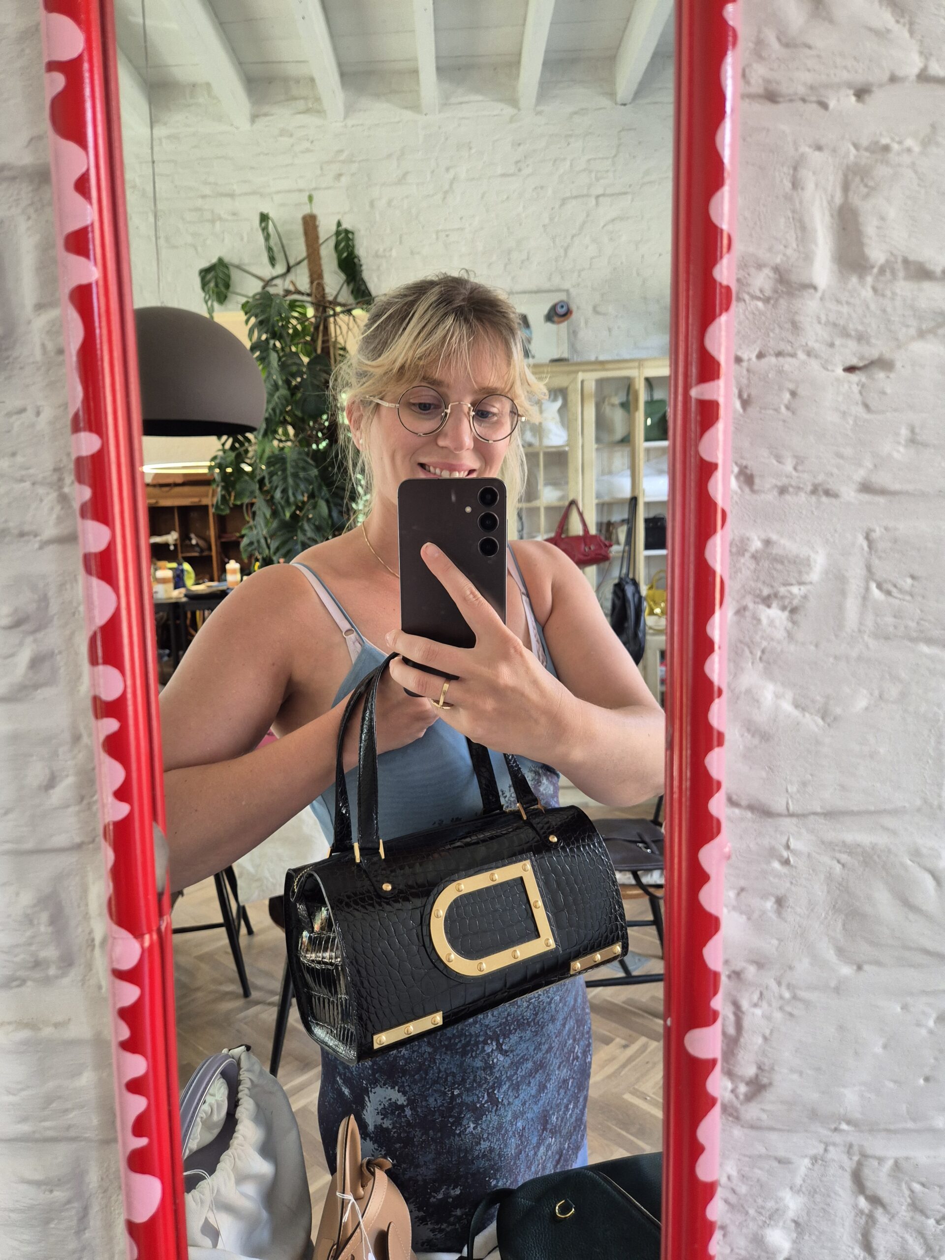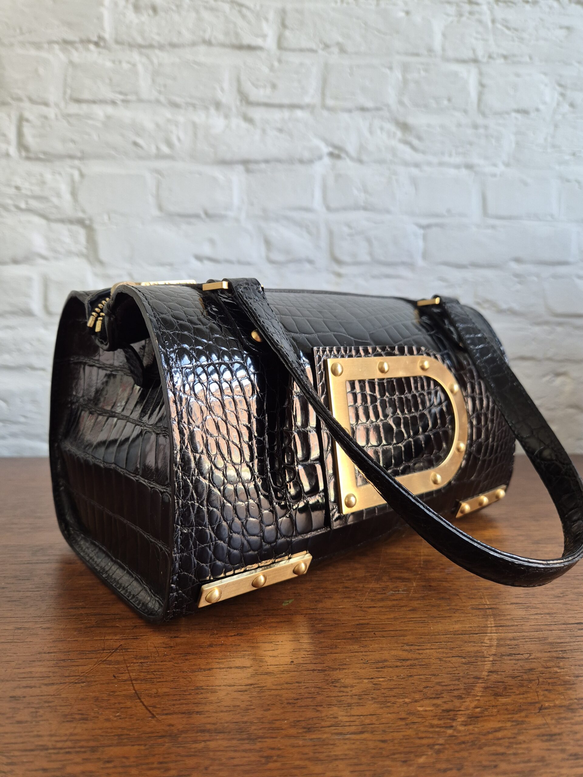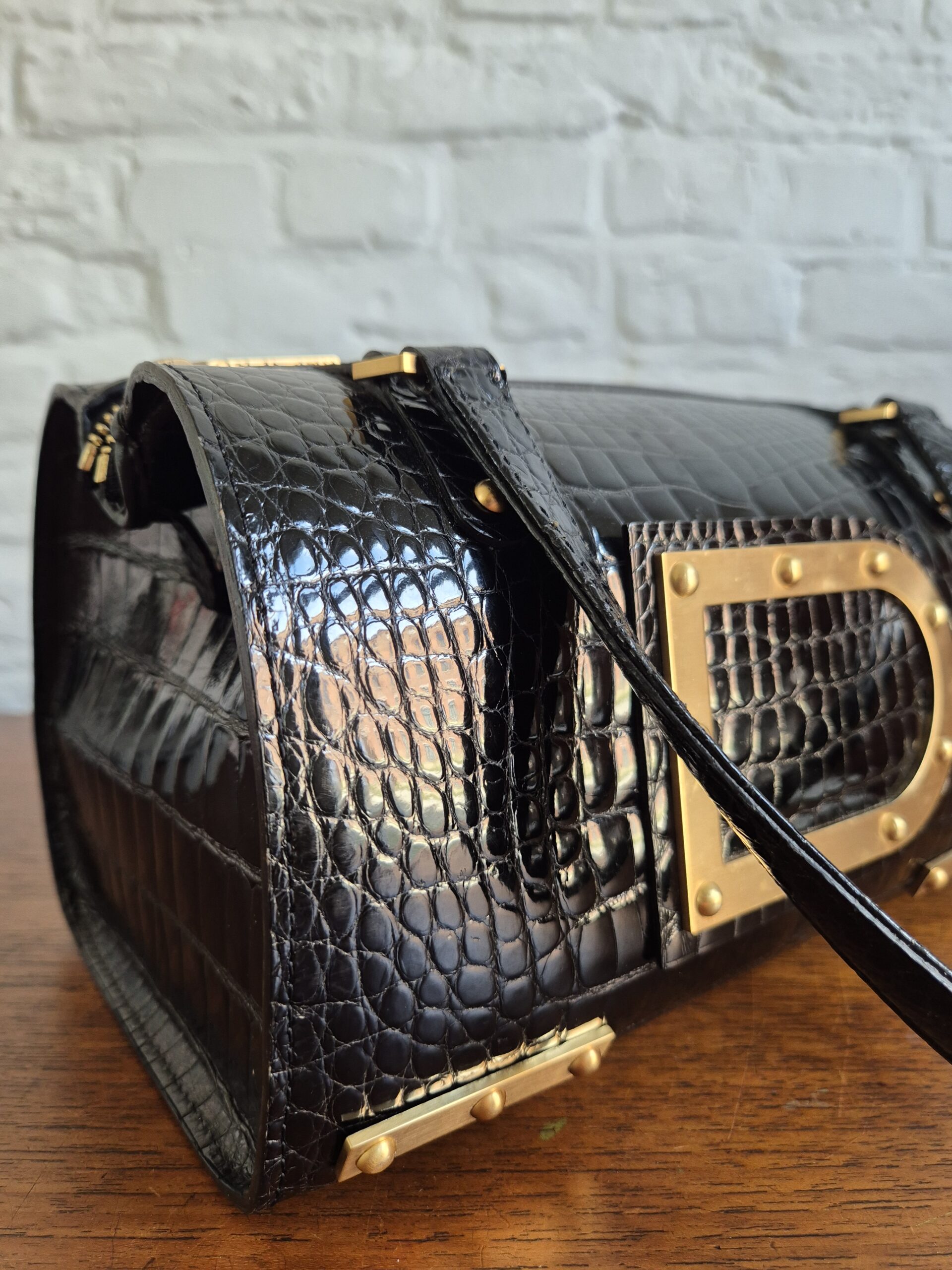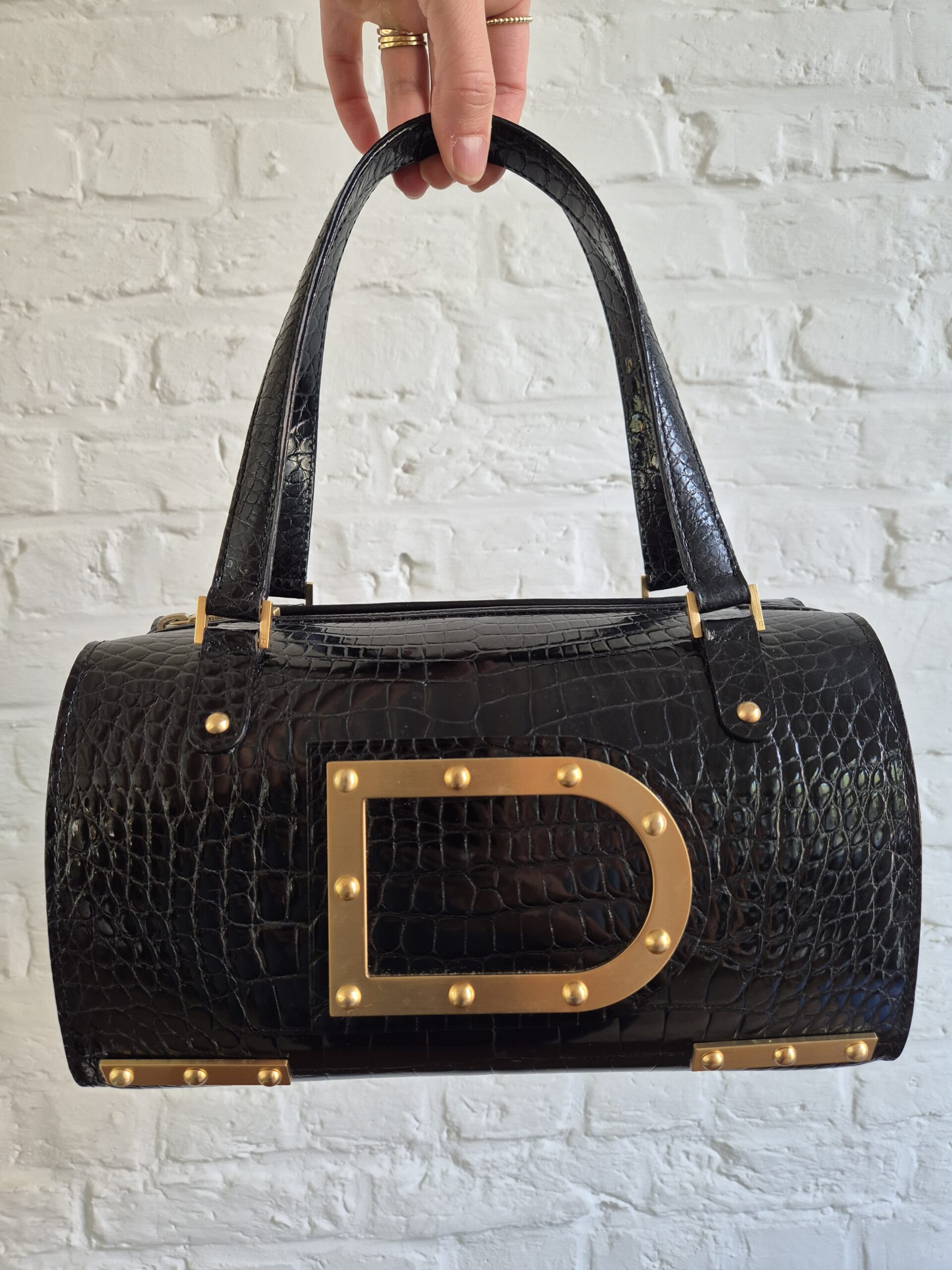 Astrid is een icoon! Met de grote D vooraan op de tas ook niet te miskennen. Al wordt het model soms verward met de Louise Boston. Zijn hardware is uitgevoerd is geborsteld goud. Een magnifiek contrast met de shiny krokodillenhuid. En jawel, die croco shiny nog even hard als in zijn begindagen in 2007.