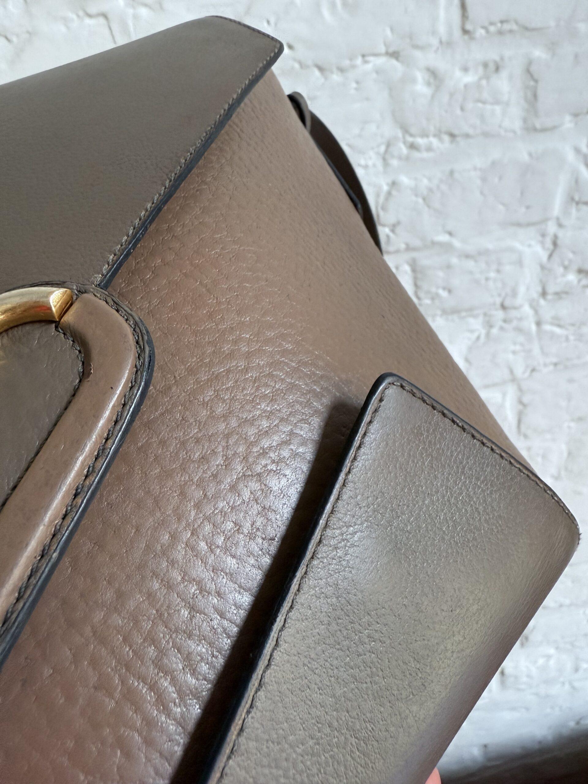 De diagonale streep vanuit het logo verraadt de periode van het ontwerp. Het leder is zacht, maar stevig en de hardware en binnenzijde zijn eveneens in topconditie.