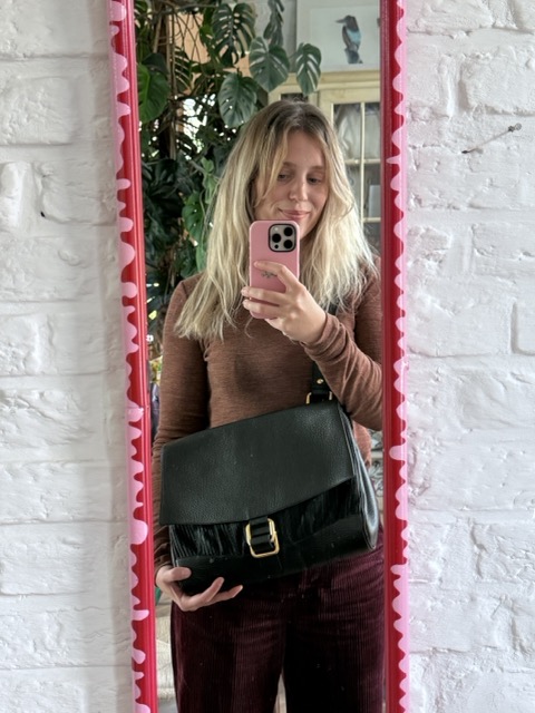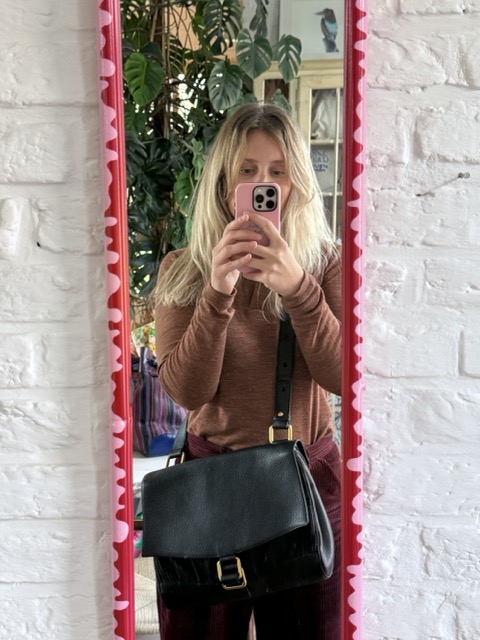 De Borsalino, een ruime godin in Navy. Je draagt hem over de schouder of als crossbody. Het was mijn allereerste Delvaux! Instant crush.