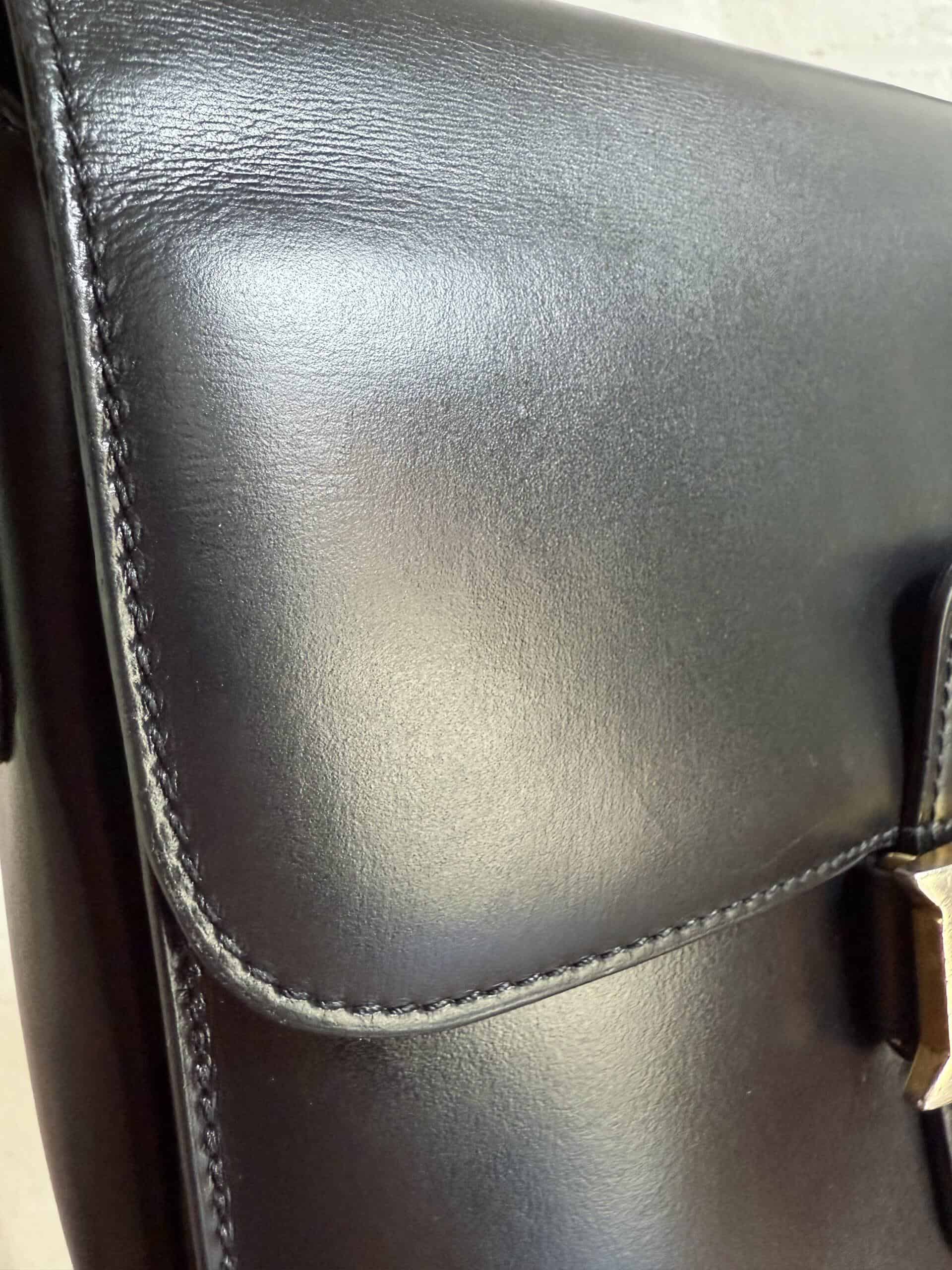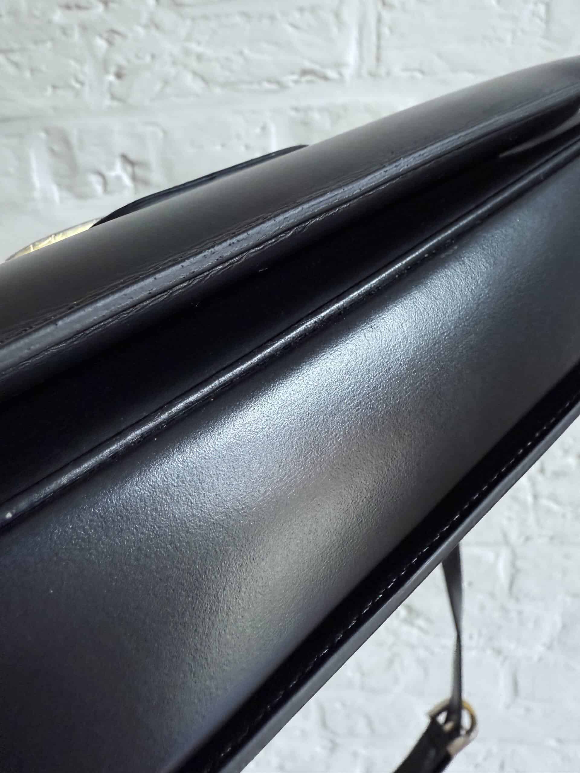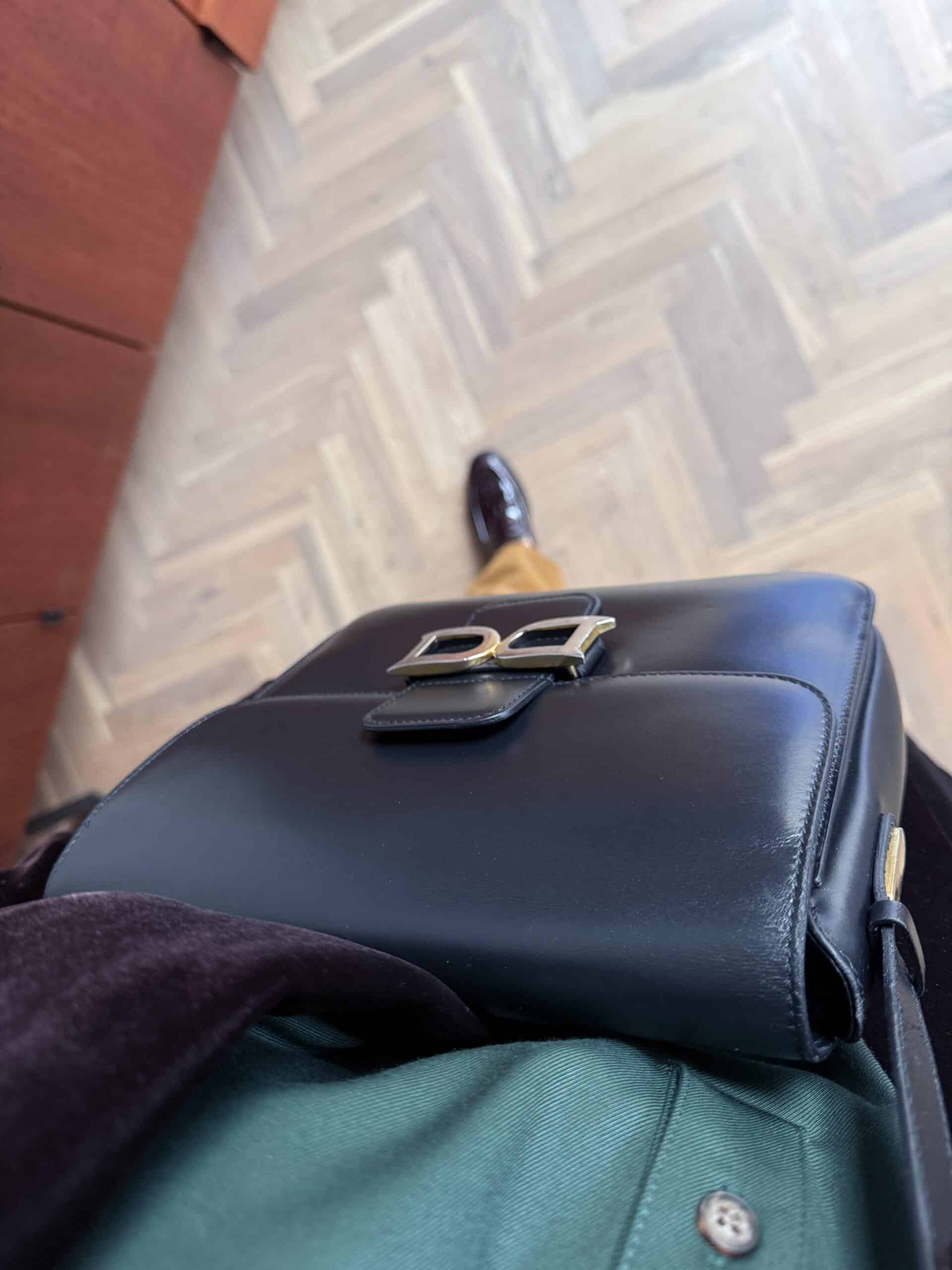 Deze uitvoering van de Bourgogne is buitengewoon knap. In zwarte Box calf, met de iconische vintage gesp en met de typische dubbele D op de sluiting, in het goud.