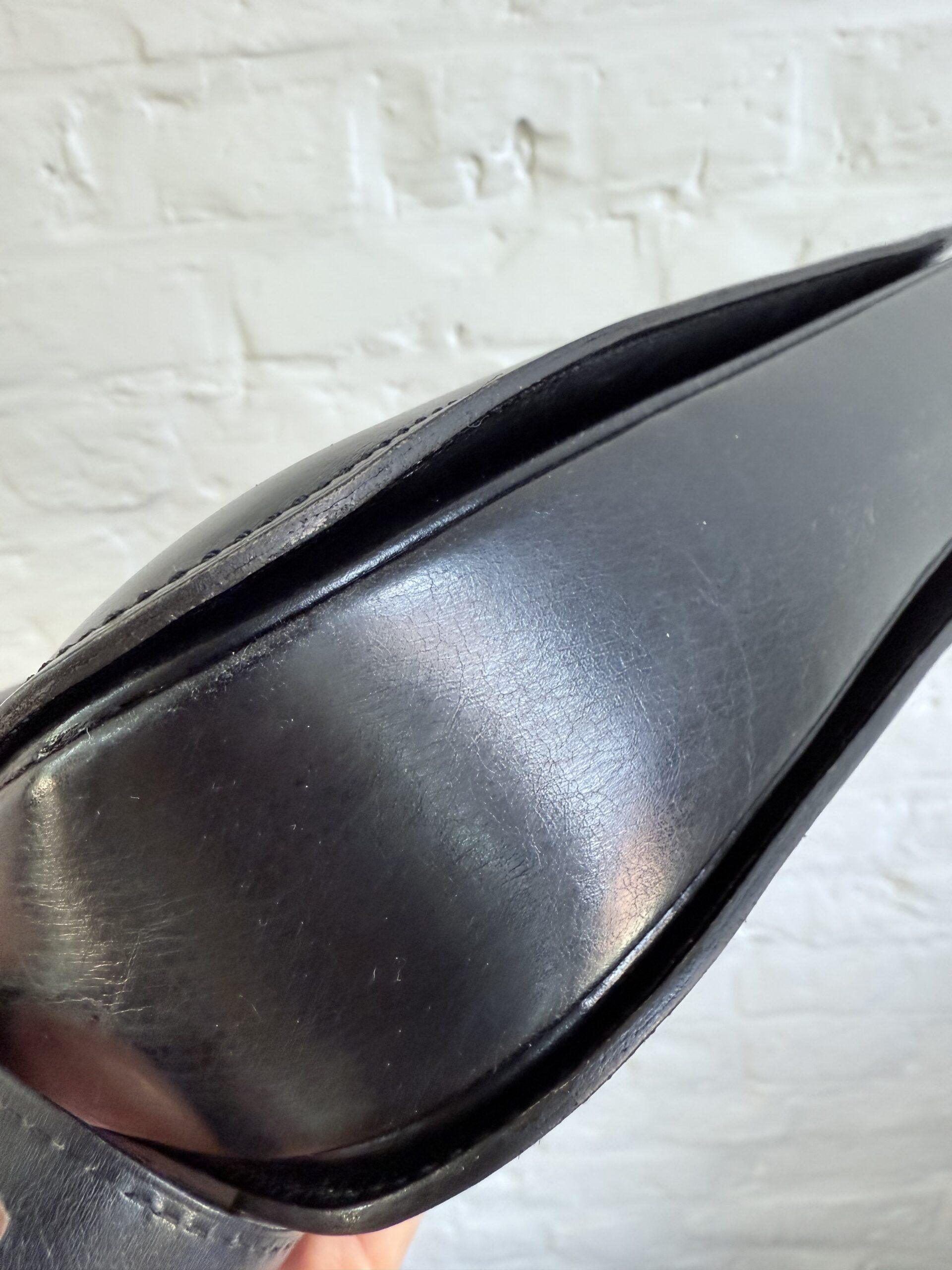 Deze uitvoering van de Bourgogne is buitengewoon knap. In zwarte box calf met de iconische vintage gesp en met de typische dubbele D op de sluiting, in het goud.