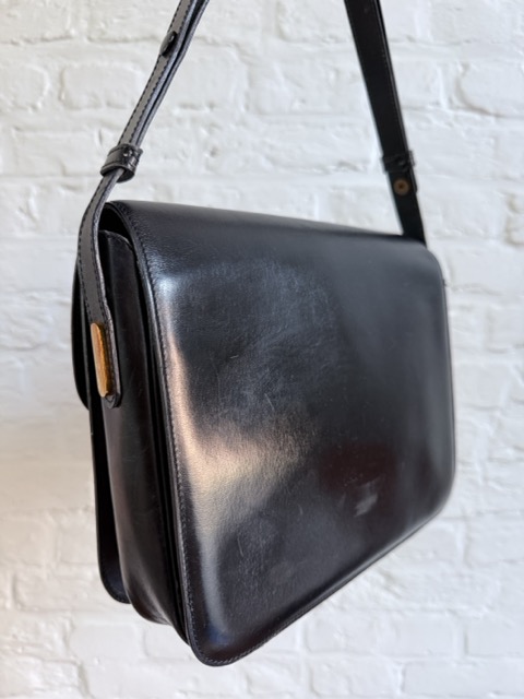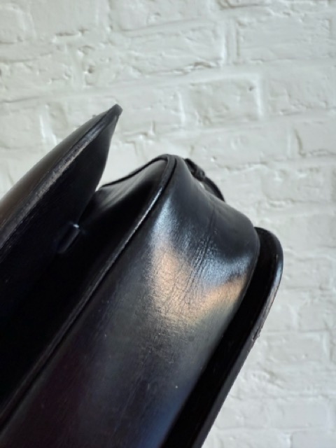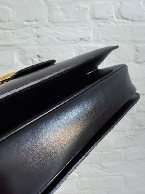 Deze uitvoering van de Bourgogne is buitengewoon knap. In zwarte Box calf, met de iconische vintage gesp en met de typische dubbele D op de sluiting, in het goud.