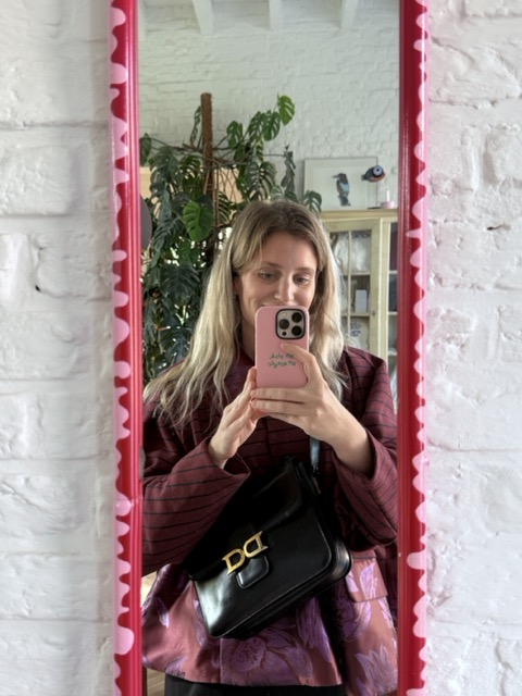 Je draagt hem crossbody, eerder hoog, de riem is namelijk te verstellen dankzij een drukknopjessysteem.