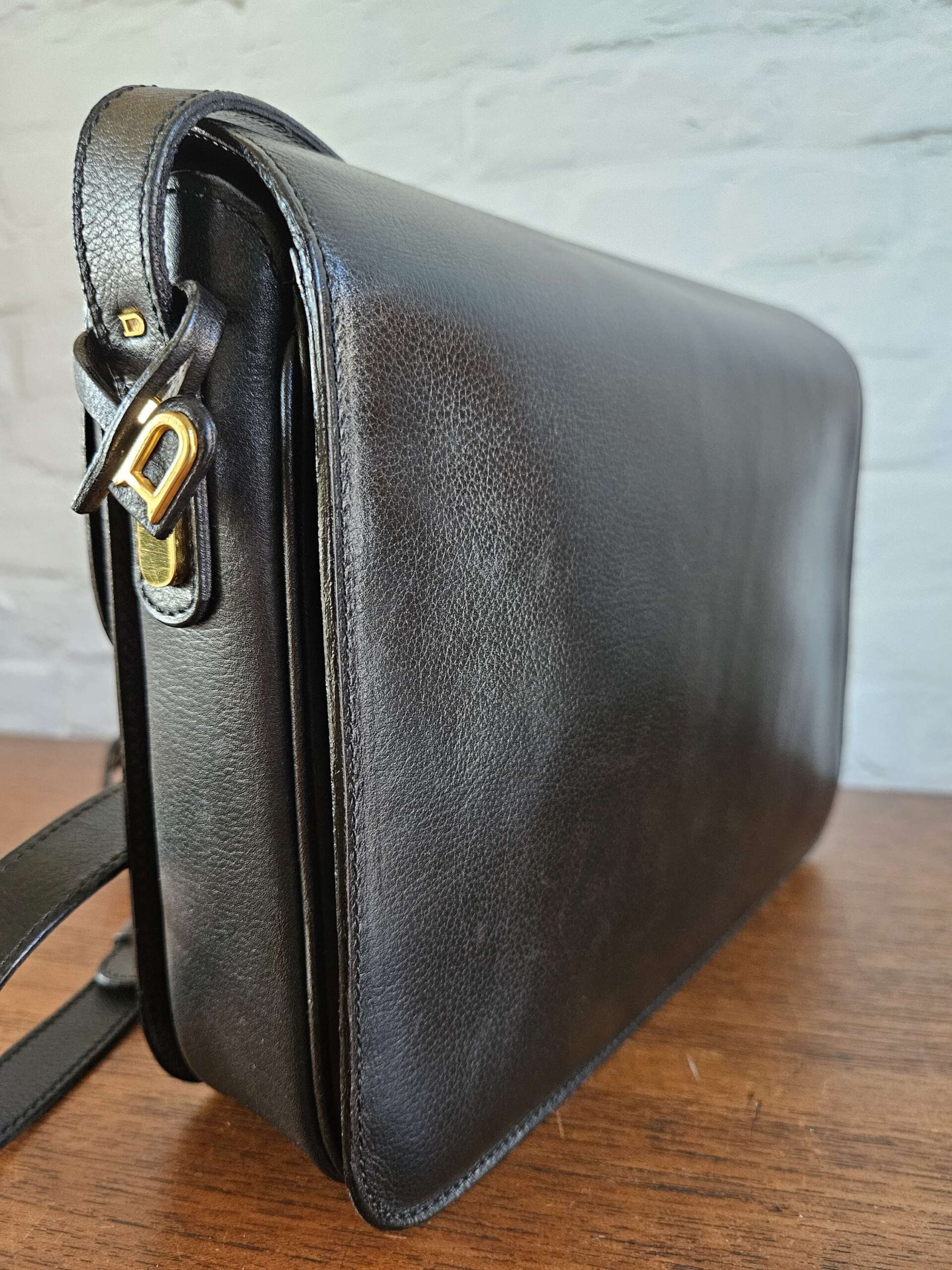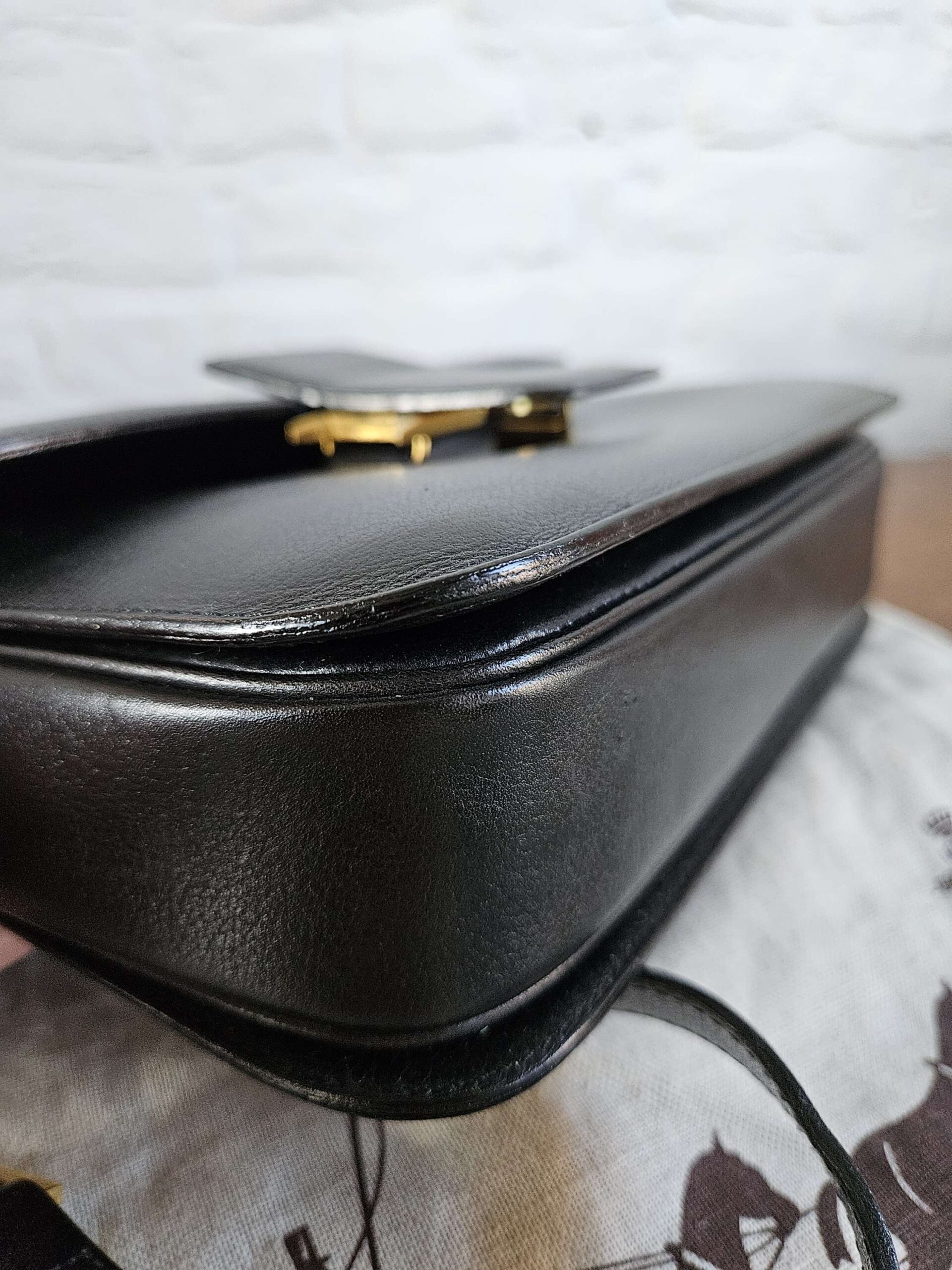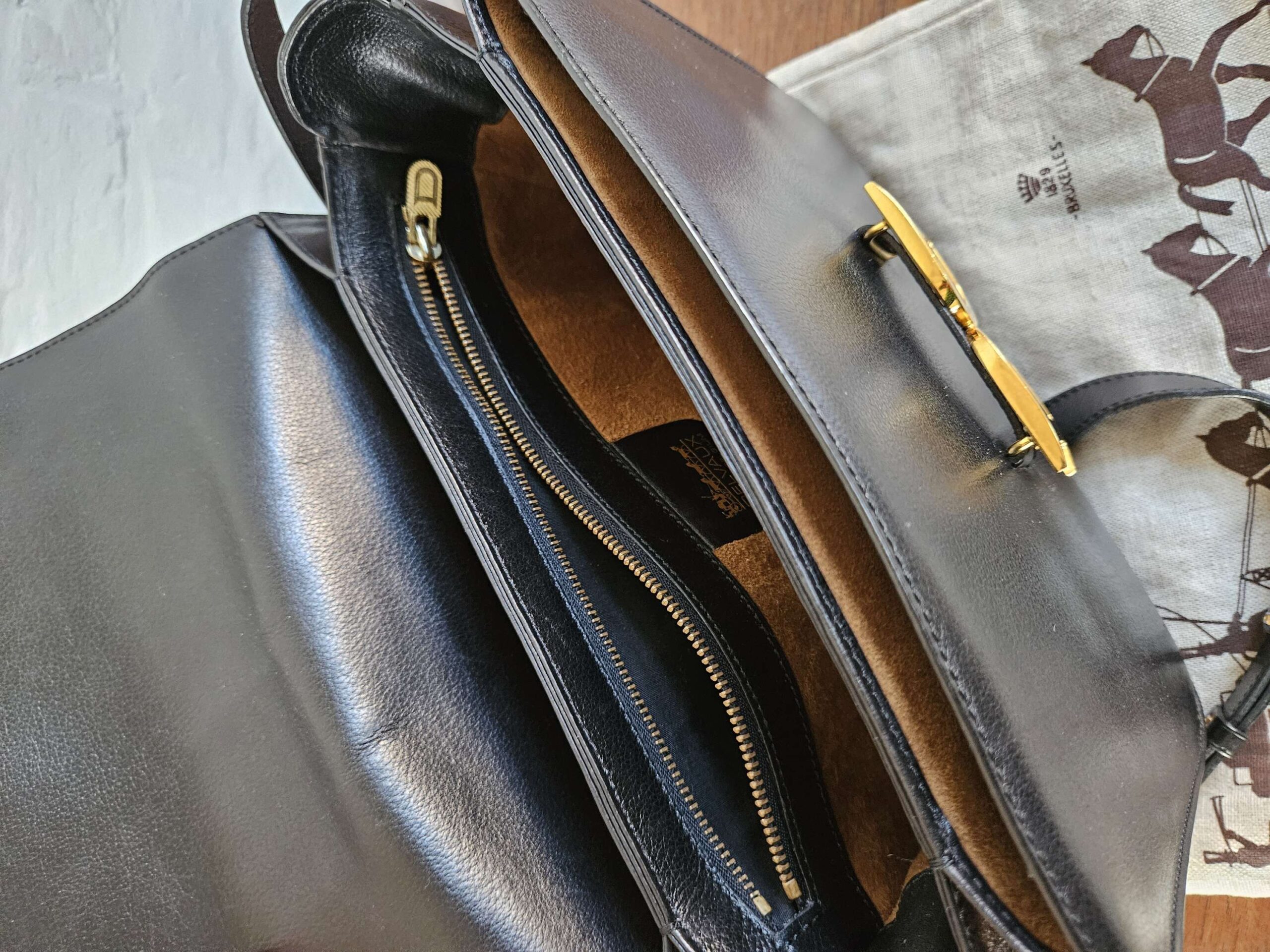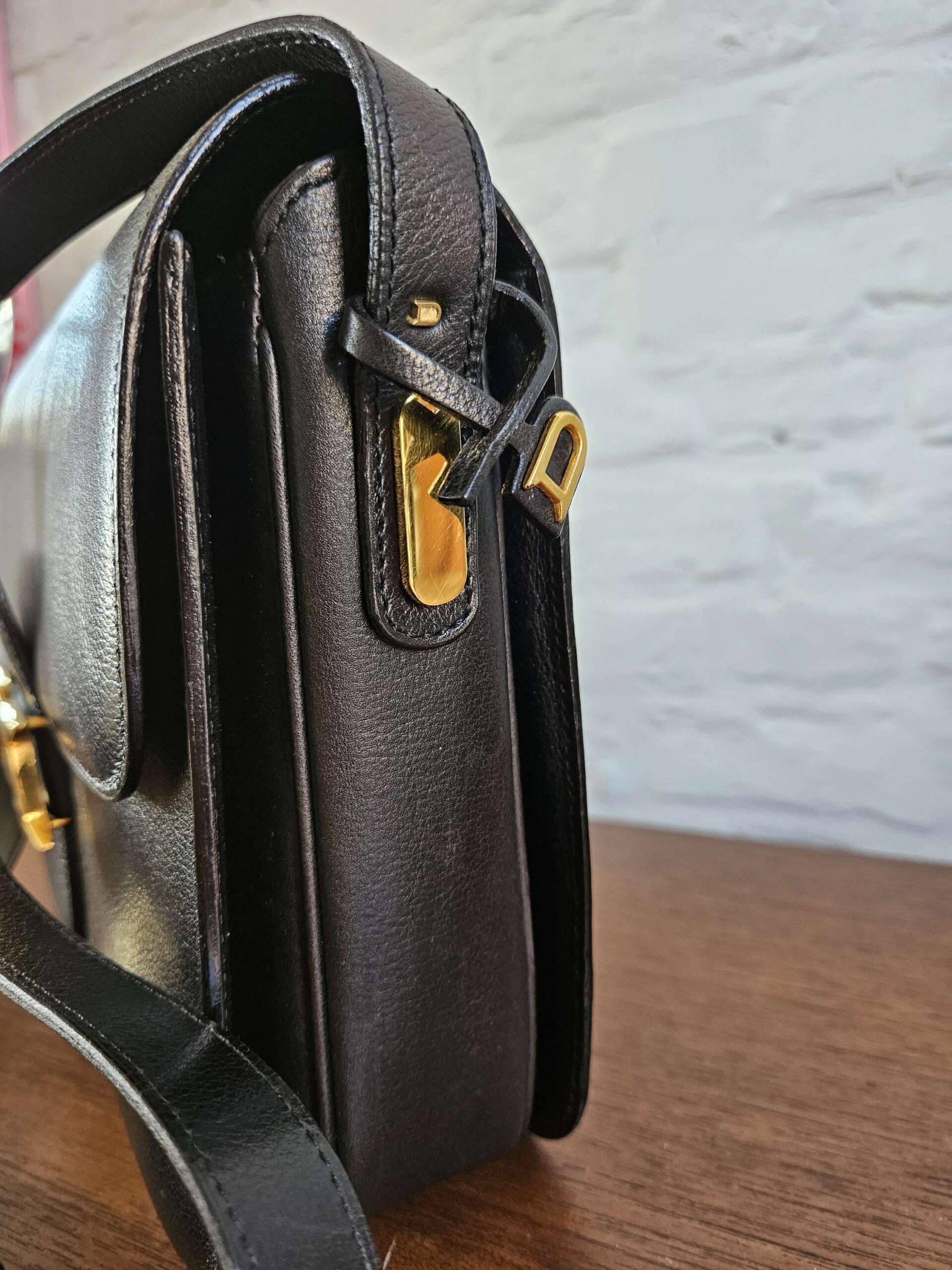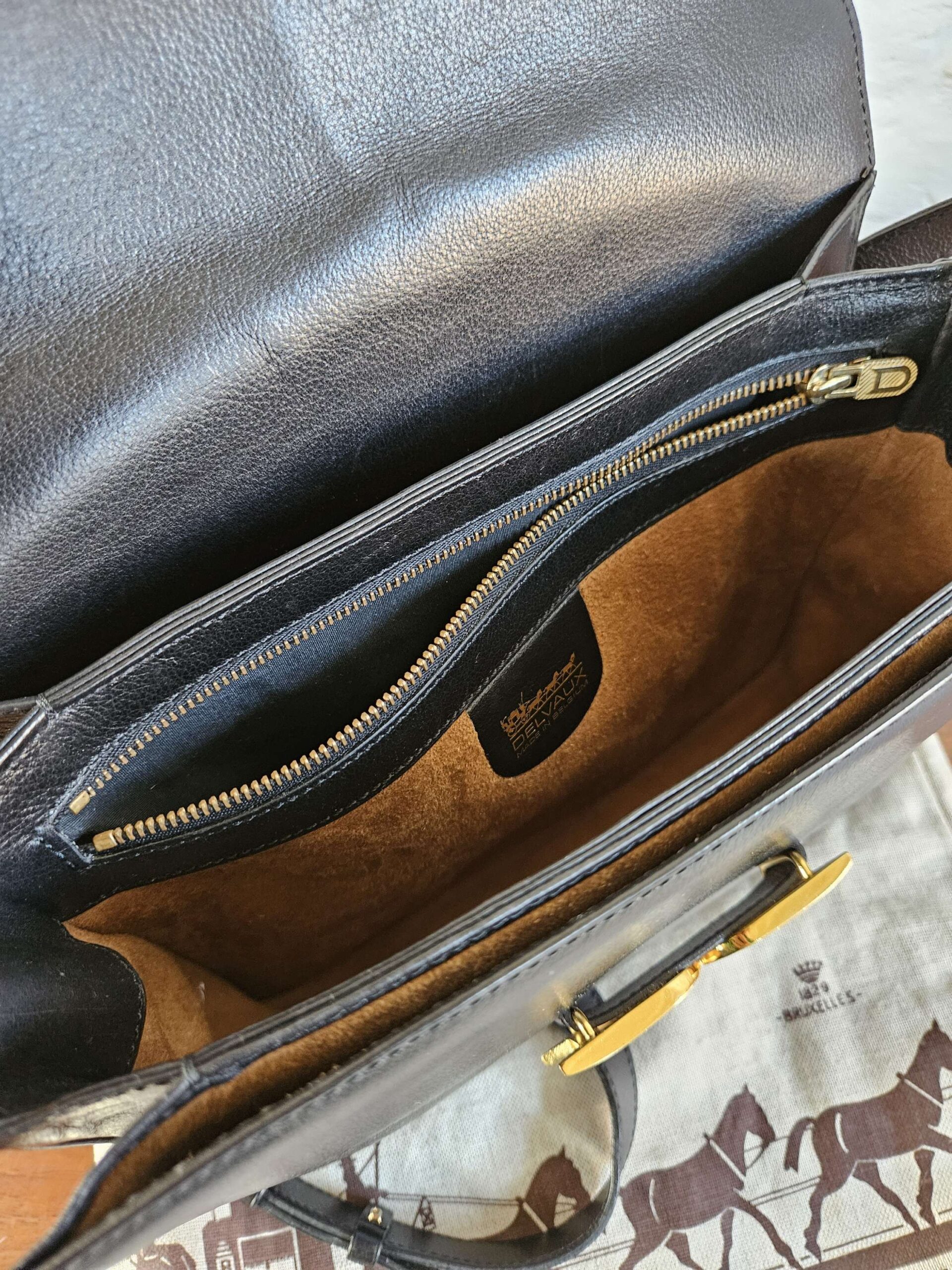Deze uitvoering draag je crossbody of als schoudertas. De riem is verstelbaar met dé vintage Delvaux gesp. Een typisch jaren 90 uitvoering. De uitvoering van de jaren ’70 was bvb slechts verstelbaar in 2 standen.