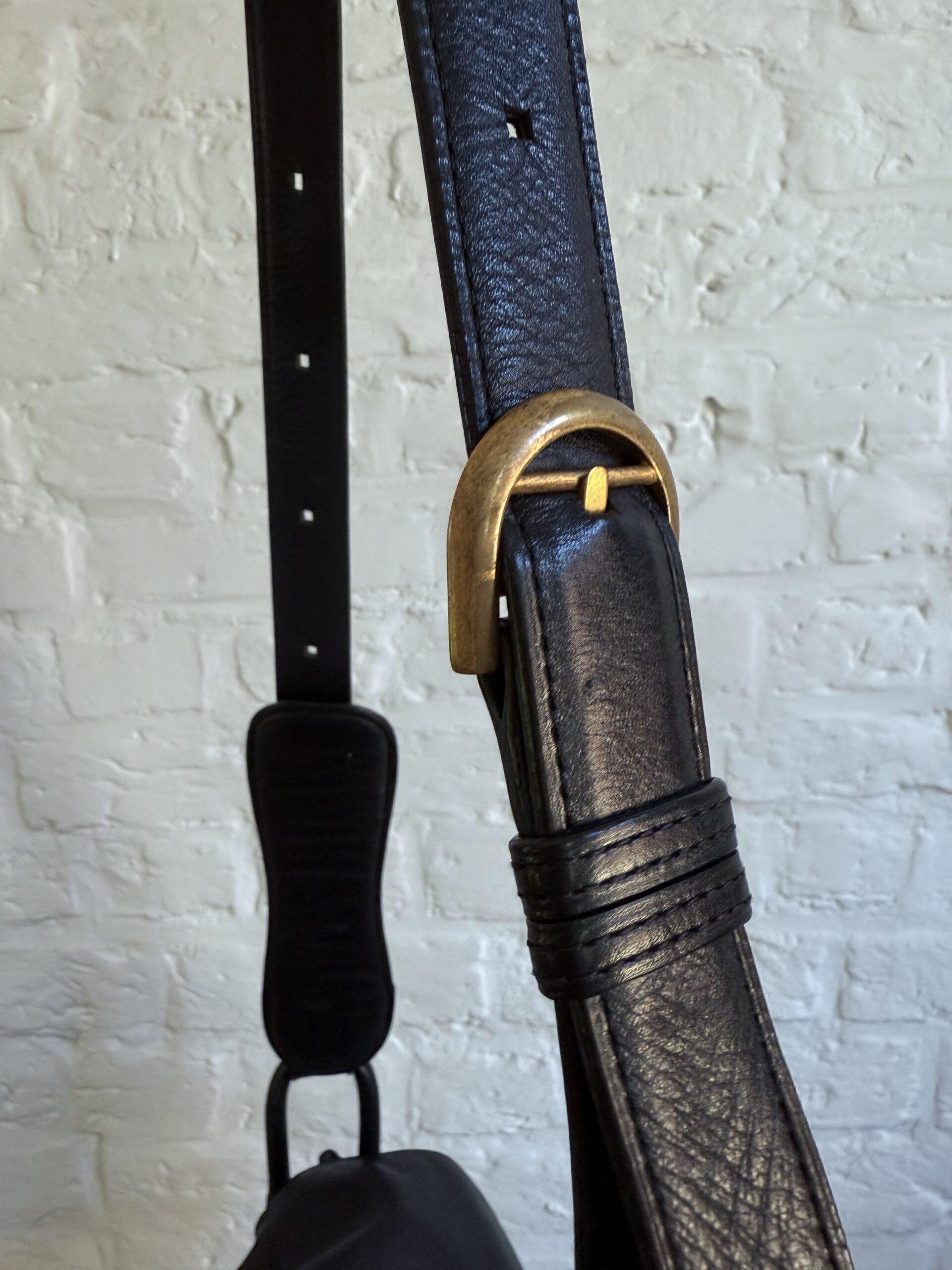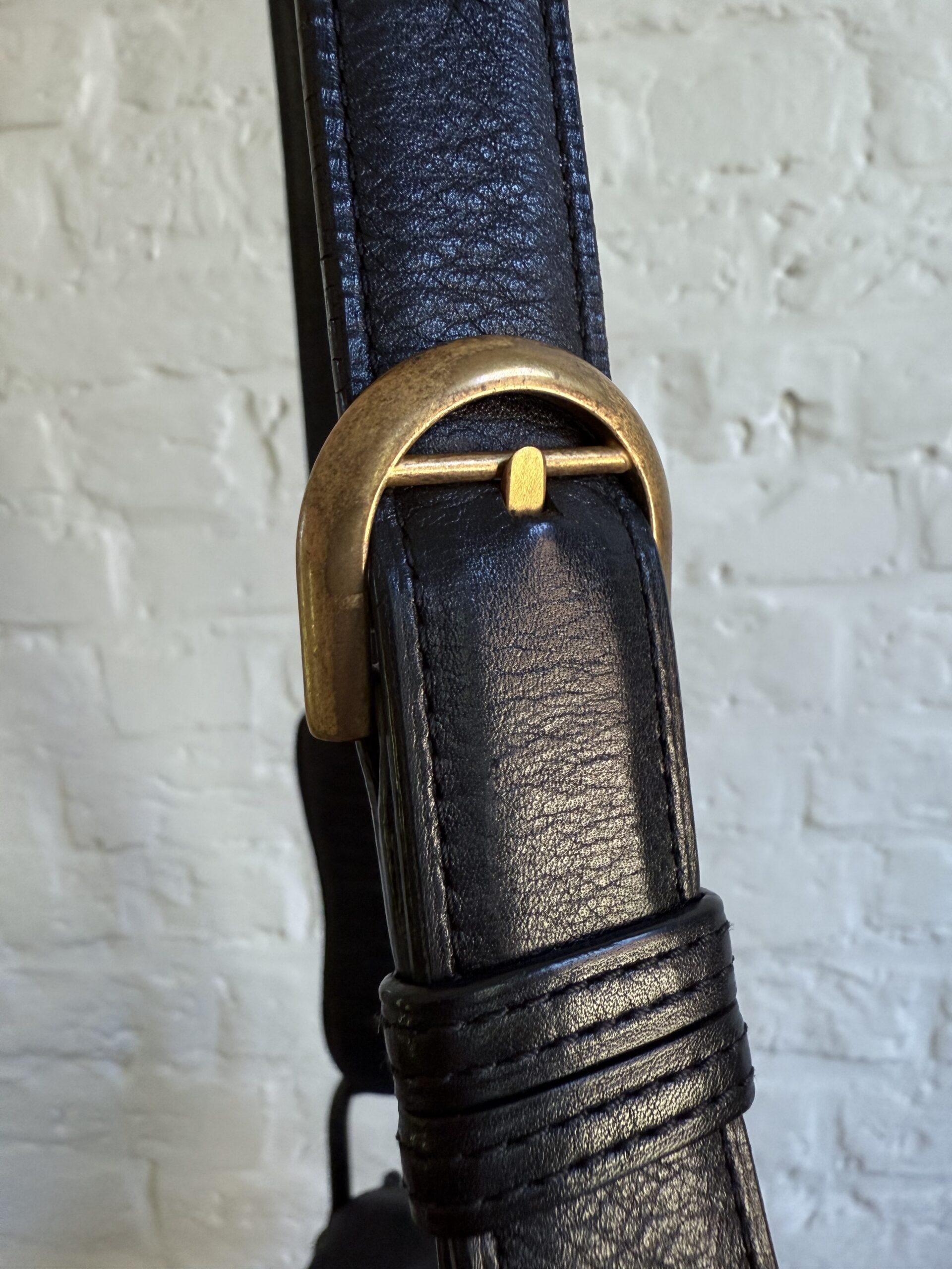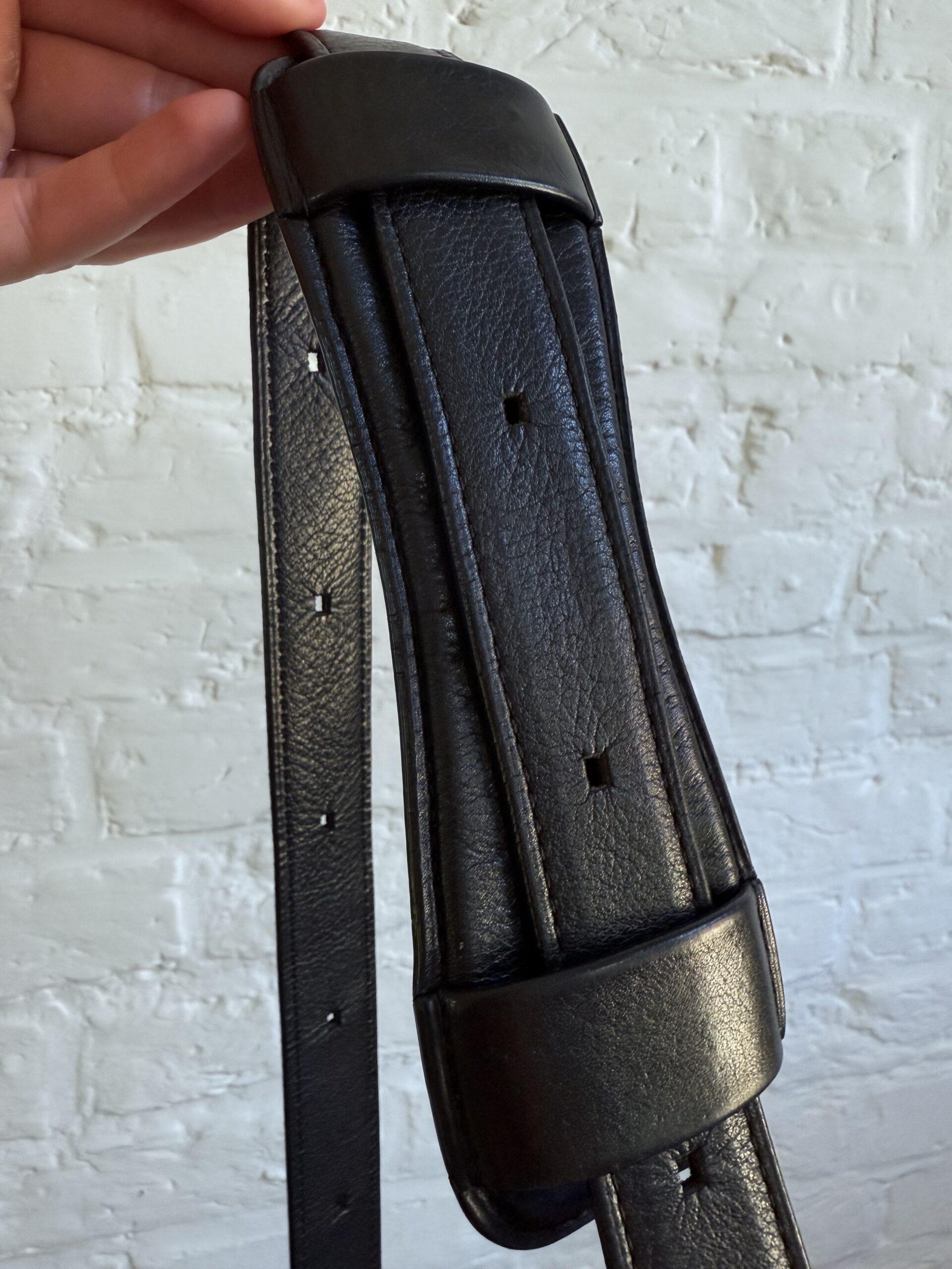 De riem is verstelbaar met fenomenale gesp en is voorzien van een pad voor op de schouder. Hij kan crossbody en er past makkelijk een laptop in.