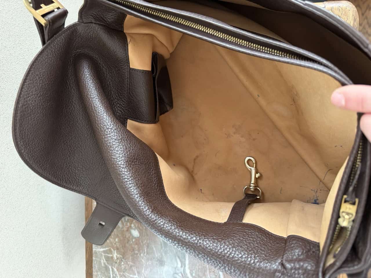Deze besace is in knappe staat met aan de buitenzijde quasi geen gebruikssporen.