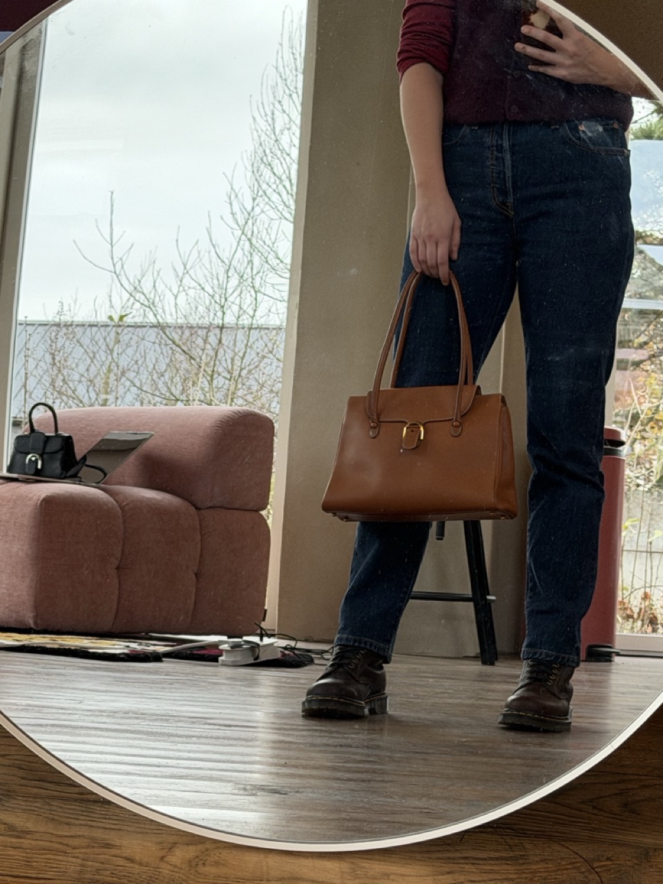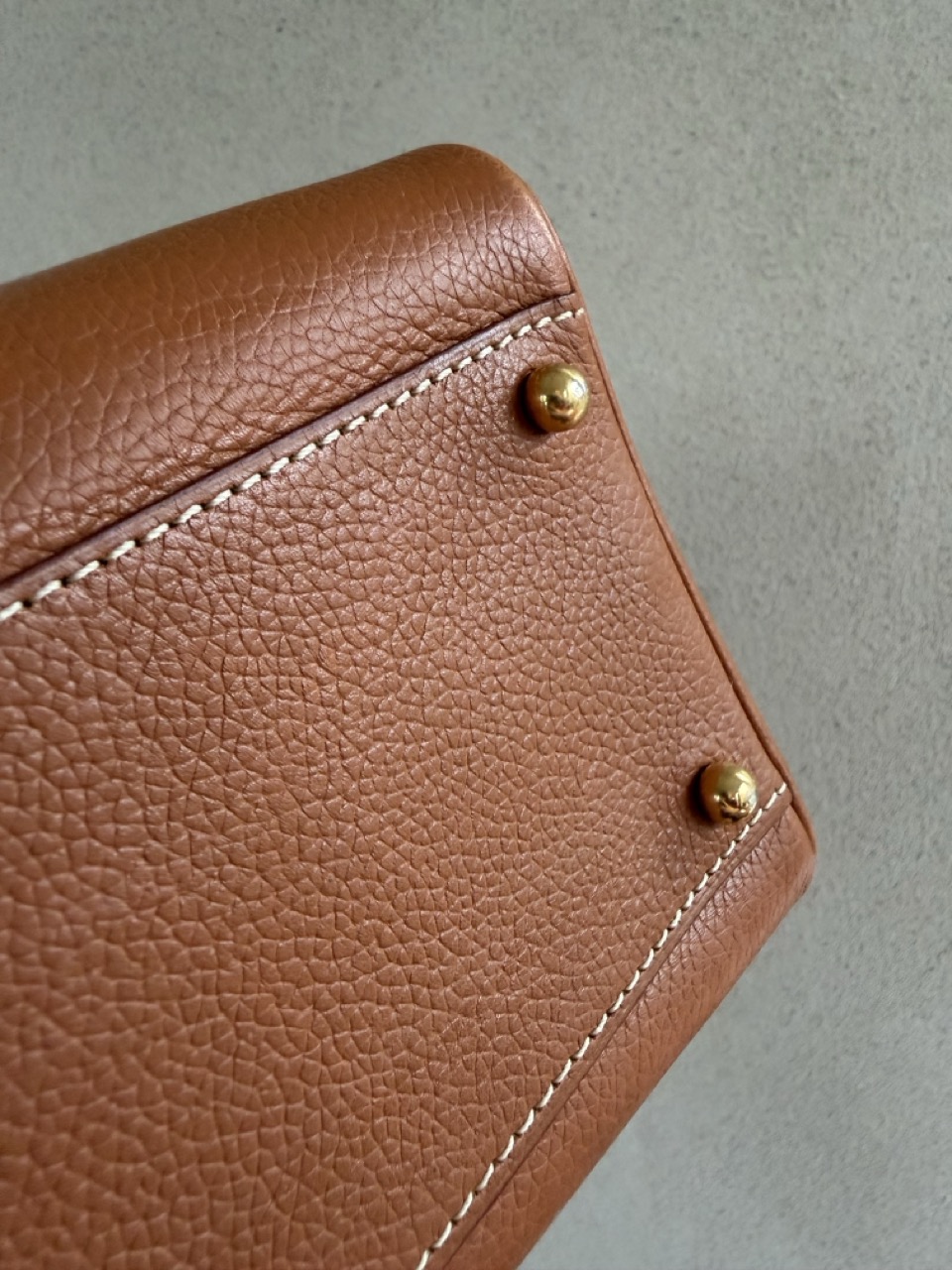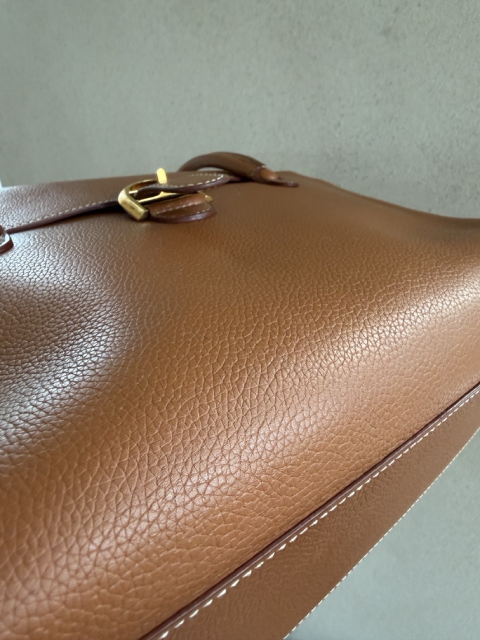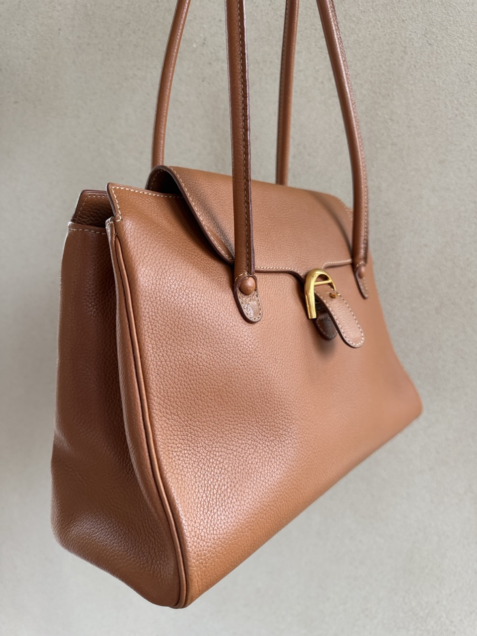 Atelier Mémé besteedt veel tijd en aandacht aan het zorgvuldig selecteren en, indien nodig, retoucheren van originele Delvaux handtassen. De tas is zo correct mogelijk in beeld gebracht met imperfecties die horen bij de vintage staat en manuele ambacht van zowel de Delvauxtas als de ambacht van het restaureren.