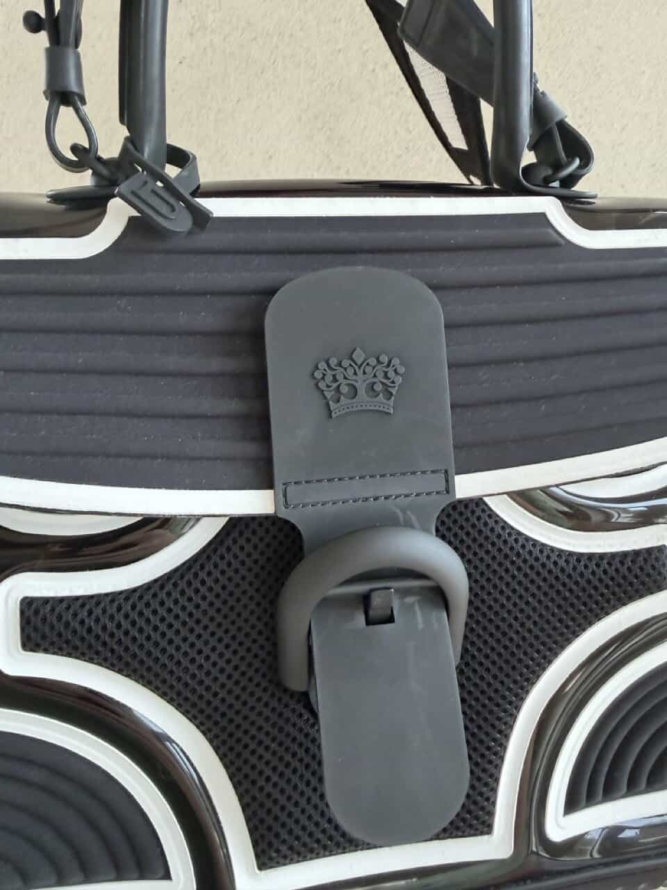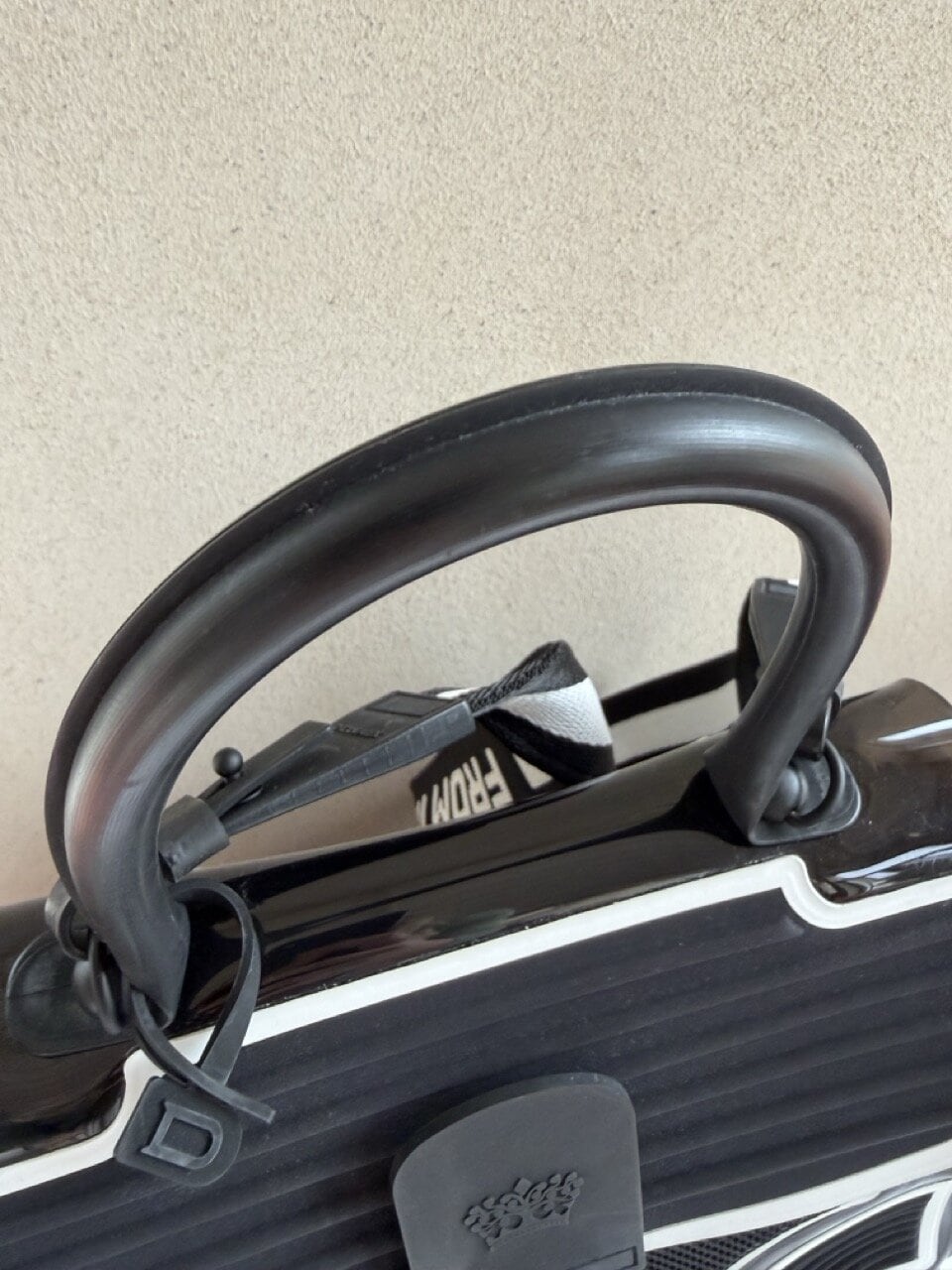 Een bijzonder mooie tas, verderlicht en een trots om aan de hand te dragen of over de schouder. In tegenstelling tot de Chaperon Rouge, ook een vinyl Brillant van Delvaux, heeft de deze wél een riem.