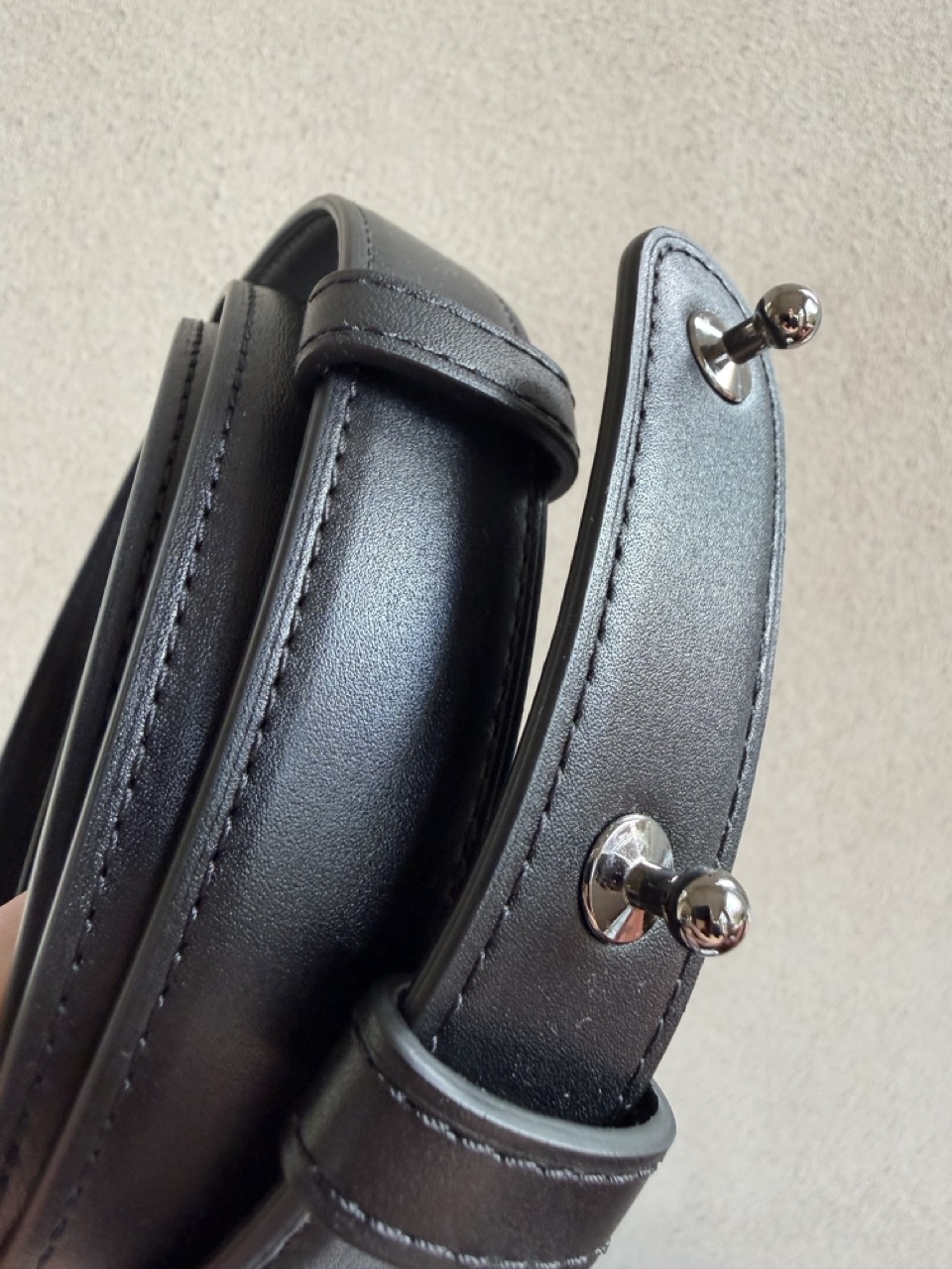 Hij komt met riem die te verstellen en verwijderen is. De riem gaat doorheen een sleuf in de flap. Het spektakel van een Brillant en gemak van een crossbodytas. Al zou ik deze eerder over de schouder dragen.