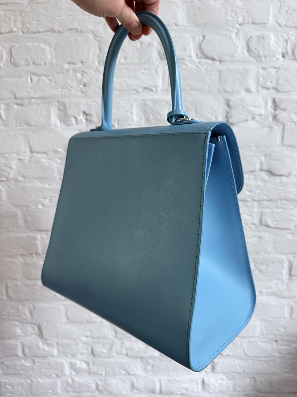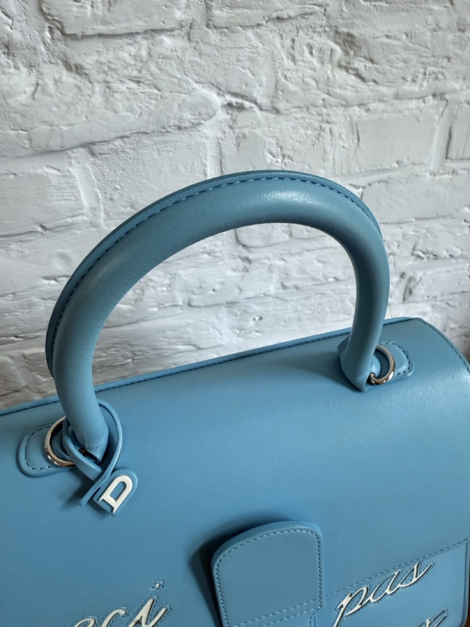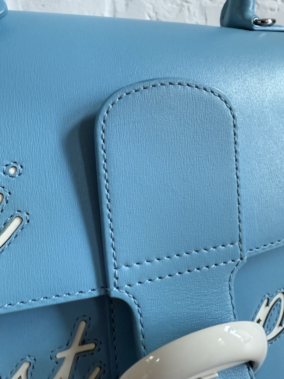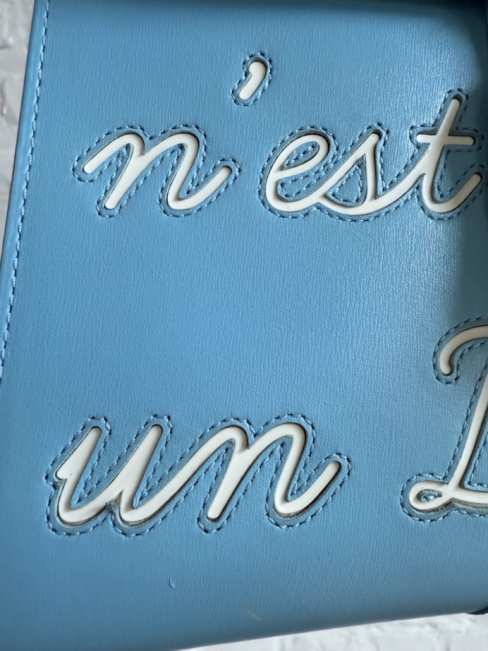 De Brillant is uitgevoerd in box calf Ciel en voorzien van het bekende opschrift ‘Ceci n’est pas un Delvaux’, een ludieke verwijzing naar het gekende citaat.