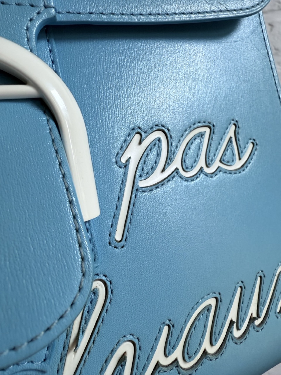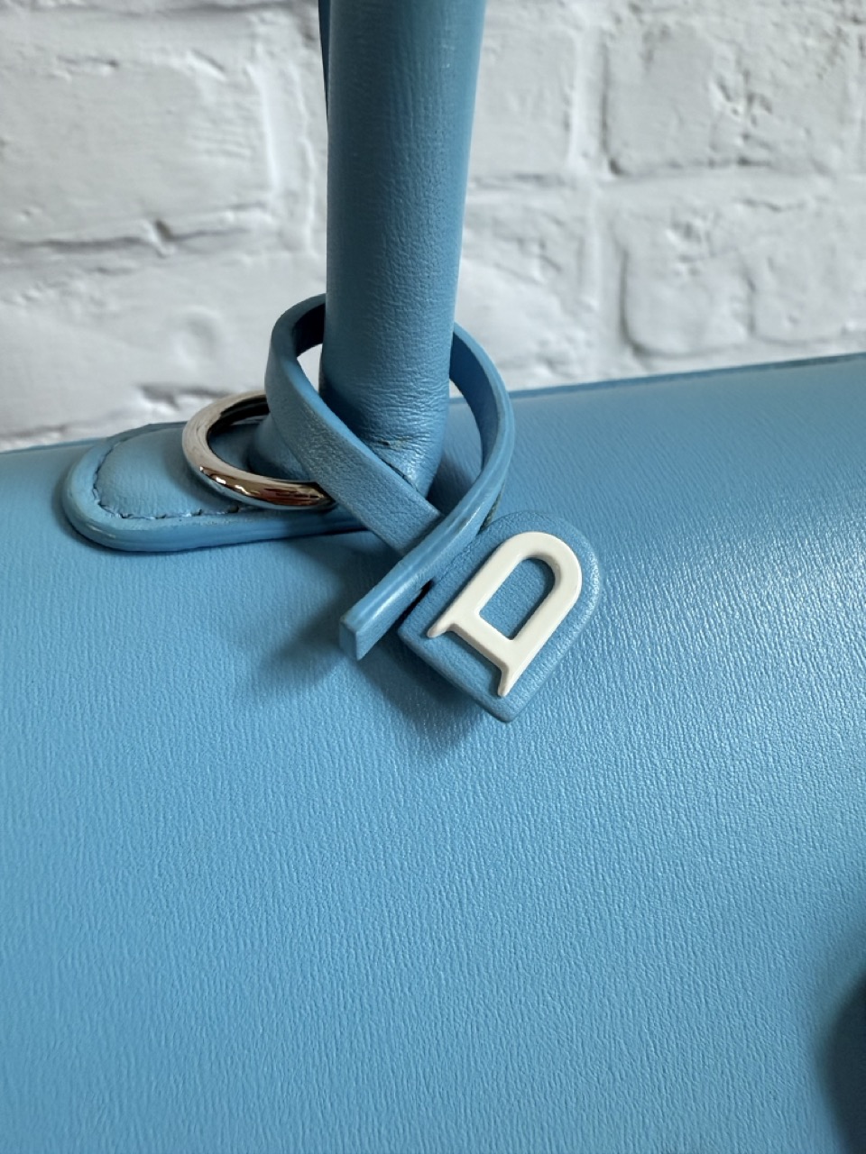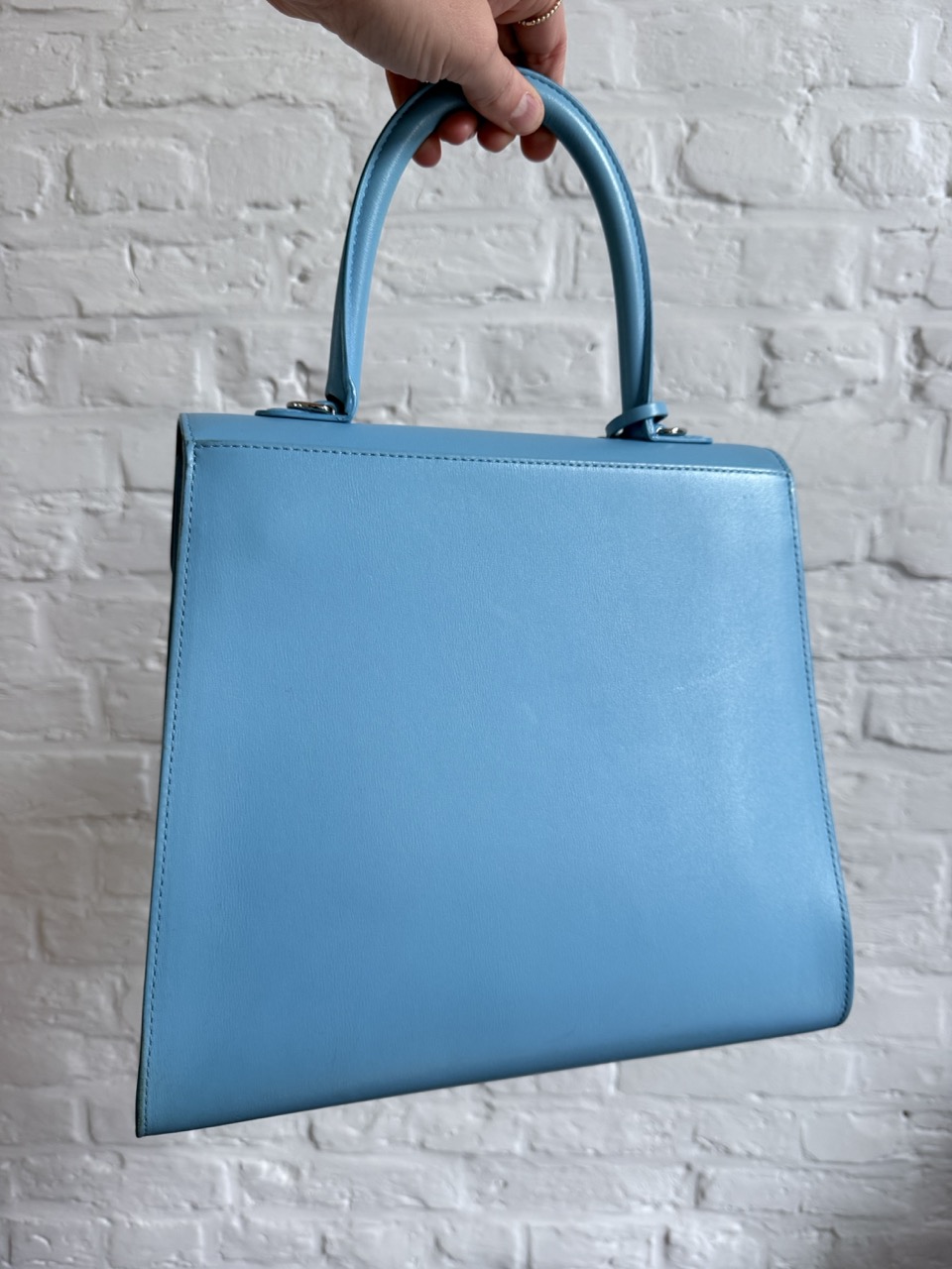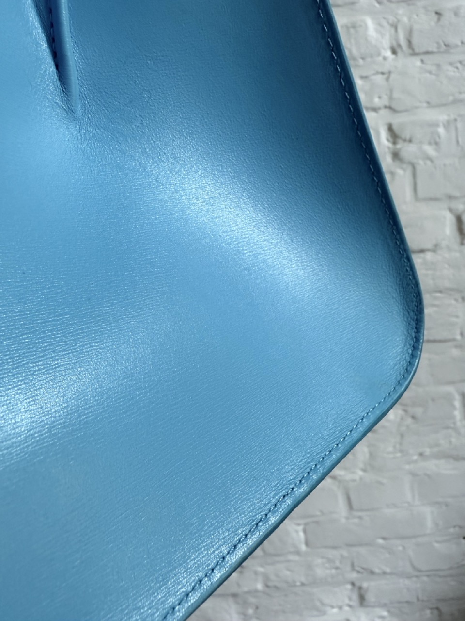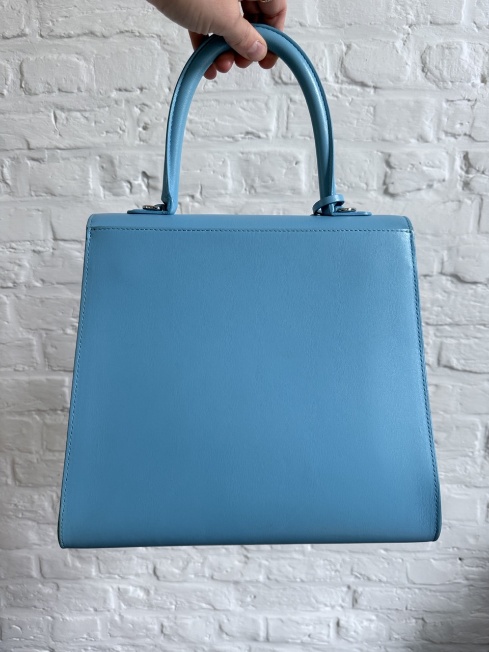 De Brillant is uitgevoerd in box calf Ciel en voorzien van het bekende opschrift ‘Ceci n’est pas un Delvaux’, een ludieke verwijzing naar het gekende citaat.