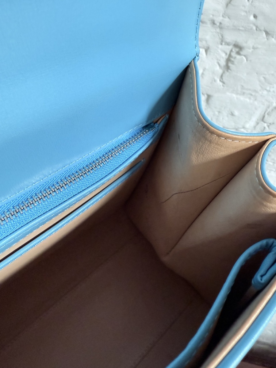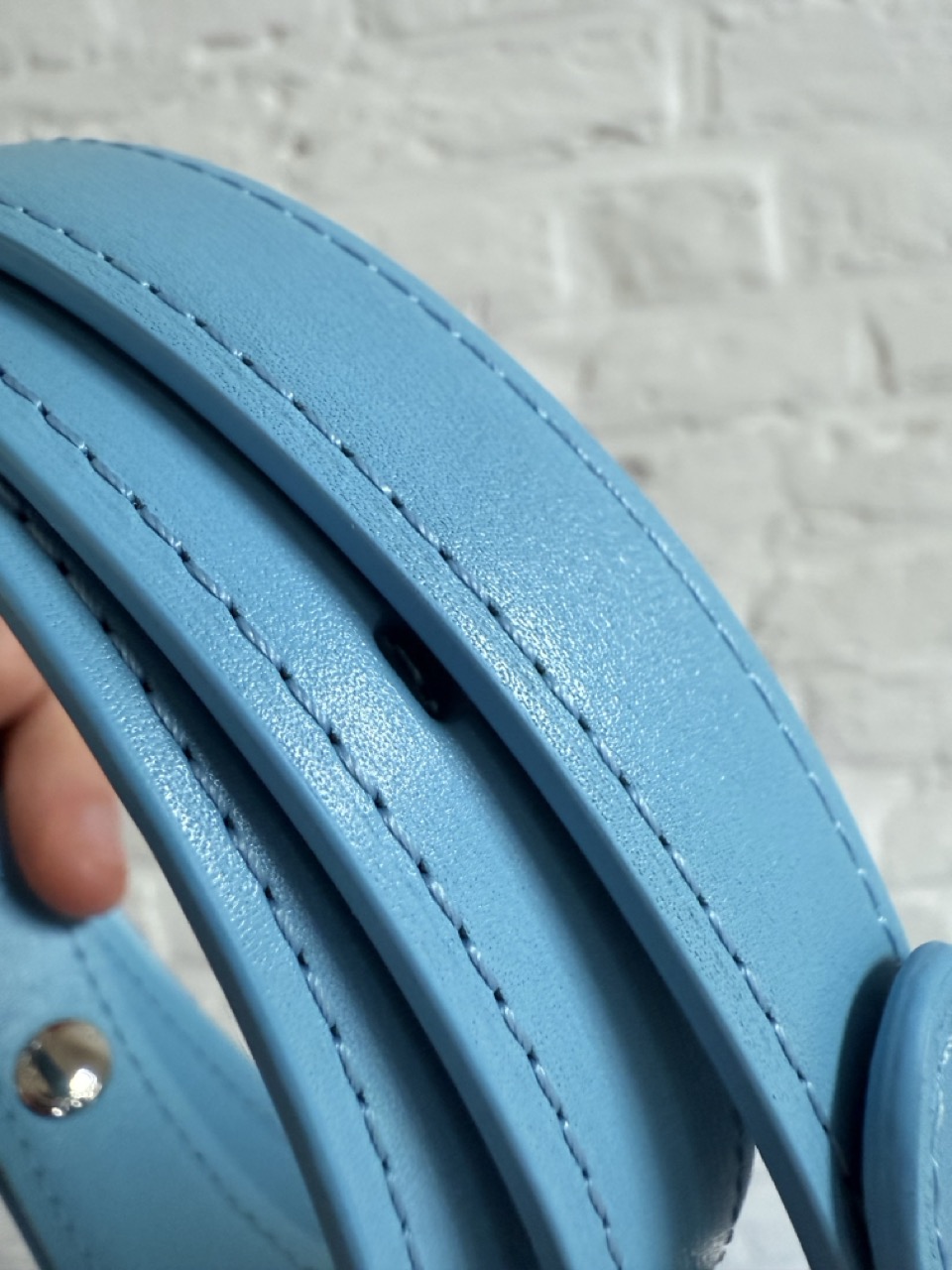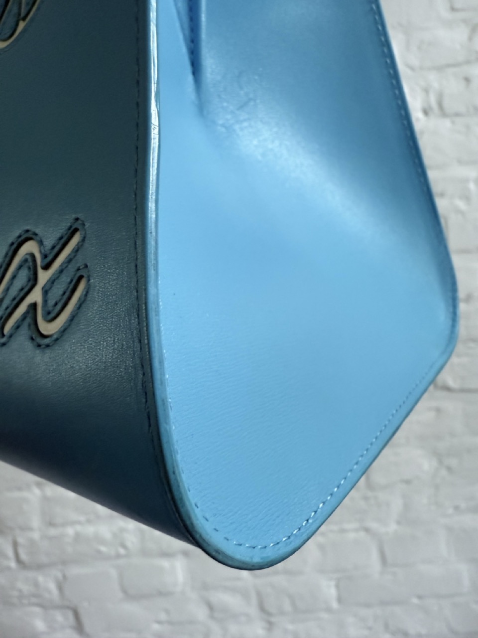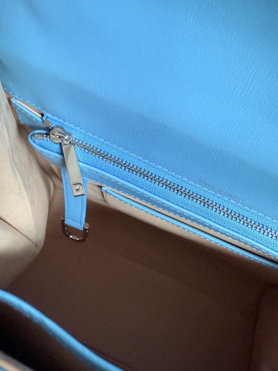 De Brillant is uitgevoerd in box calf Ciel en voorzien van het bekende opschrift ‘Ceci n’est pas un Delvaux’, een ludieke verwijzing naar het gekende citaat.