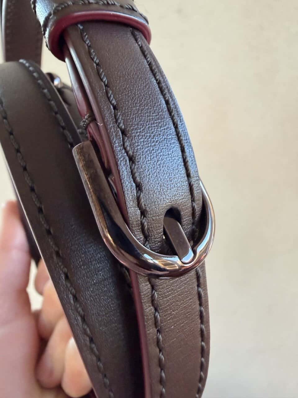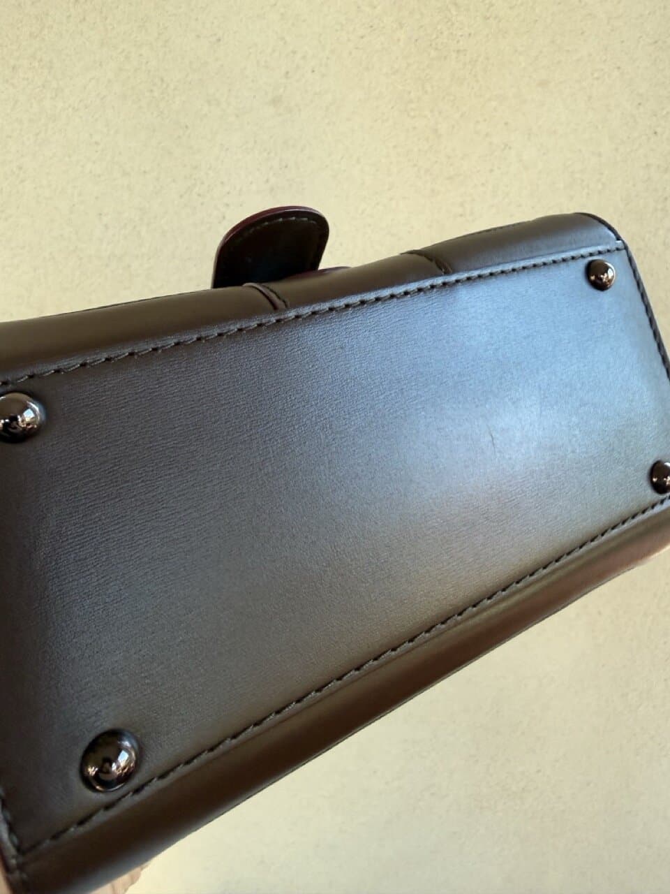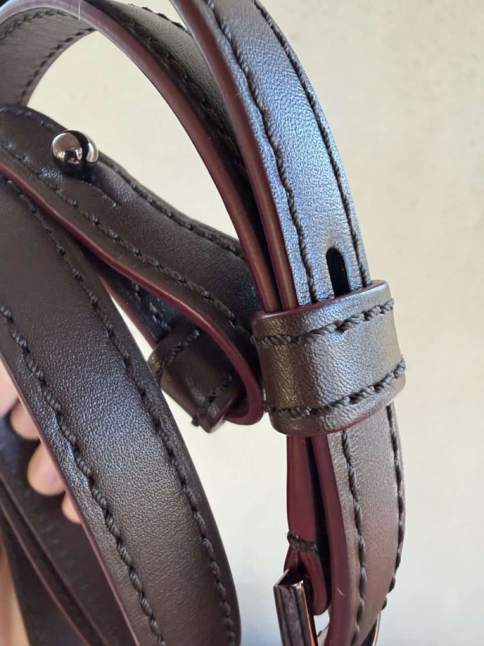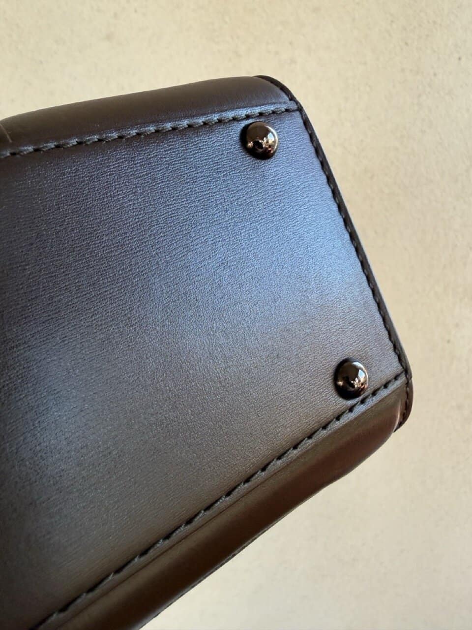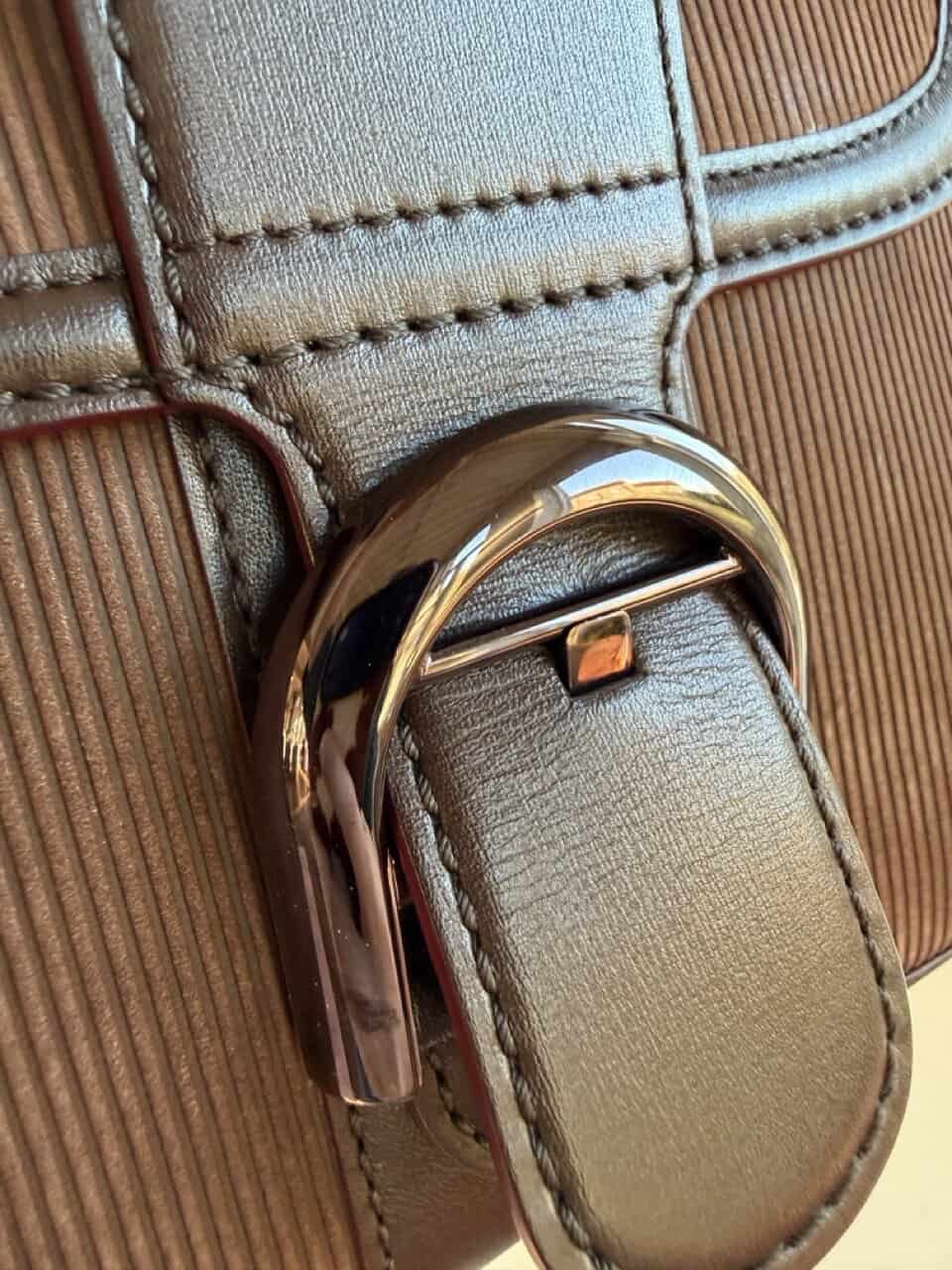 De boekel is uitgevoerd in bronskleurige hardware: wauw!