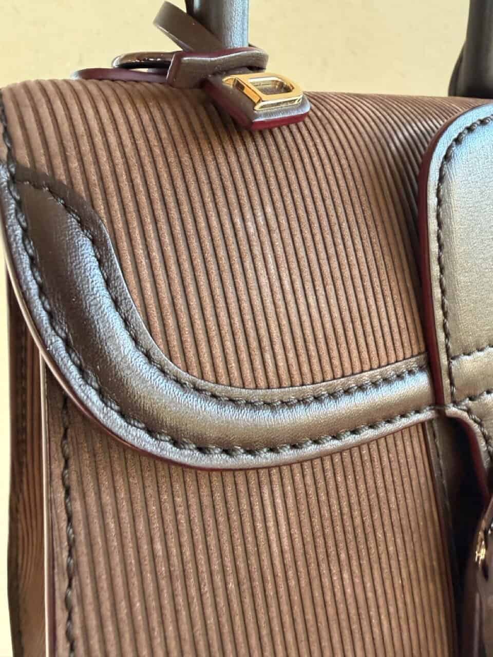 Atelier Mémé besteedt veel tijd en aandacht aan het zorgvuldig selecteren en, indien nodig, retoucheren van originele Delvaux handtassen. De tas is zo correct mogelijk in beeld gebracht met imperfecties die horen bij de vintage staat en manuele ambacht van zowel de Delvauxtas als de ambacht van het restaureren.