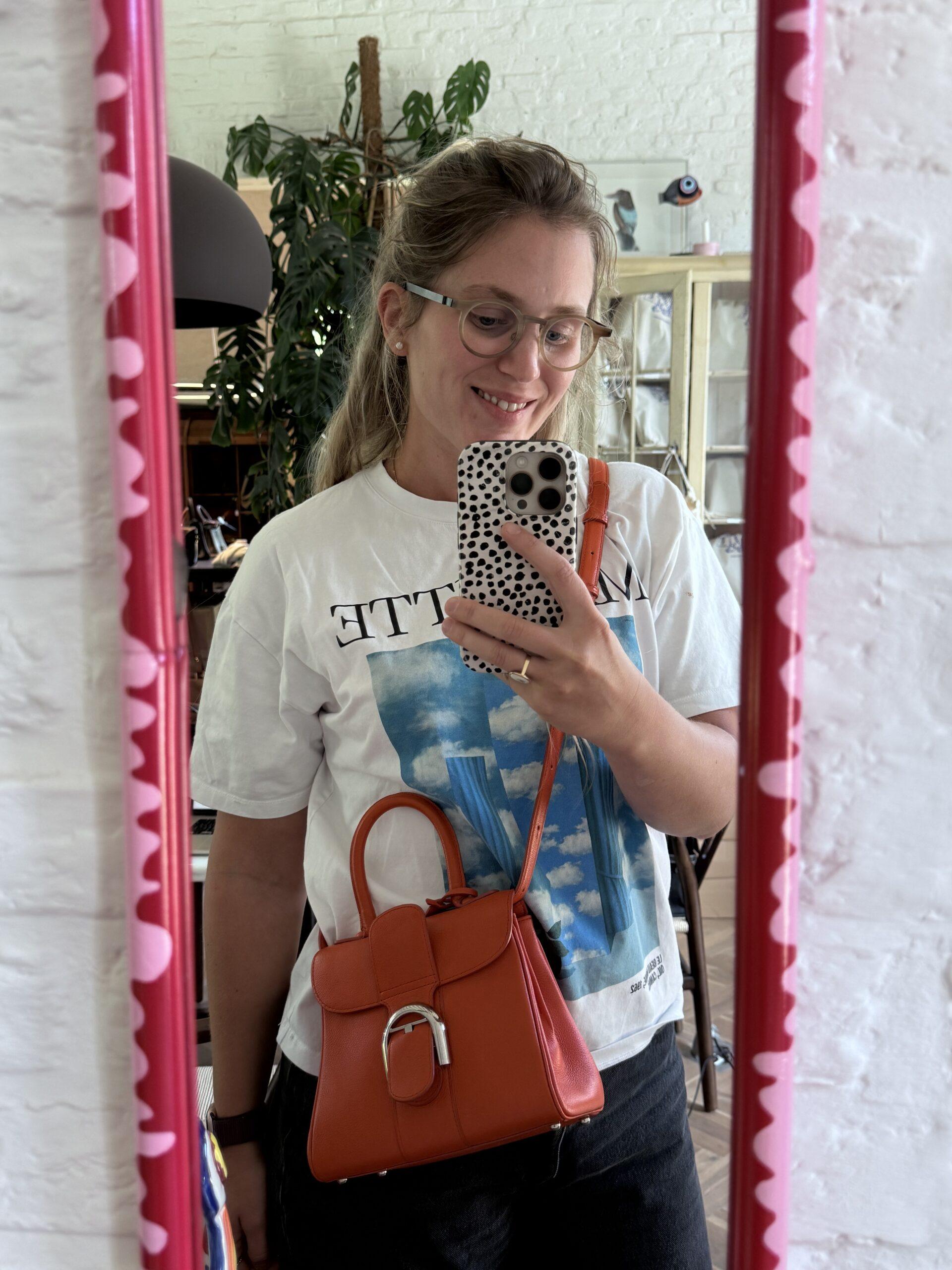 Atelier Mémé besteedt veel tijd en aandacht aan het zorgvuldig selecteren en, indien nodig, retoucheren van originele Delvaux handtassen. De tas is zo correct mogelijk in beeld gebracht met imperfecties die horen bij de vintage staat en manuele ambacht van zowel de Delvauxtas als de ambacht van het restaureren.