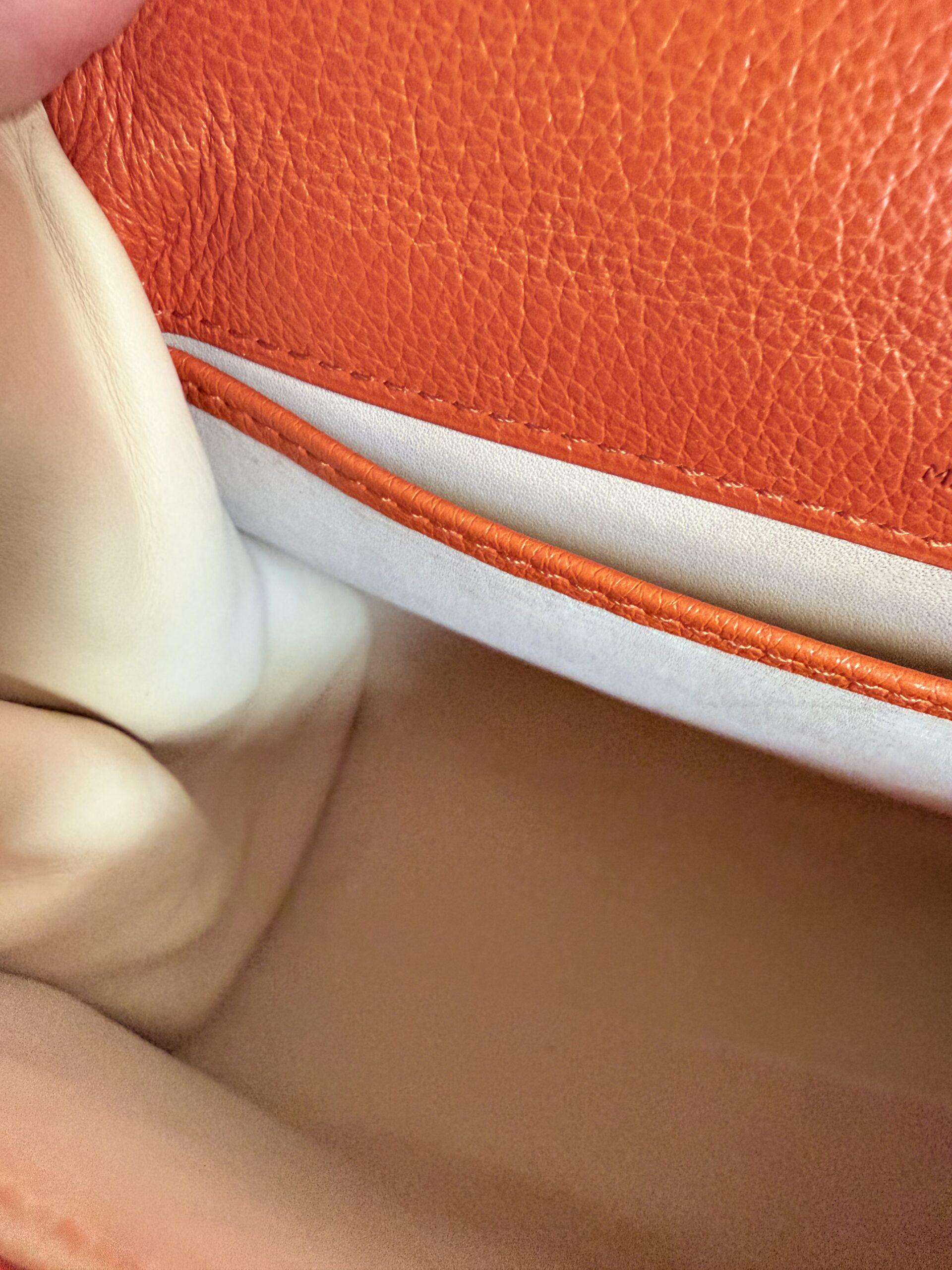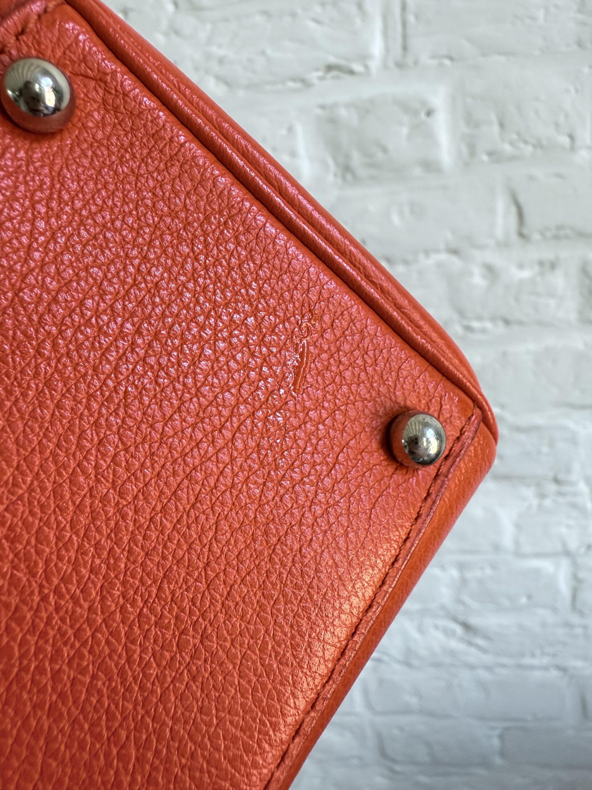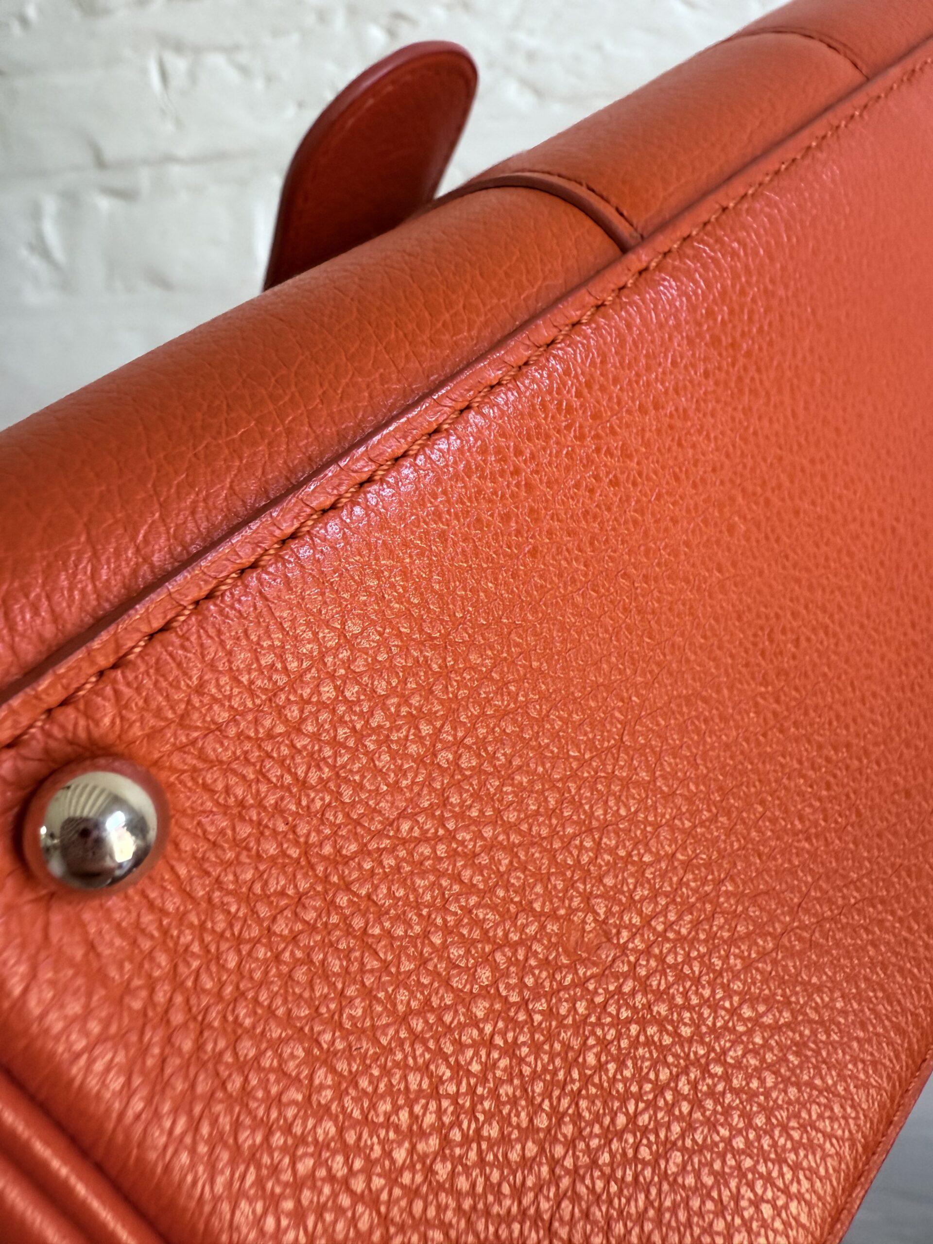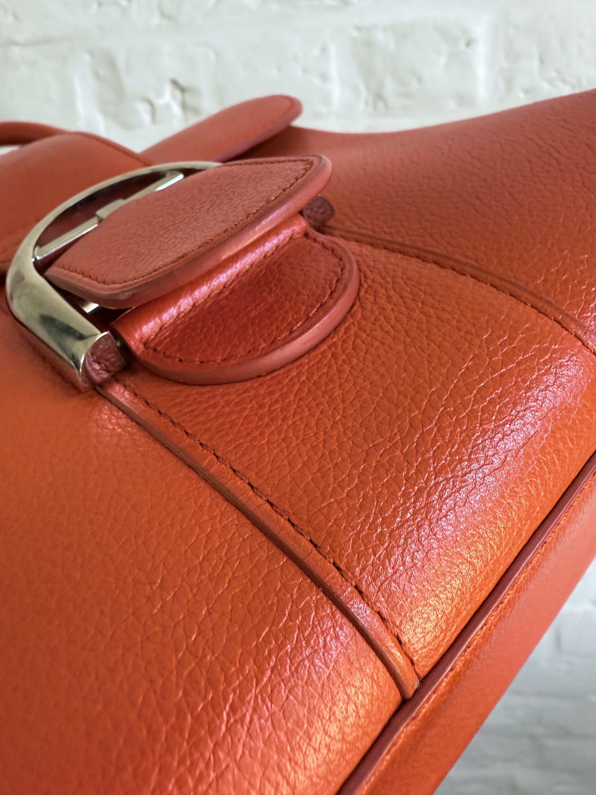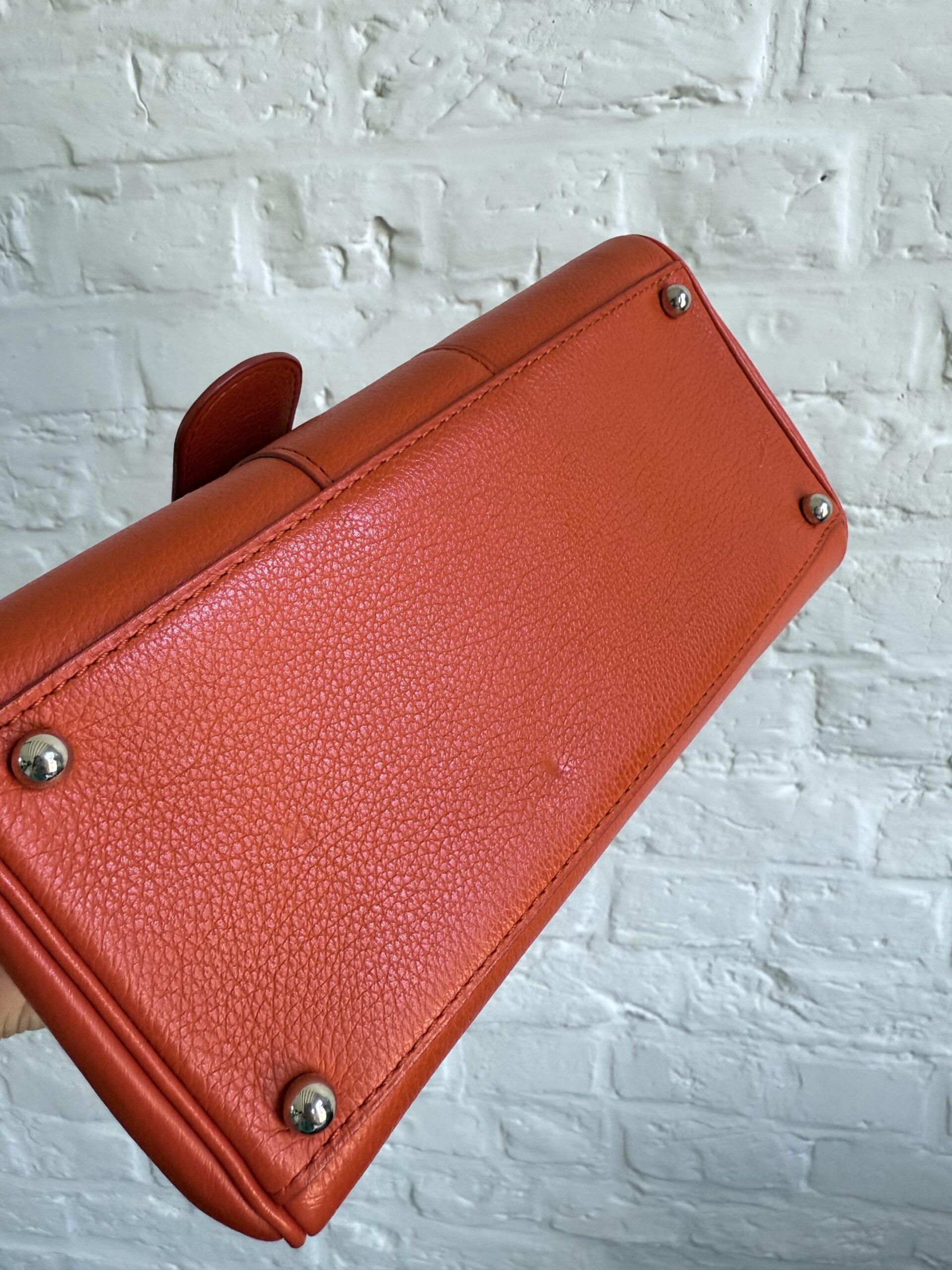 De Brillant Mini in Mandarine jumping calf met zilveren hardware. Een heerlijke tas, in een heerlijke kleur, in een fantastisch formaat!