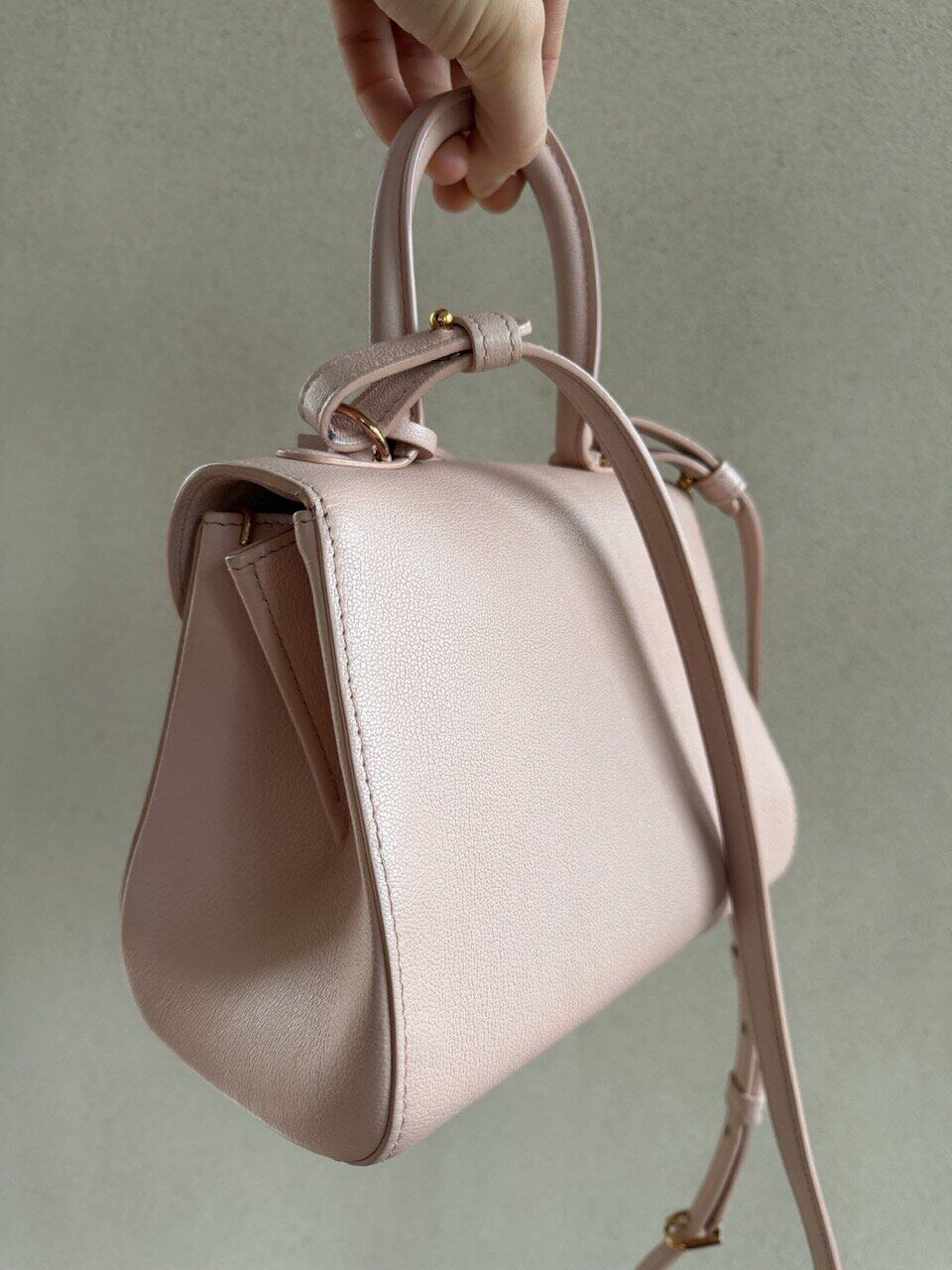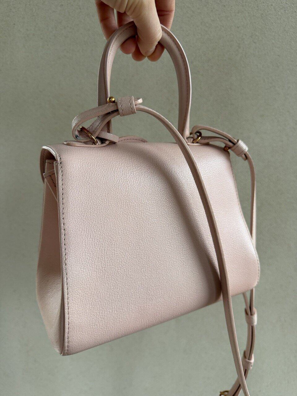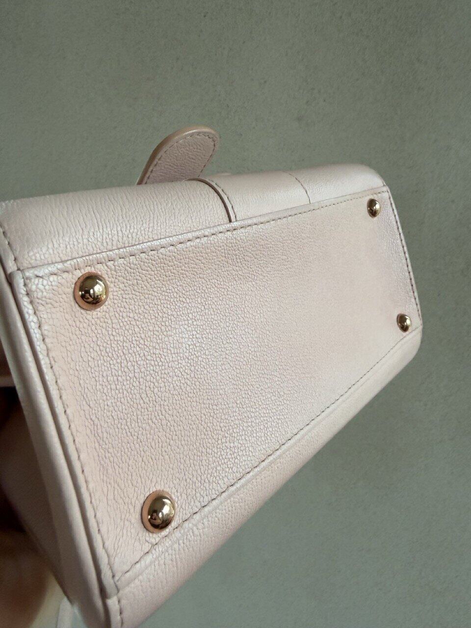 De Brillant Mini in nude rodeo calf. Je draagt hem aan de hand of over de schouder of als crossbody. Zijn uitvoering is magnifiek. De schitterende roosgouden boekel is als een juweel, zo mooi!
