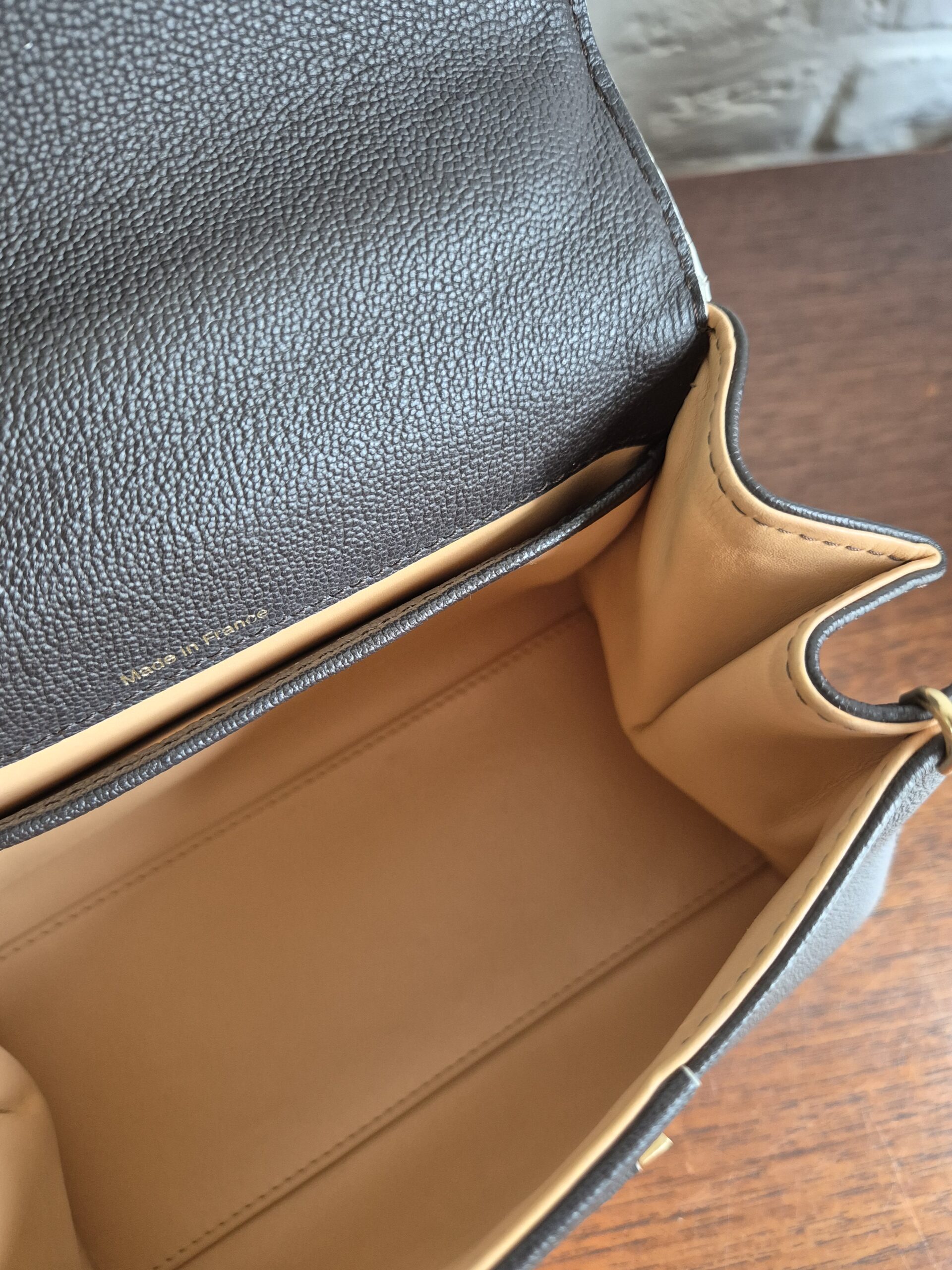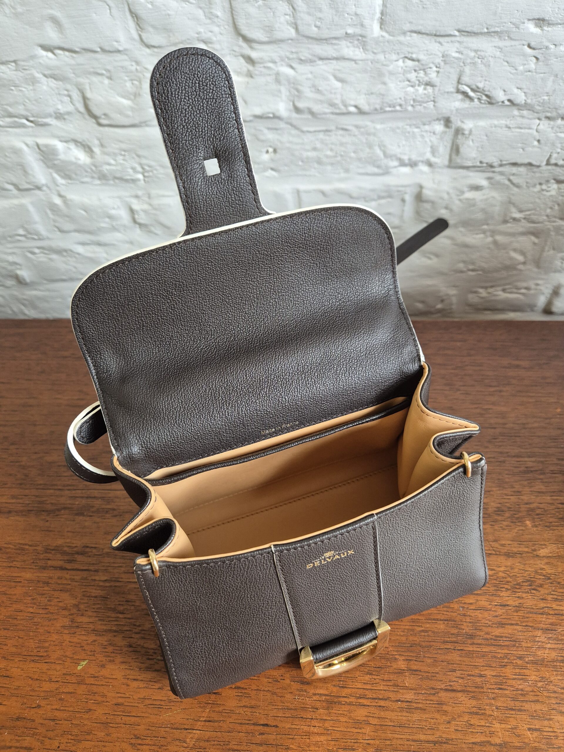 Atelier Mémé besteedt veel tijd en aandacht aan het zorgvuldig selecteren en, indien nodig, retoucheren van originele Delvaux handtassen. De tas is zo correct mogelijk in beeld gebracht met imperfecties die horen bij de vintage staat en manuele ambacht van zowel de Delvauxtas als de ambacht van het restaureren.