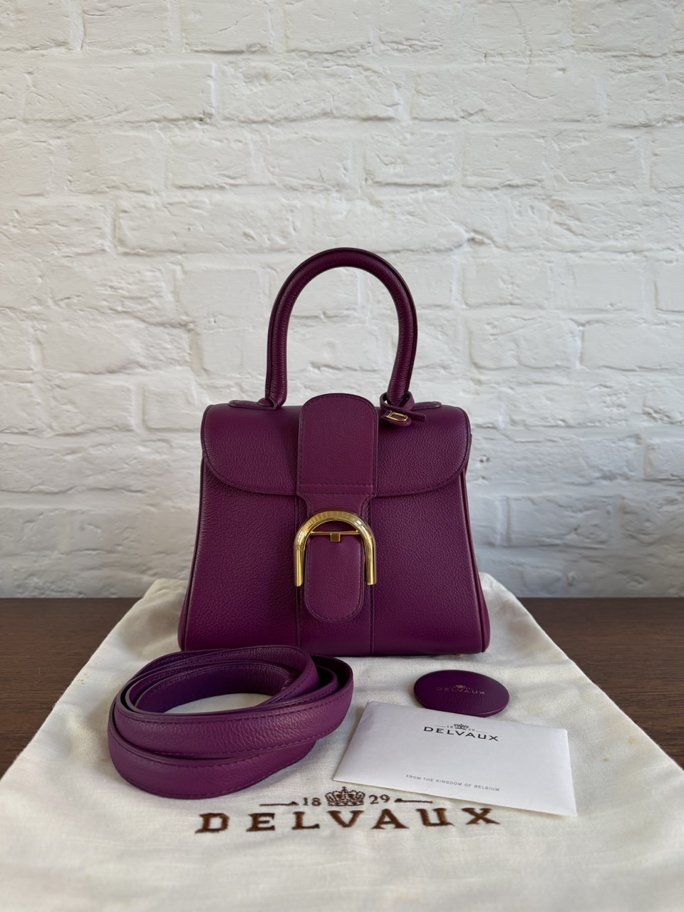 Authentieke Delvaux stofzak, Certificaat, Riem, Spiegel