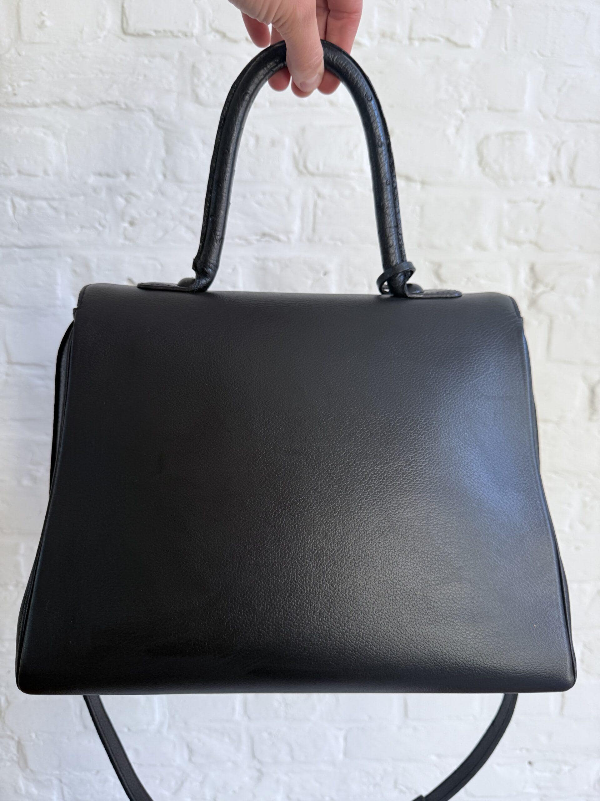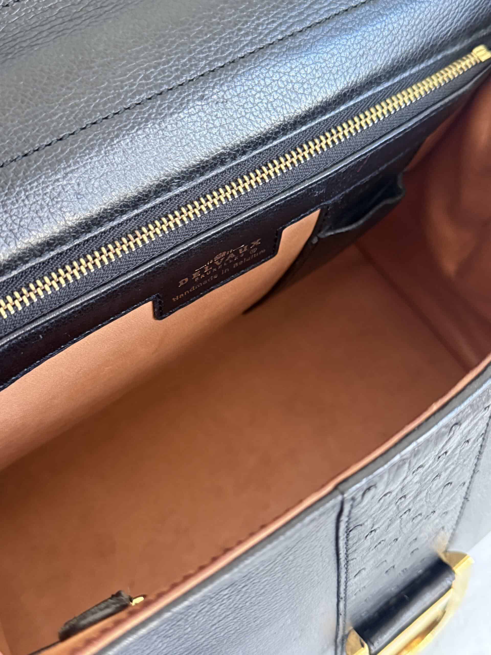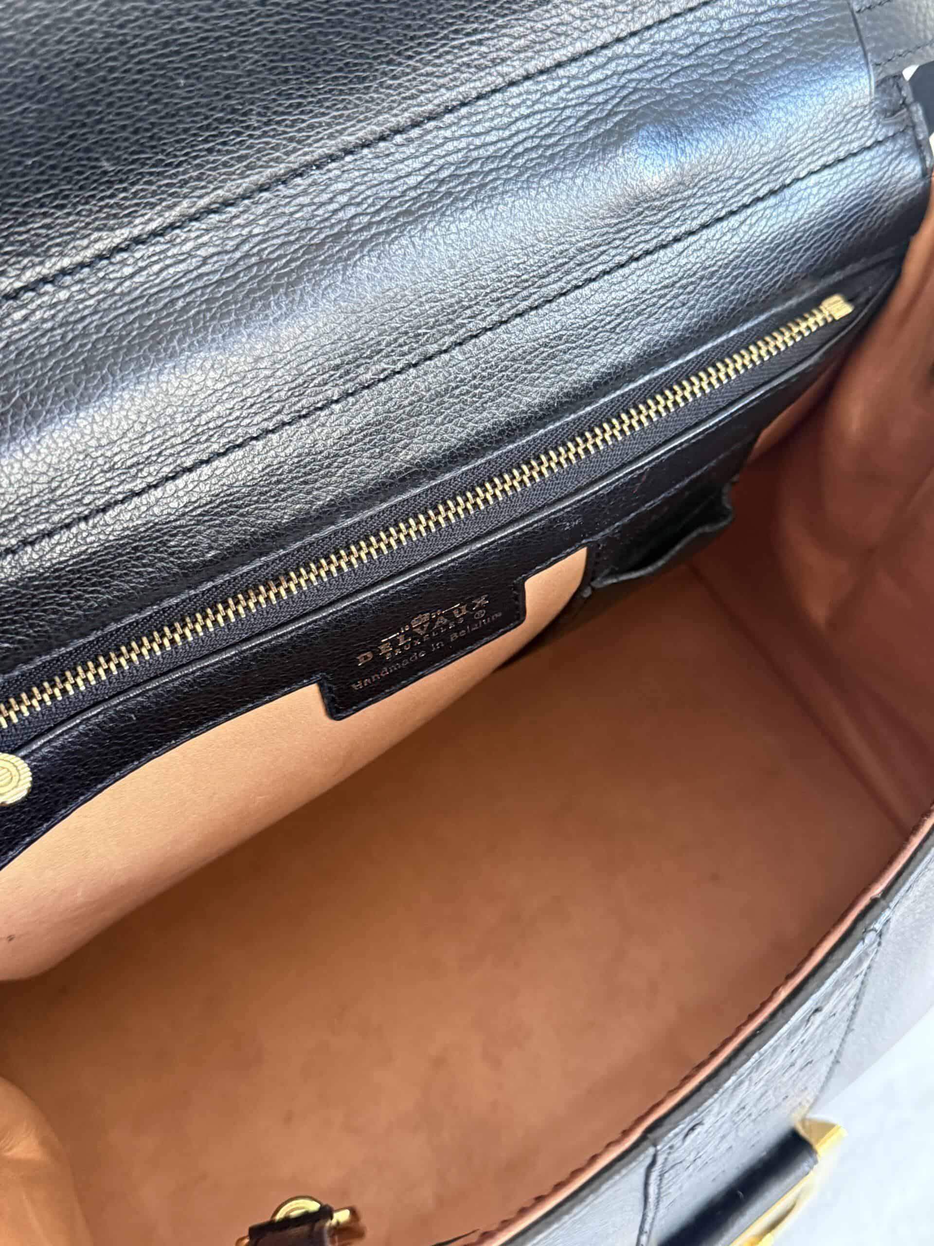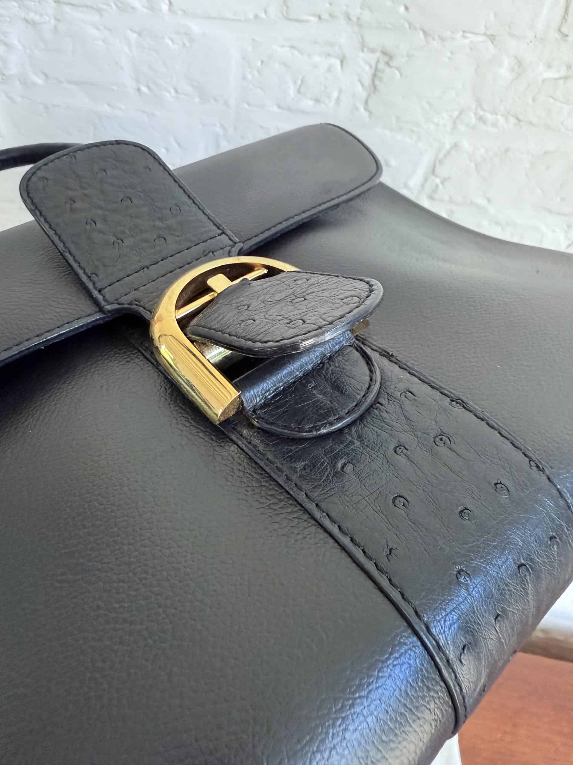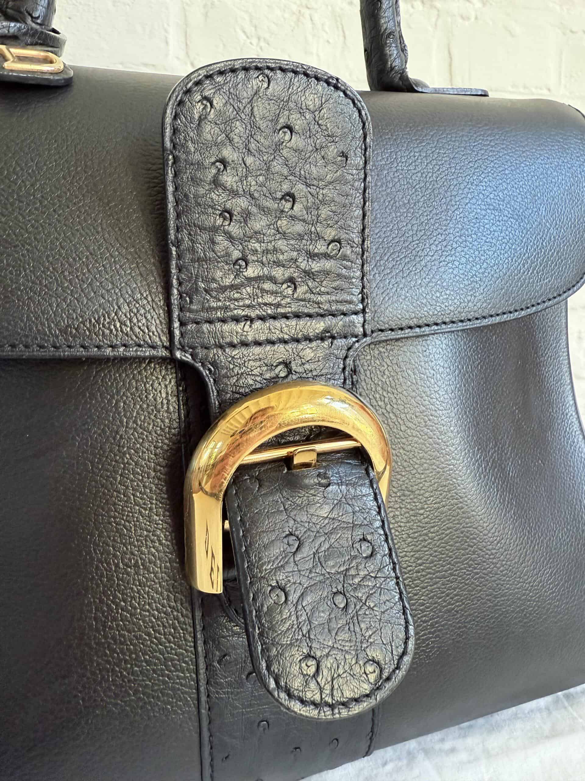 Een zwarte Brillant deels in autruche, deels in jumping calf , afgetopt met gouden hardware. Heilige Graal alert!