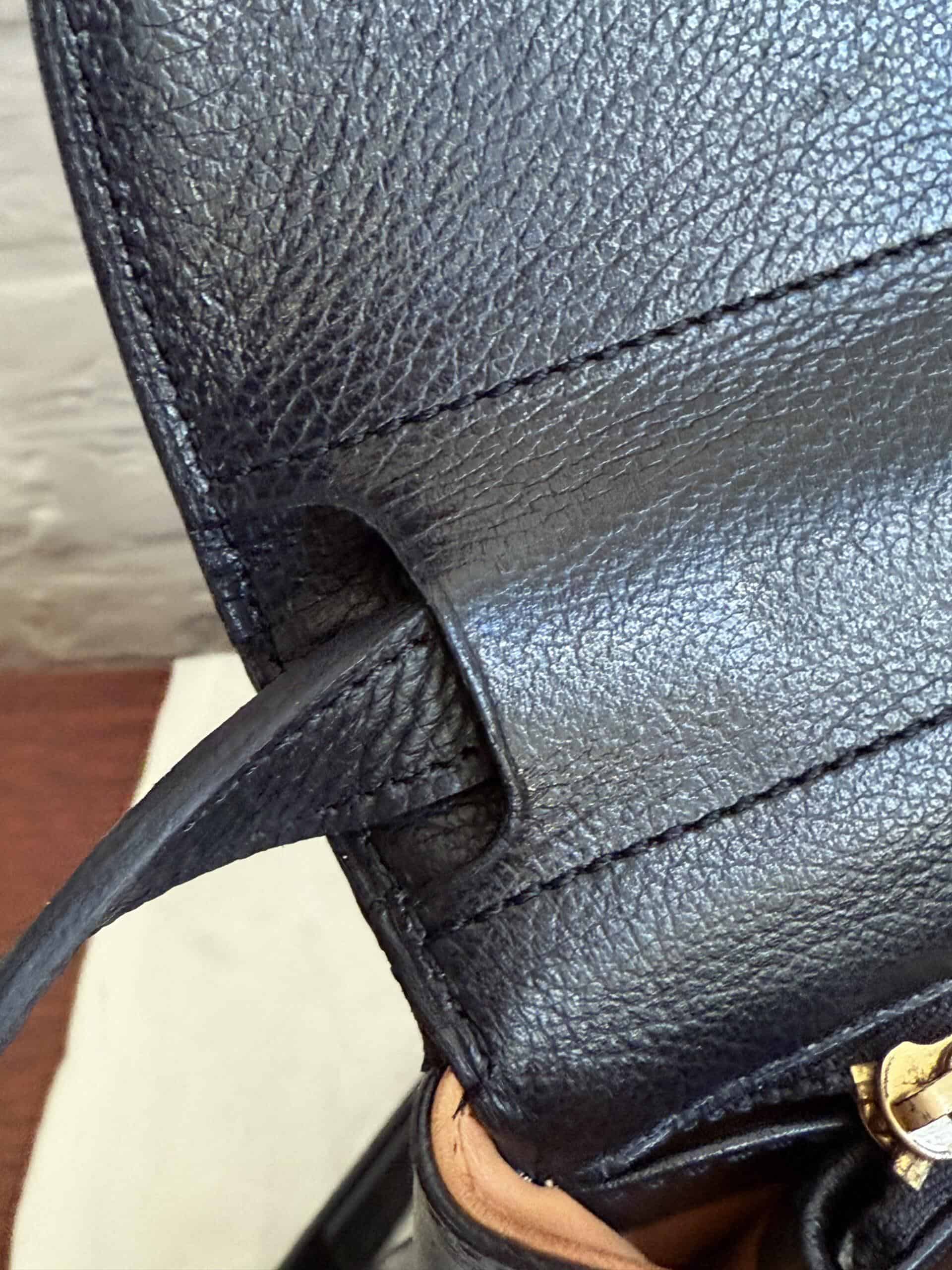 Hij komt met riem (die maakte we er zelf bij) – die doorheen een sleuf in de flap kan – en stofzak en is in magnifieke conditie. Zijn rug, zijn handvat: kaarsrecht. En dat voor een vintage stuk. Buitengewoon.