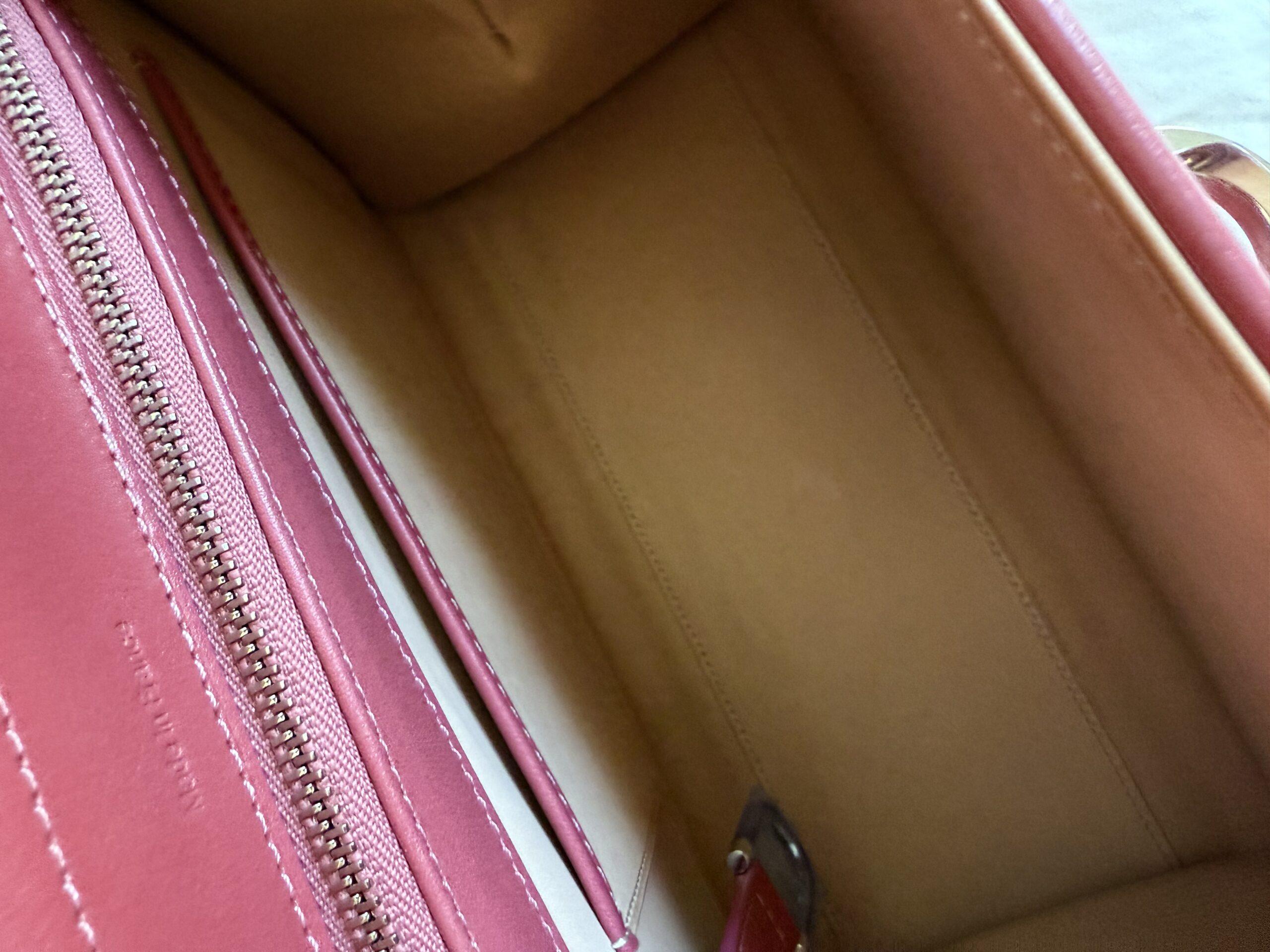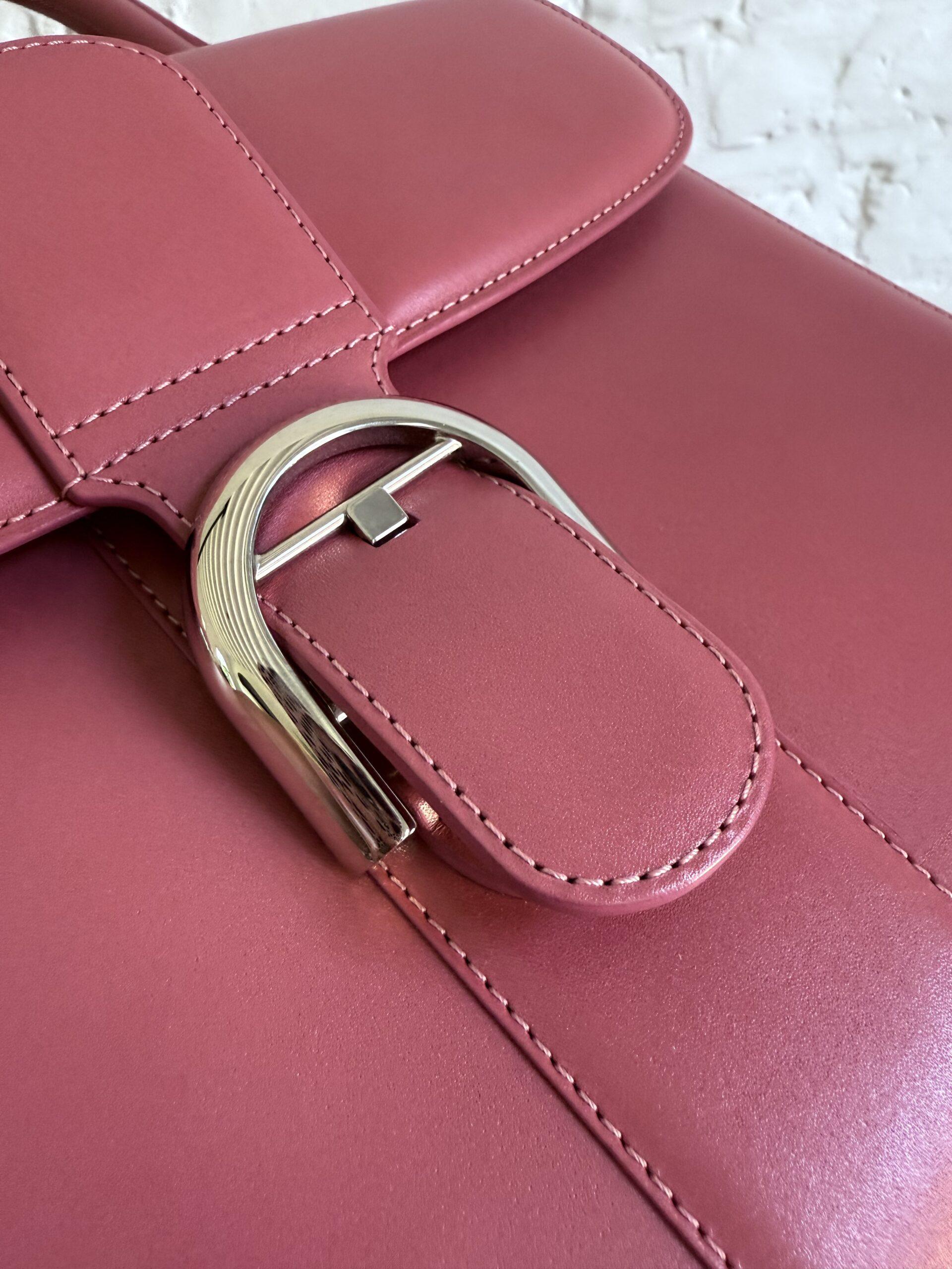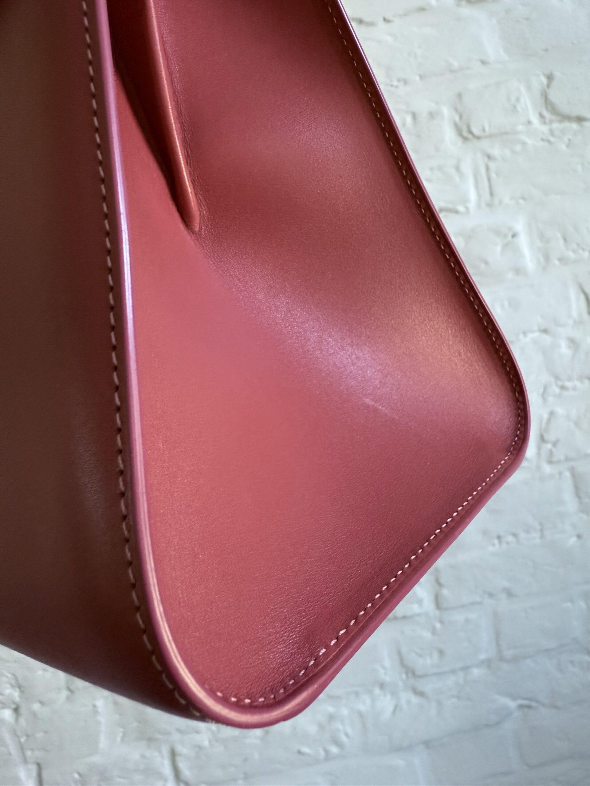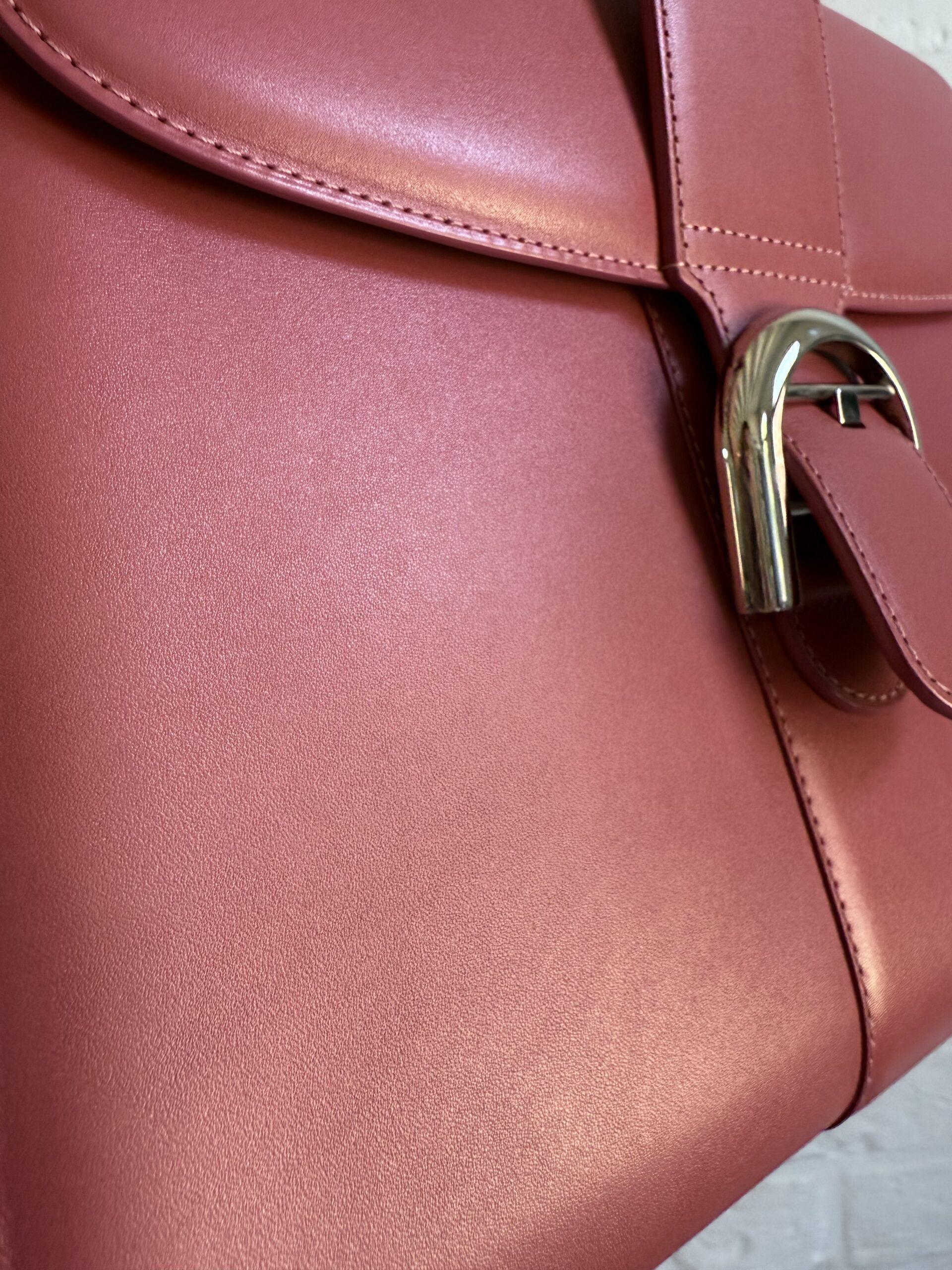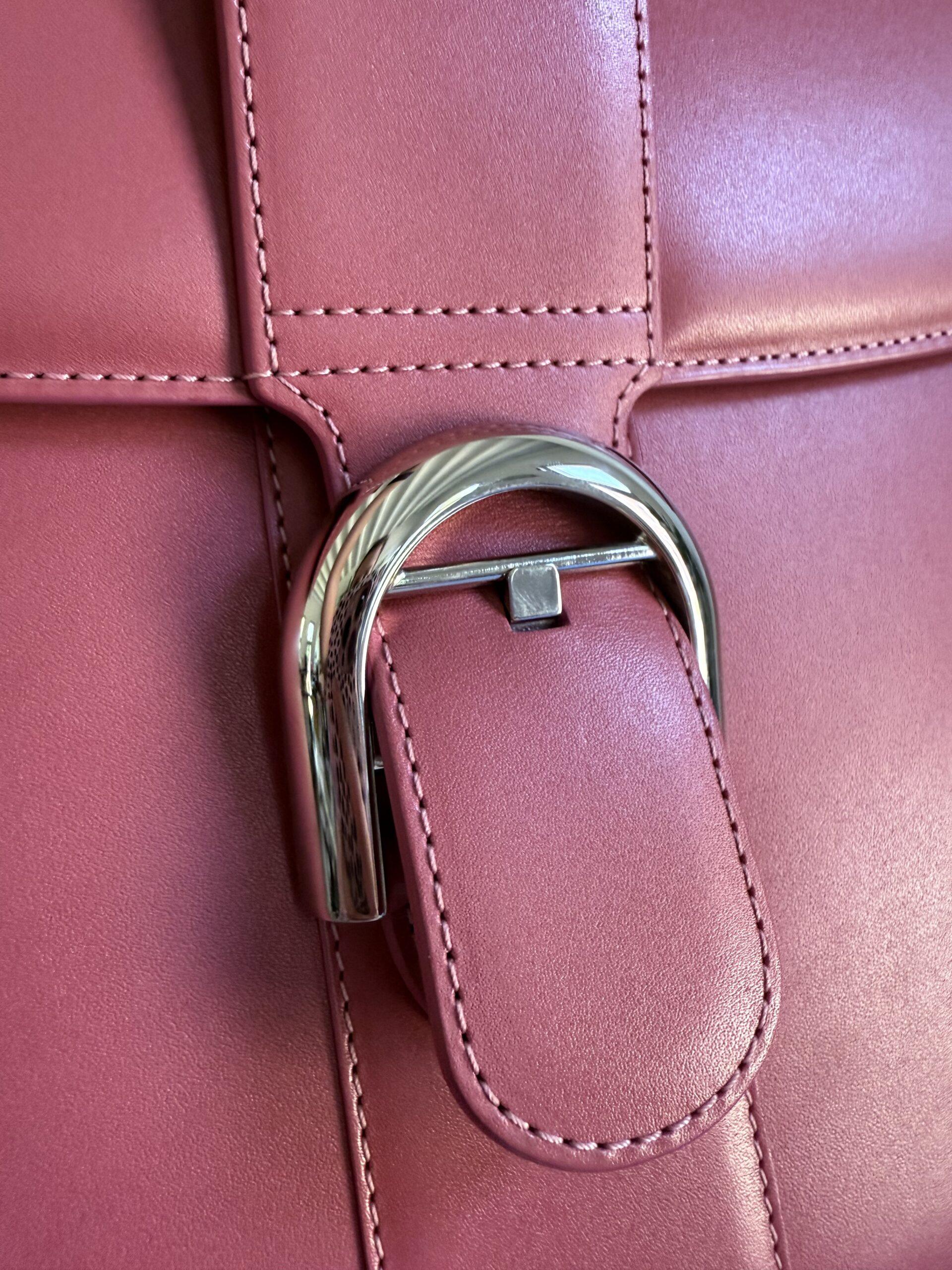 Hij komt in een set met riem, stofzak, spiegeltje en certificaat! Het leder is box calf in een magnifieke Bois de Rose. De hardware is zilverkleurig.