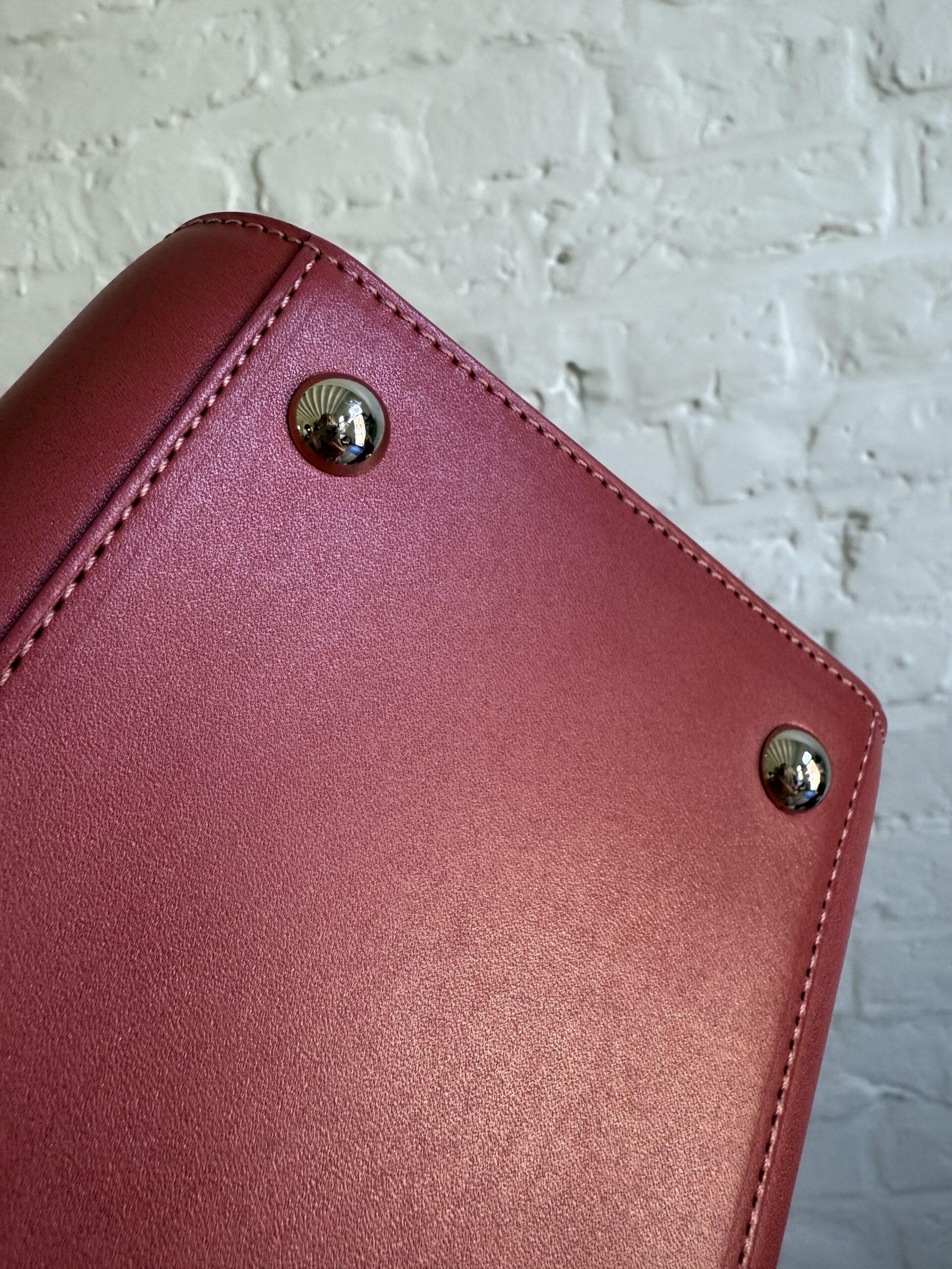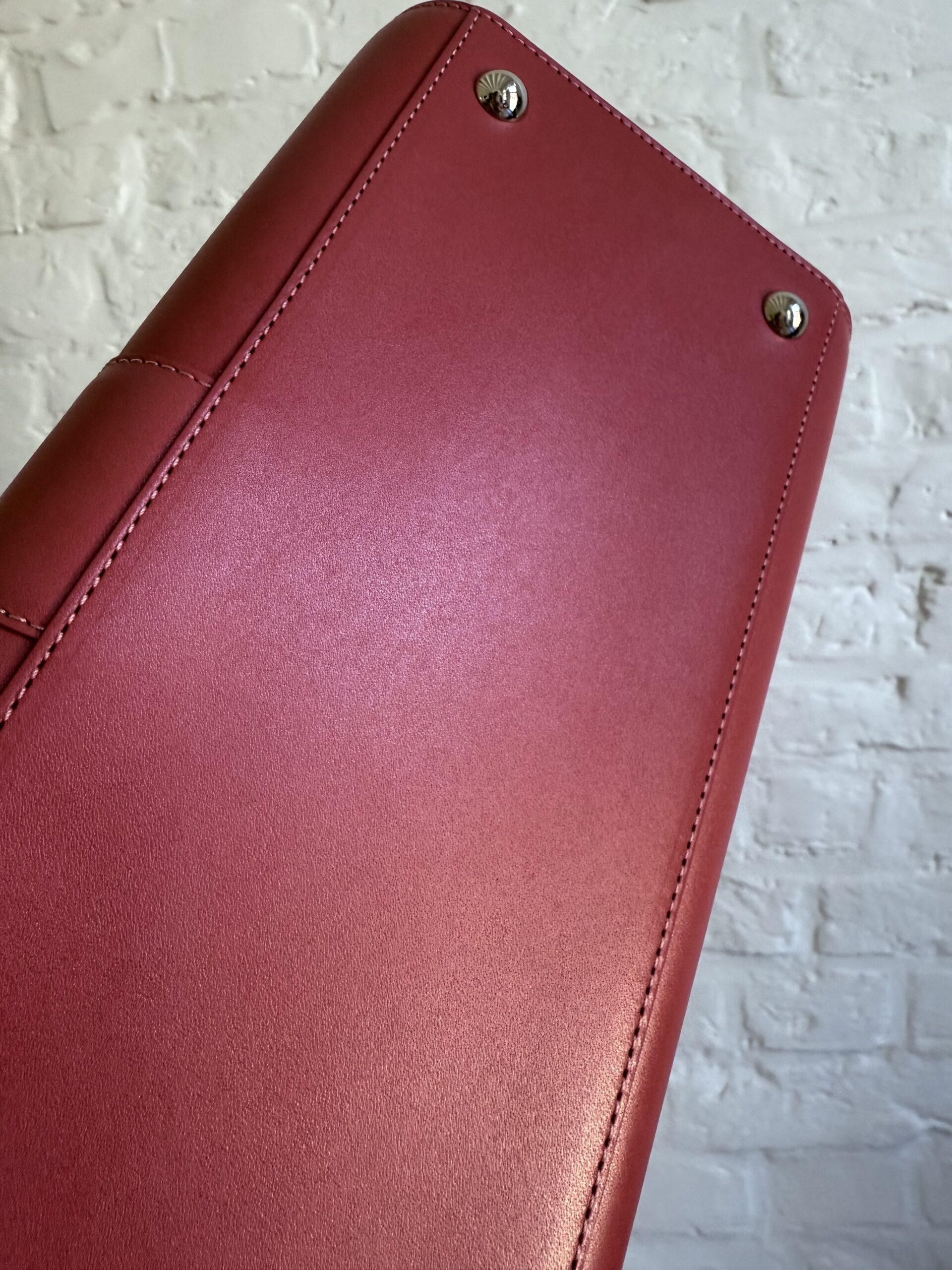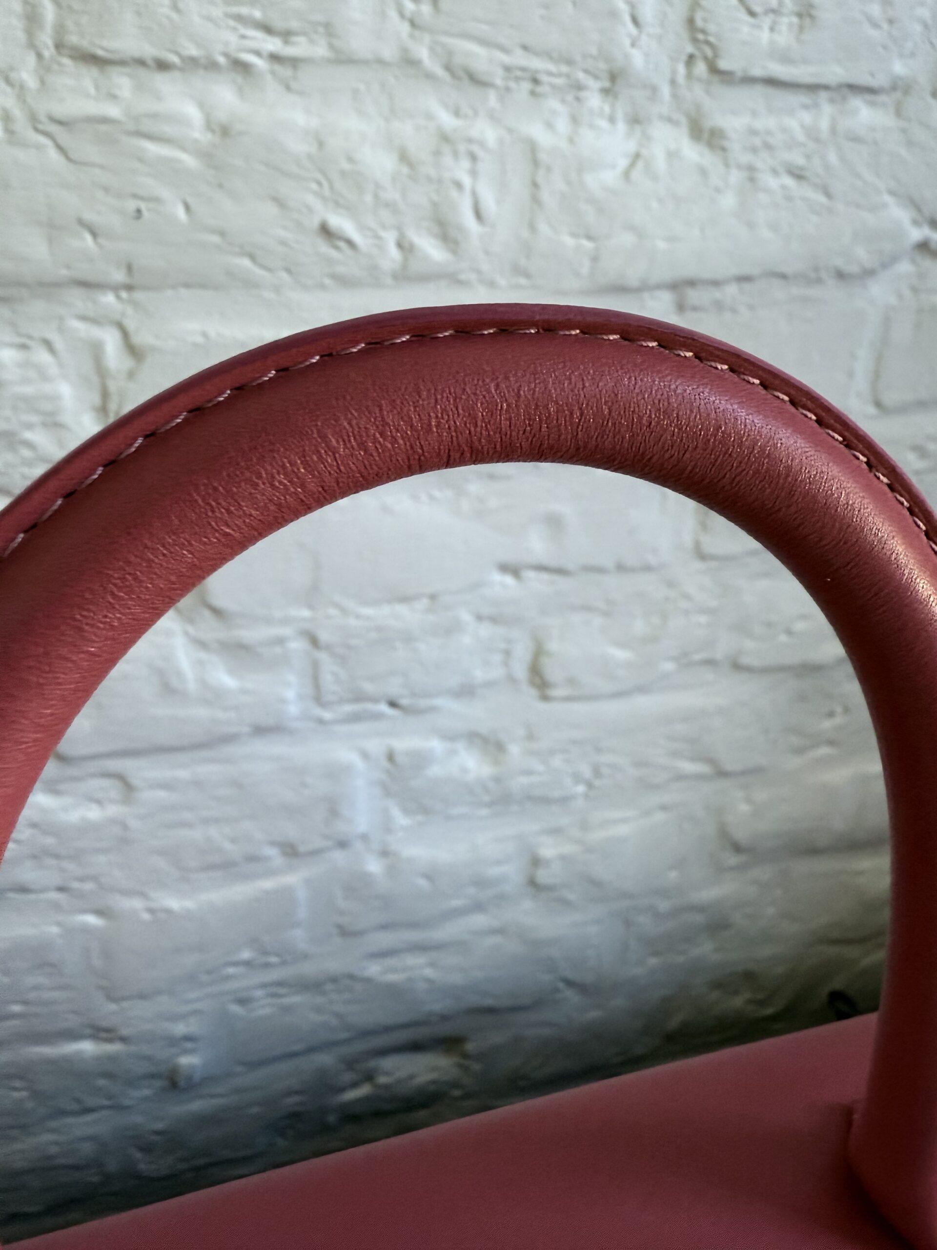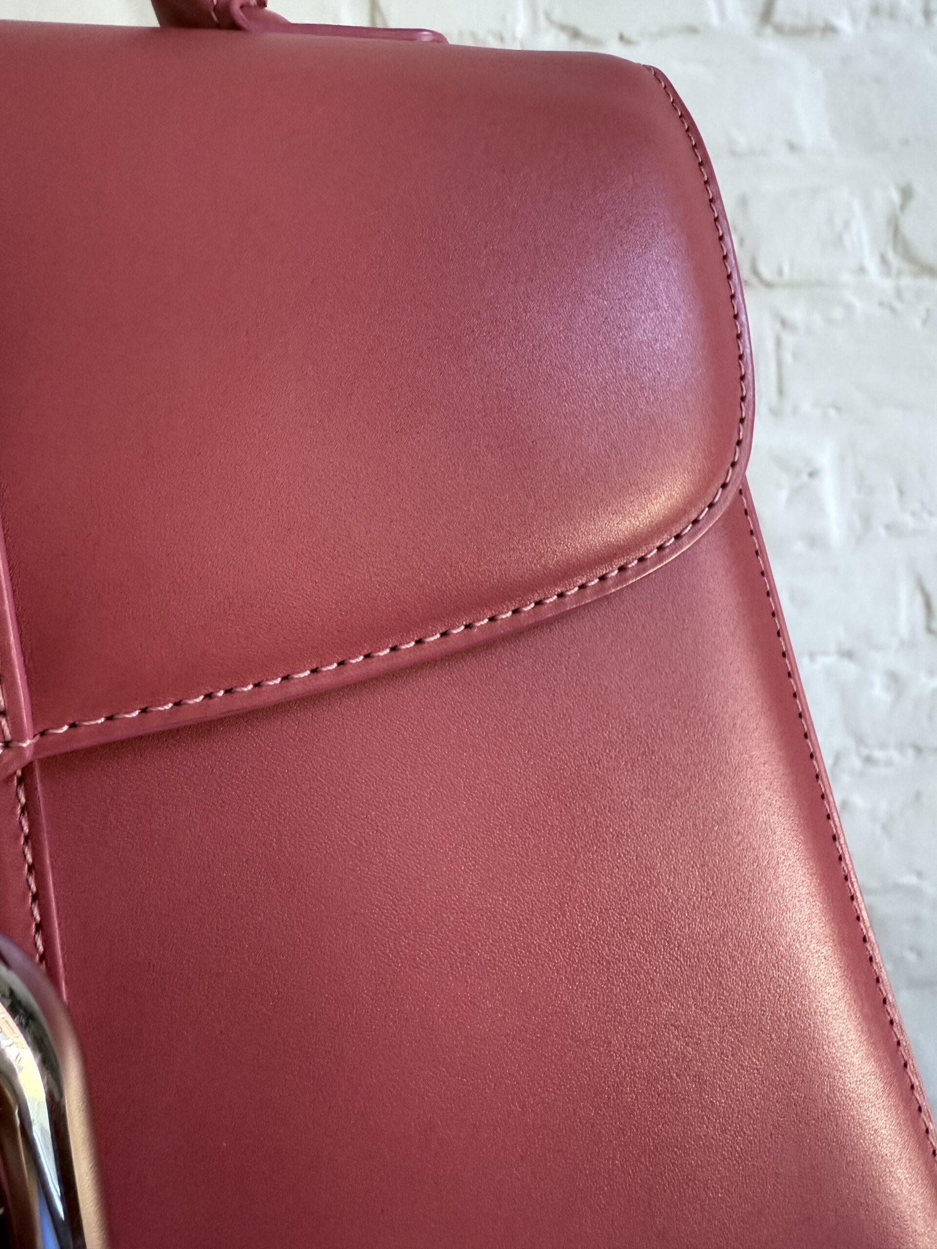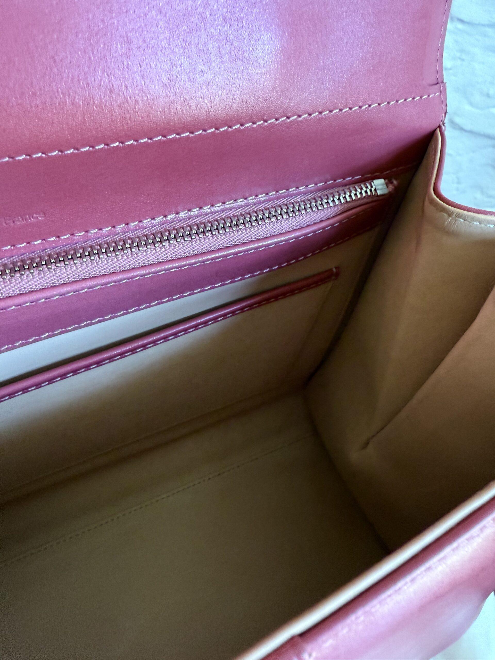 Hij komt in een set met riem, stofzak, spiegeltje en certificaat! Het leder is box calf in een magnifieke Bois de Rose. De hardware is zilverkleurig.