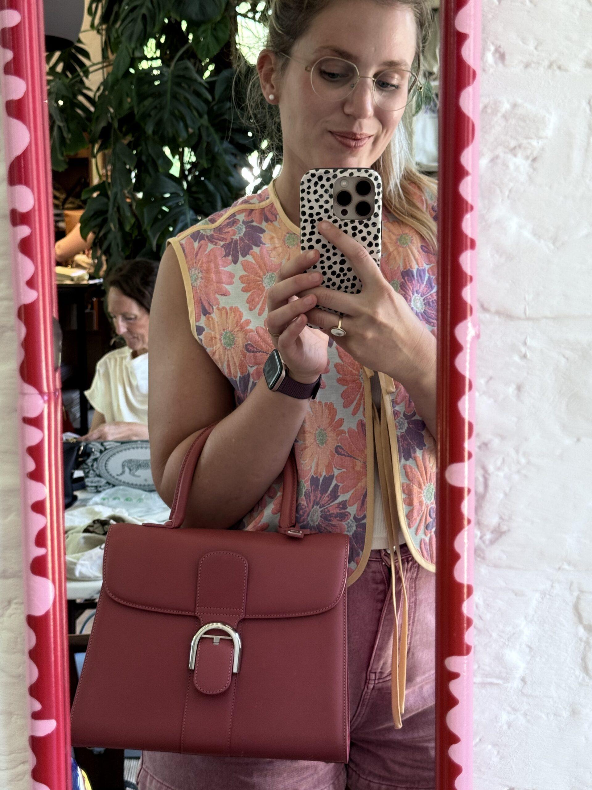 Atelier Mémé besteedt veel tijd en aandacht aan het zorgvuldig selecteren en, indien nodig, retoucheren van originele Delvaux handtassen. De tas is zo correct mogelijk in beeld gebracht met imperfecties die horen bij de vintage staat en manuele ambacht van zowel de Delvauxtas als de ambacht van het restaureren.
