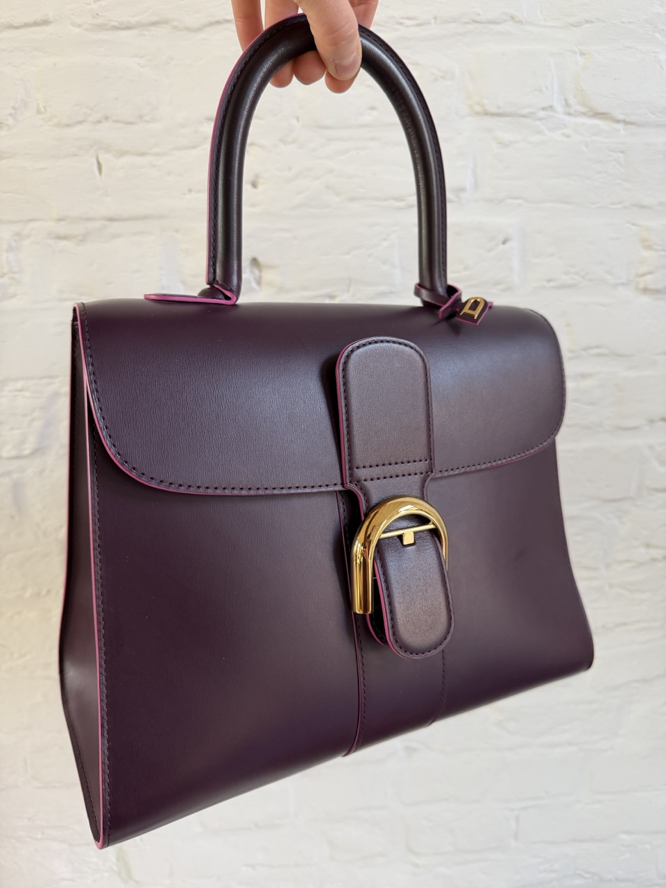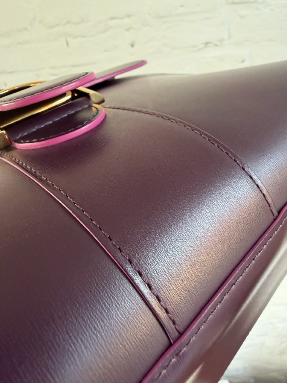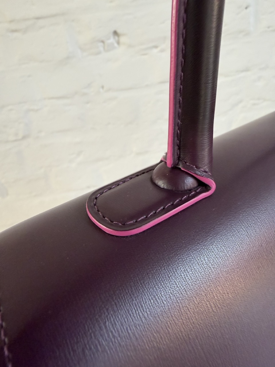 Brillant MM in Prune Box Calf met roze kantverf.