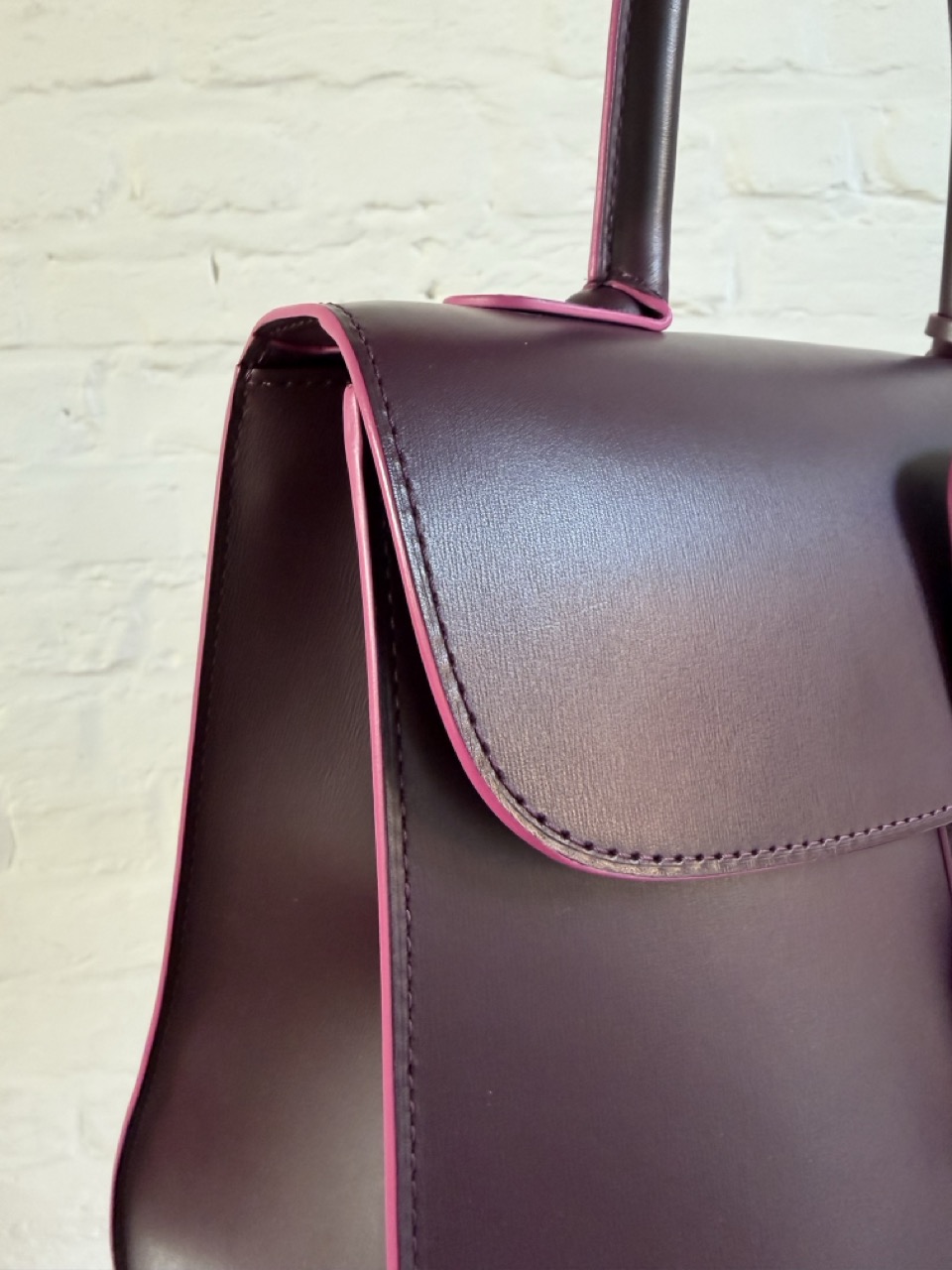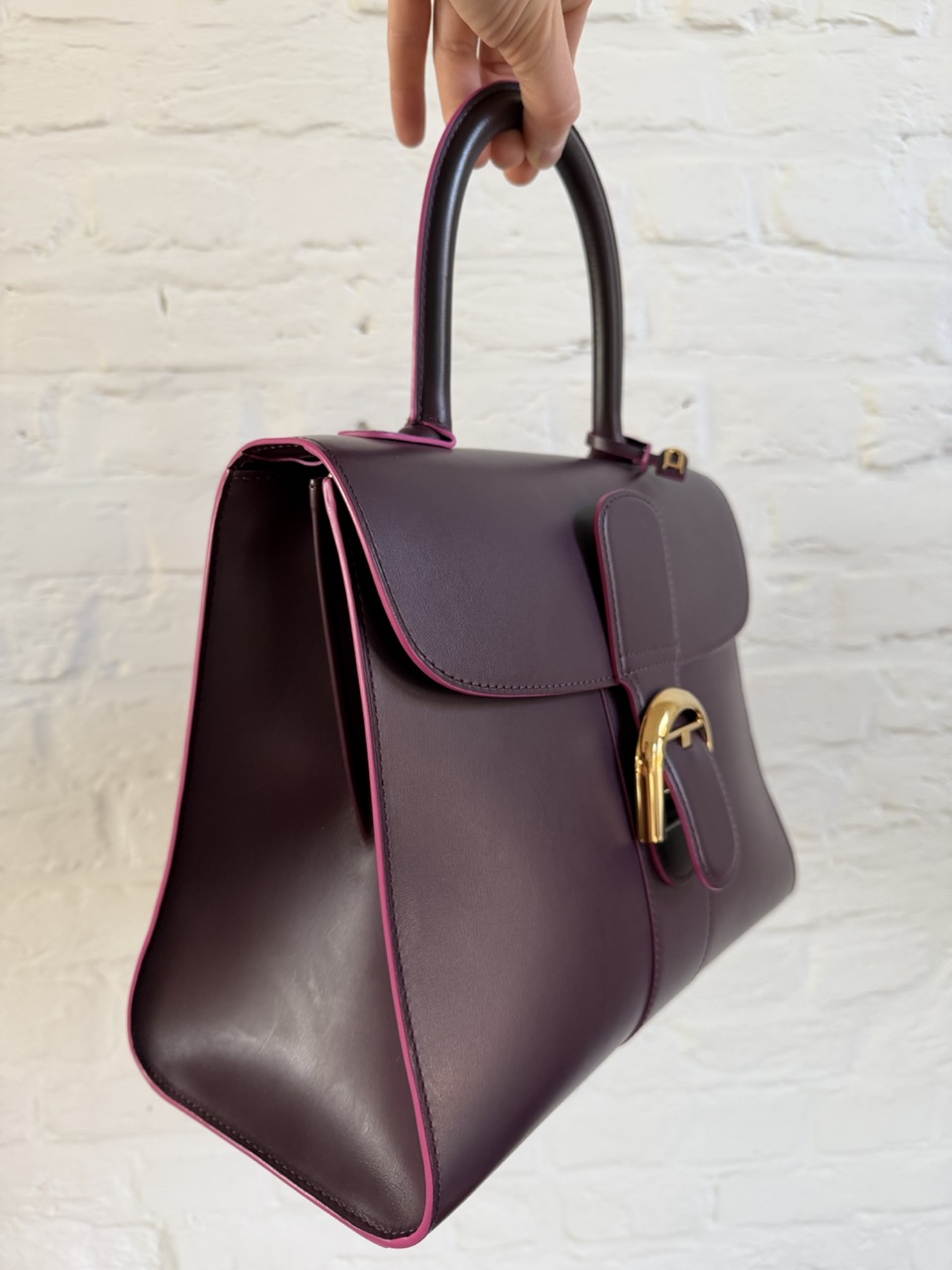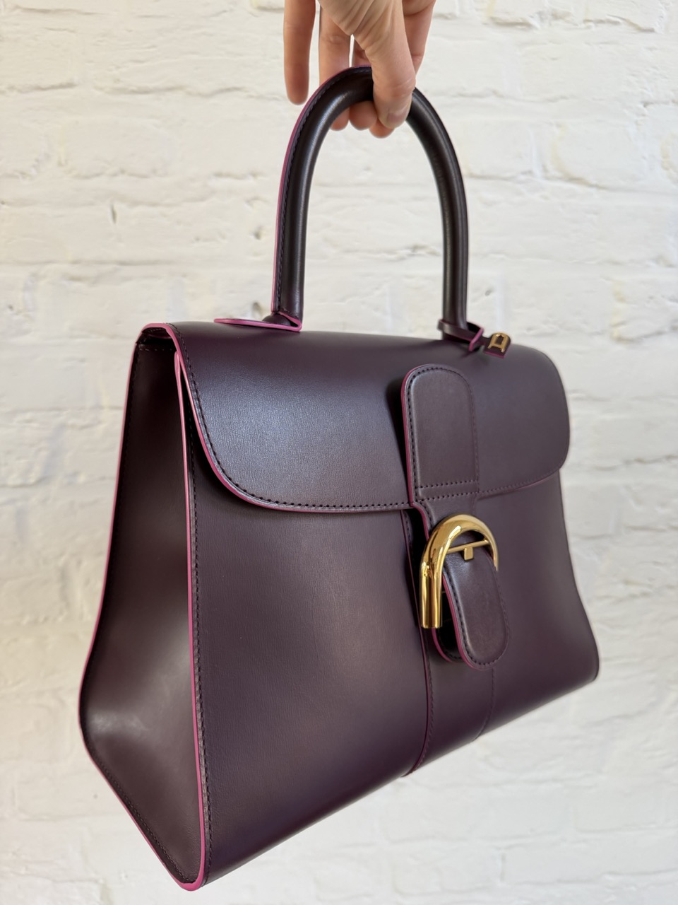Brillant MM in Prune Box Calf met roze kantverf.