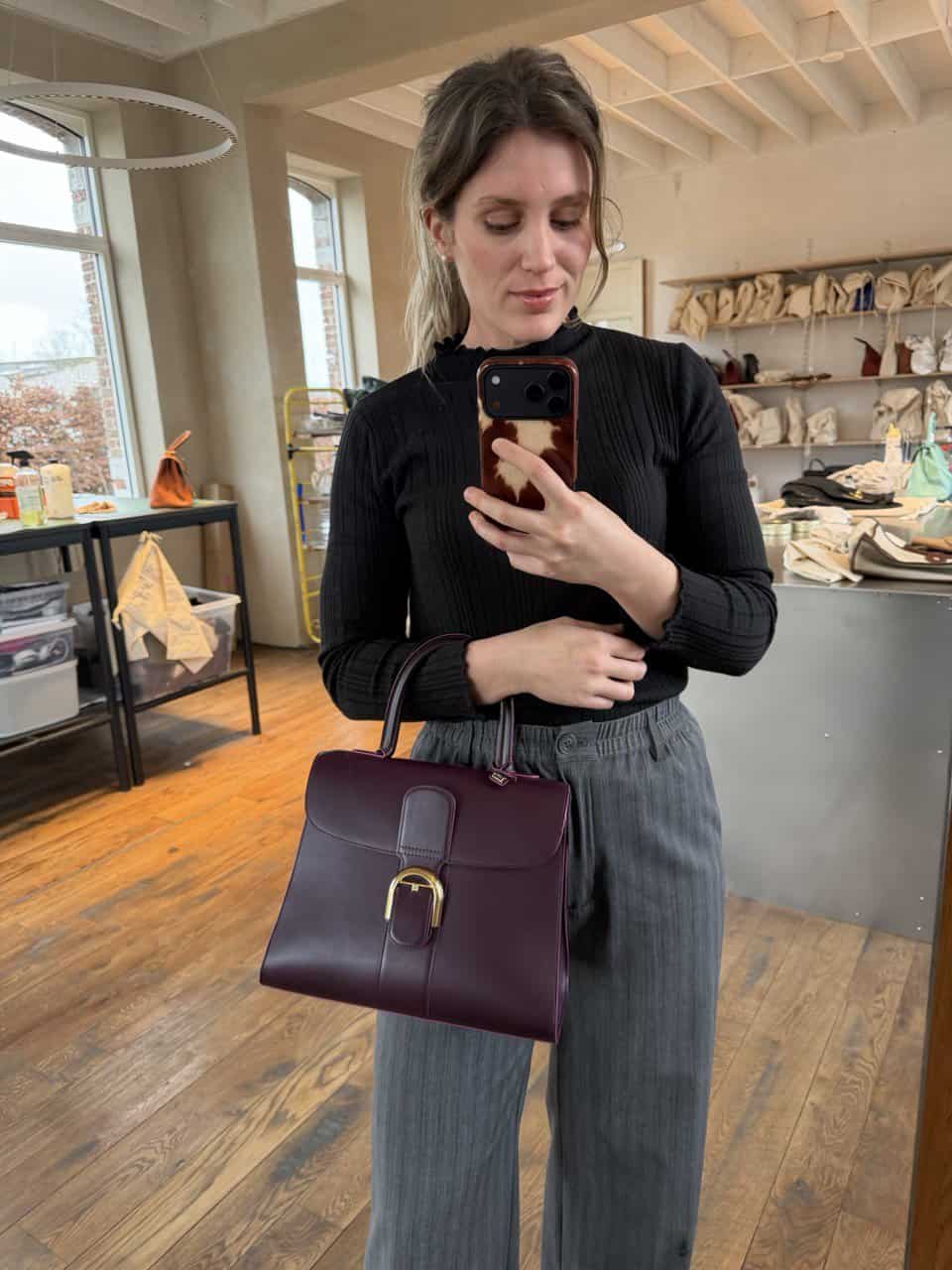 Atelier Mémé besteedt veel tijd en aandacht aan het zorgvuldig selecteren en, indien nodig, retoucheren van originele Delvaux handtassen. De tas is zo correct mogelijk in beeld gebracht met imperfecties die horen bij de vintage staat en manuele ambacht van zowel de Delvauxtas als de ambacht van het restaureren.
