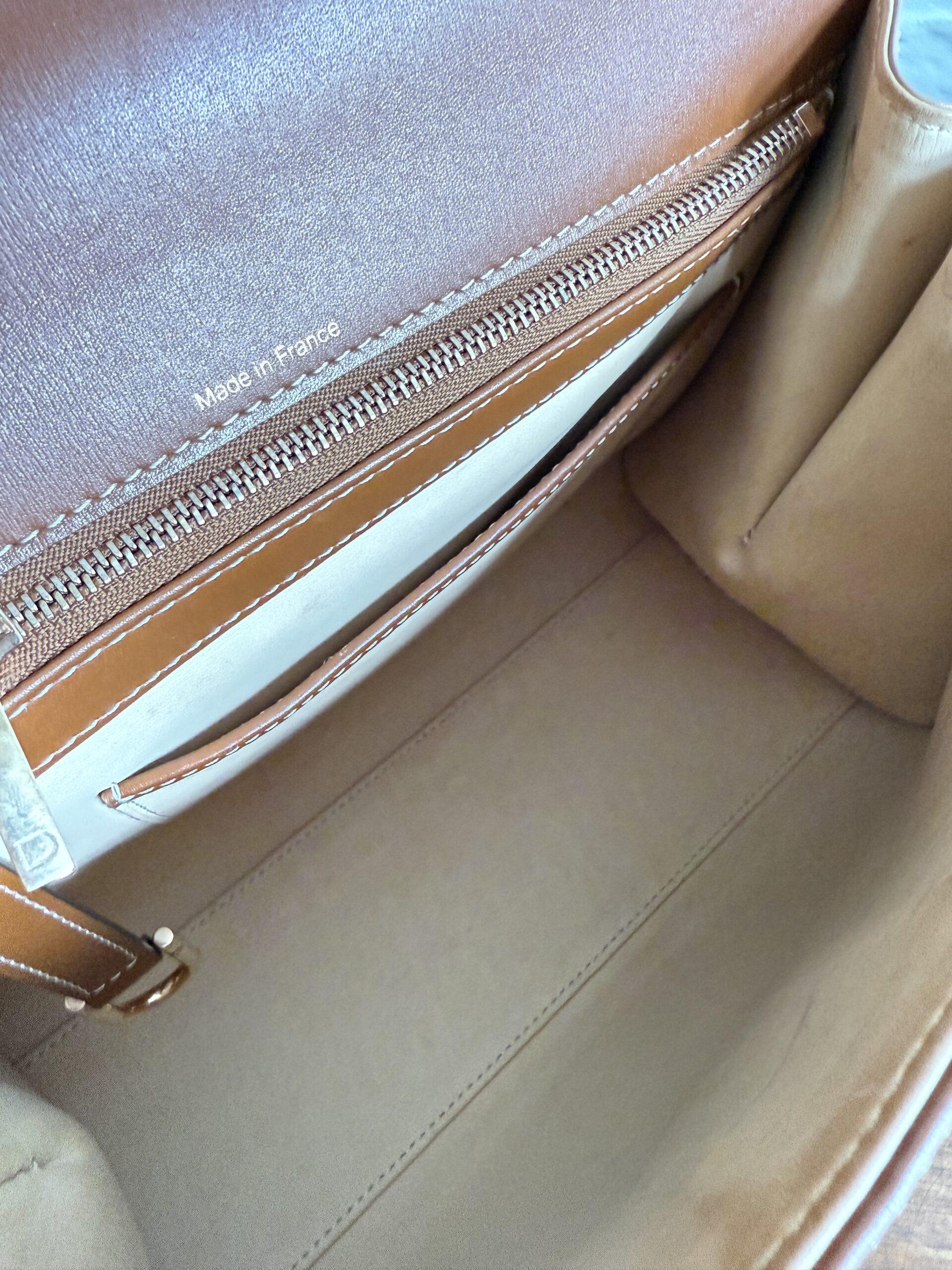 Atelier Mémé besteedt veel tijd en aandacht aan het zorgvuldig selecteren en, indien nodig, retoucheren van originele Delvaux handtassen. De tas is zo correct mogelijk in beeld gebracht met imperfecties die horen bij de vintage staat en manuele ambacht van zowel de Delvauxtas als de ambacht van het restaureren.