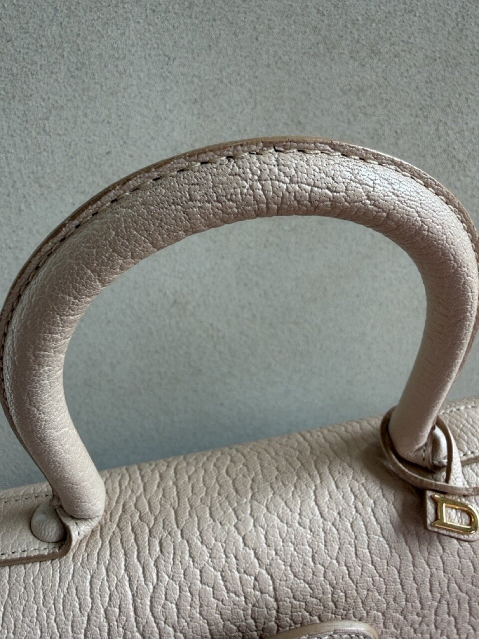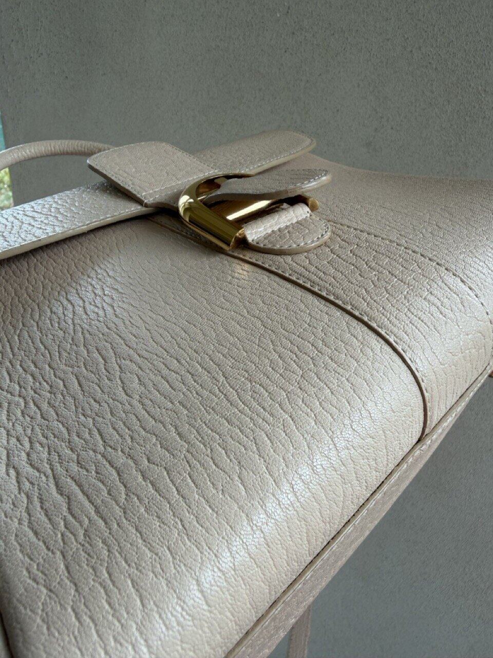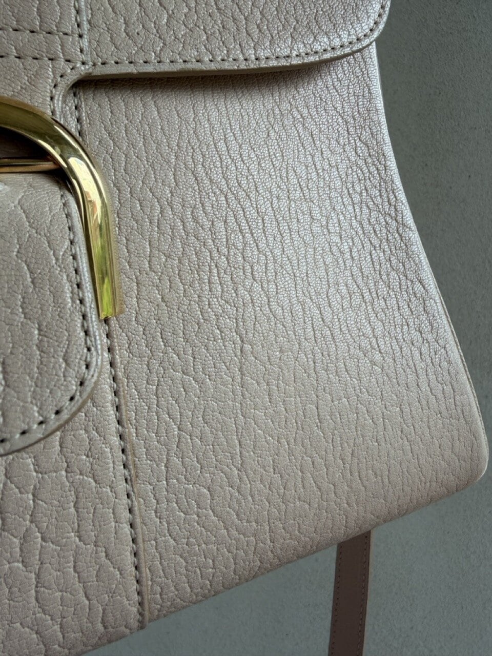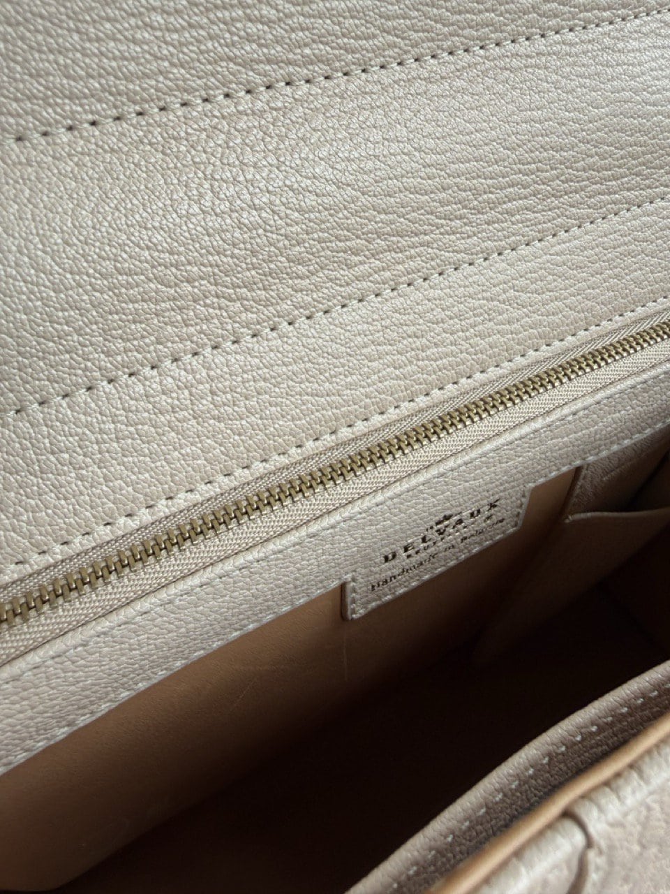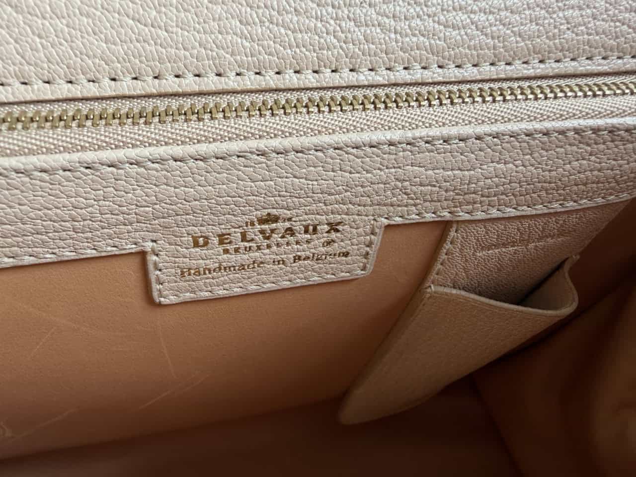 Atelier Mémé besteedt veel tijd en aandacht aan het zorgvuldig selecteren en, indien nodig, retoucheren van originele Delvaux handtassen. De tas is zo correct mogelijk in beeld gebracht met imperfecties die horen bij de vintage staat en manuele ambacht van zowel de Delvauxtas als de ambacht van het restaureren.
