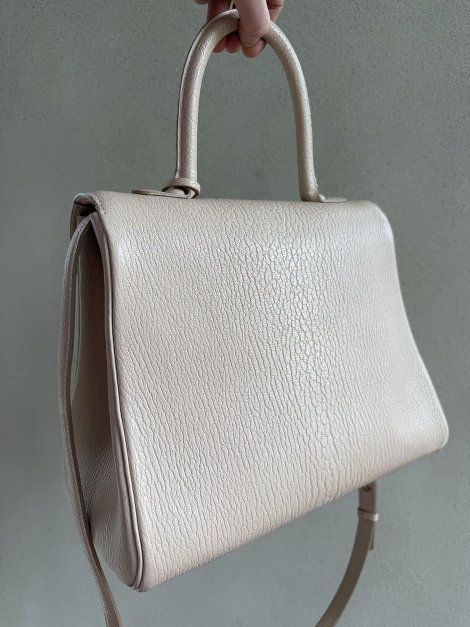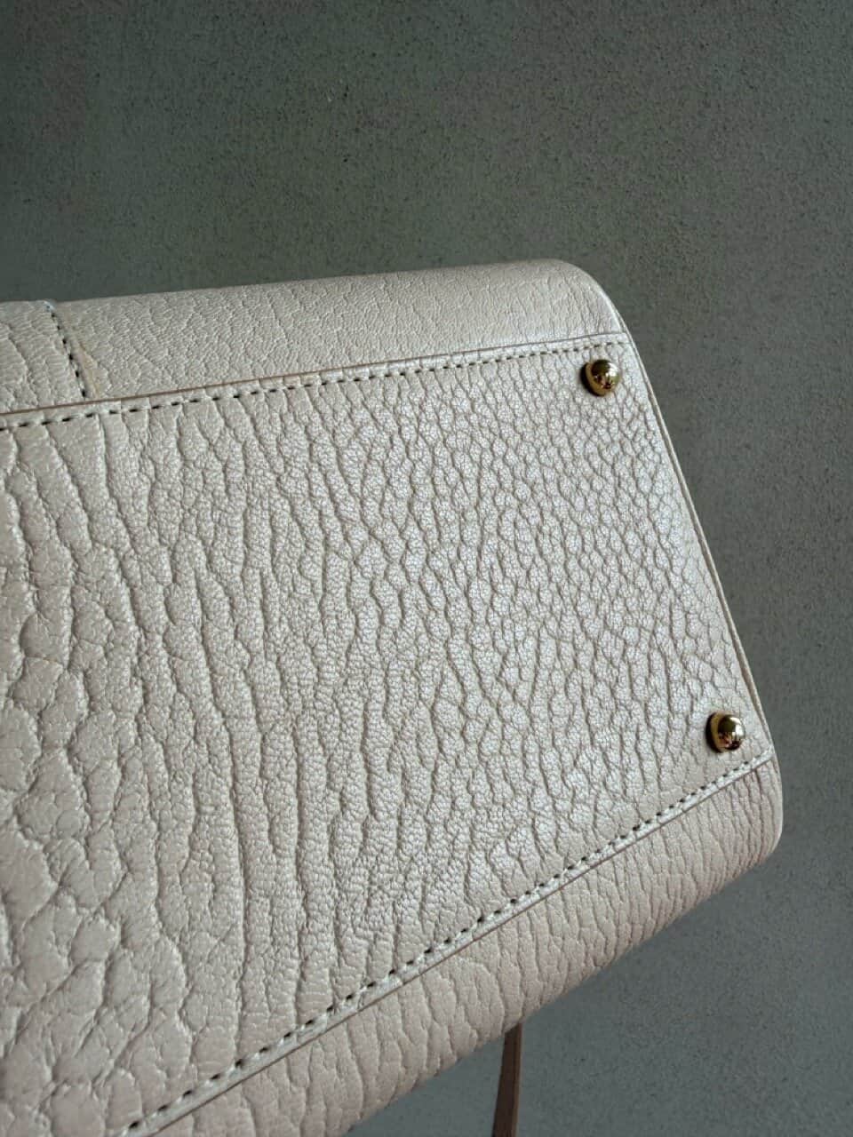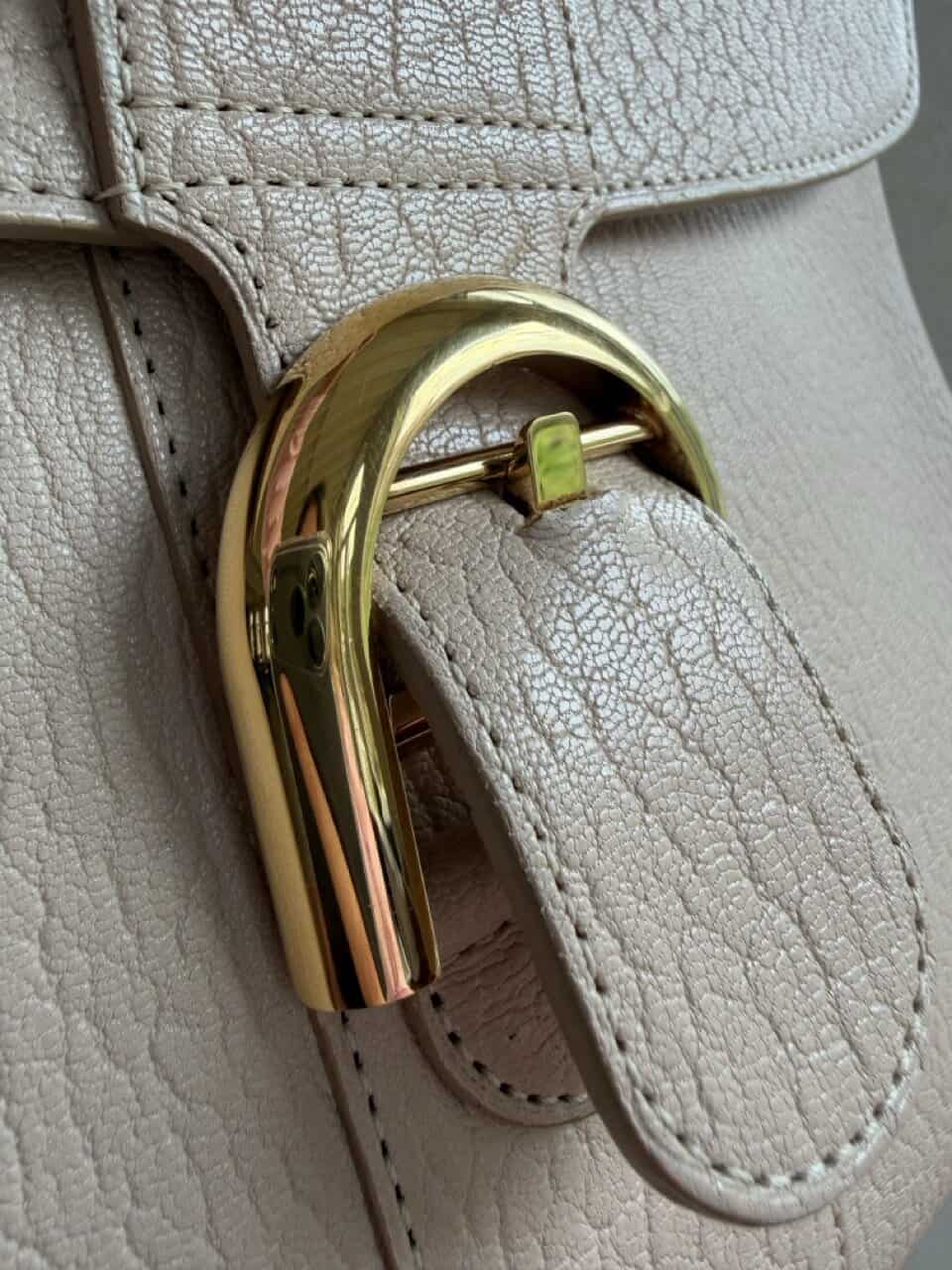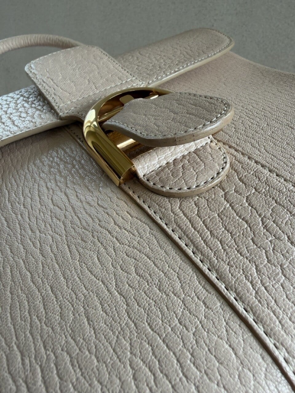 Brillant MM in geitenhuid in de kleur nude met gouden hardware.