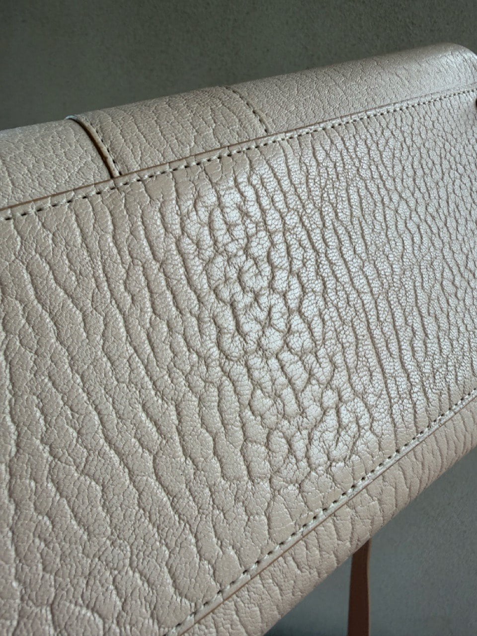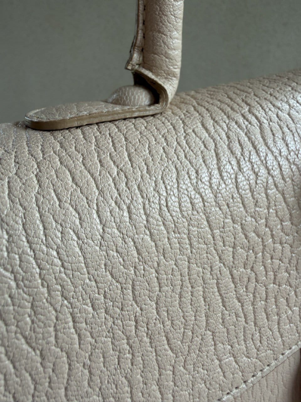 Ze is uitgevoerd in chèvre en net dat is heel bijzonder. Een sterk leder met een uitgesproken structuur. Exclusief, maar ook duurzaam.