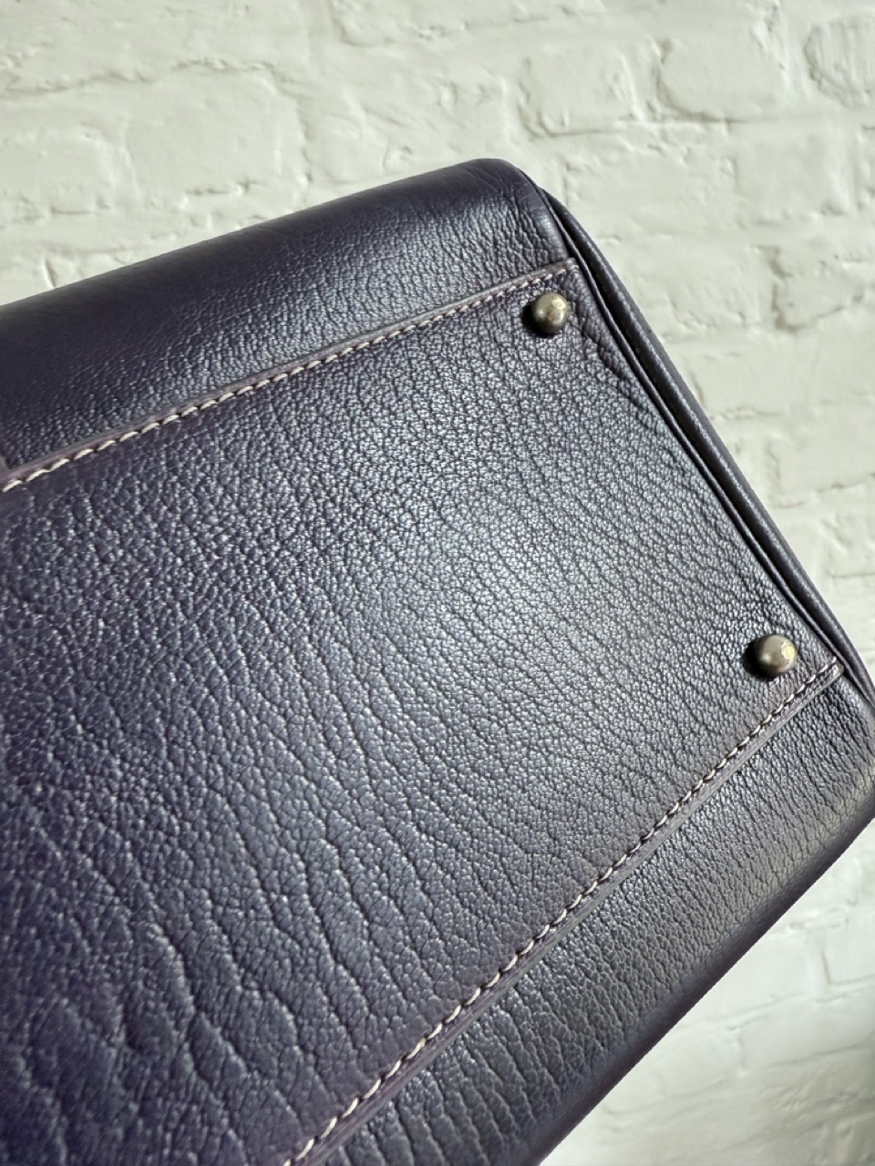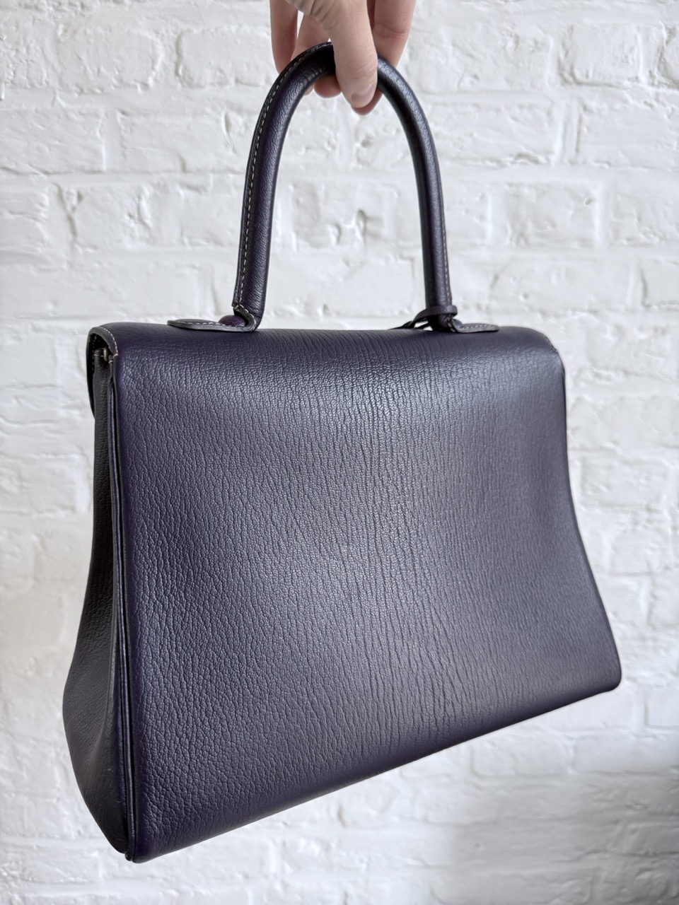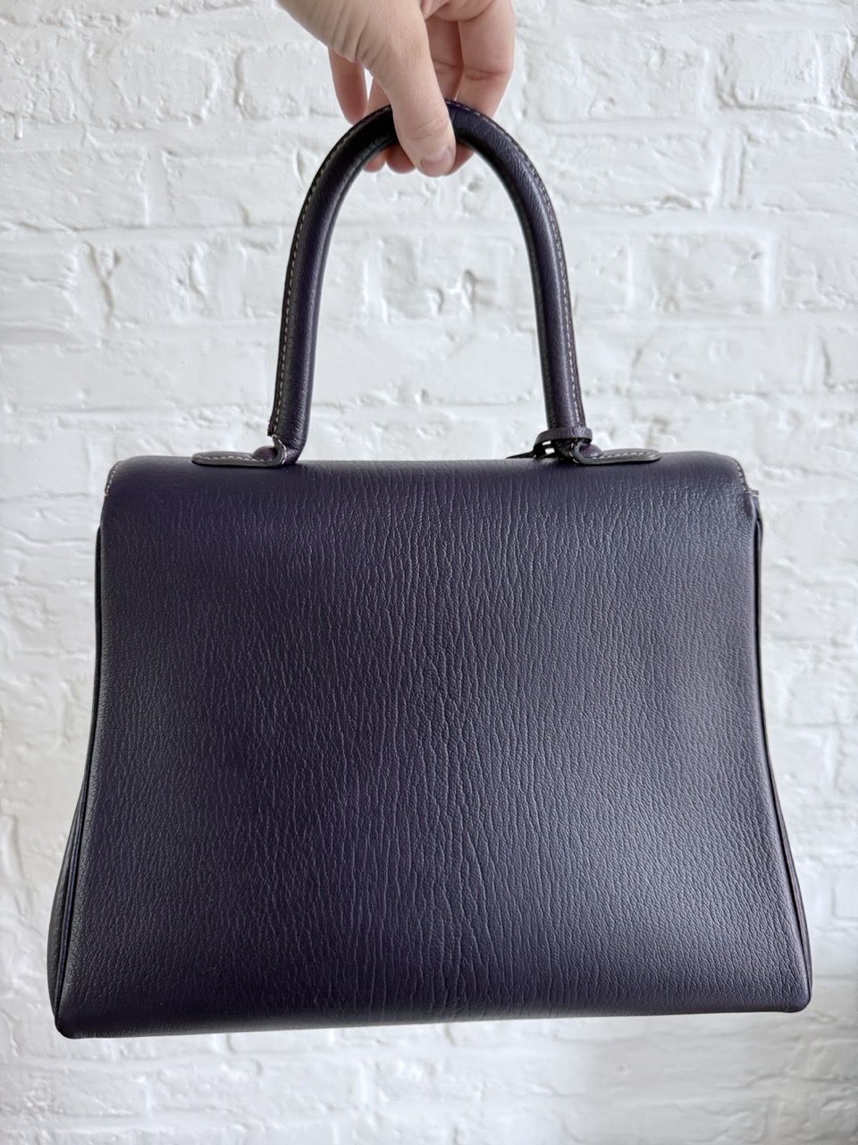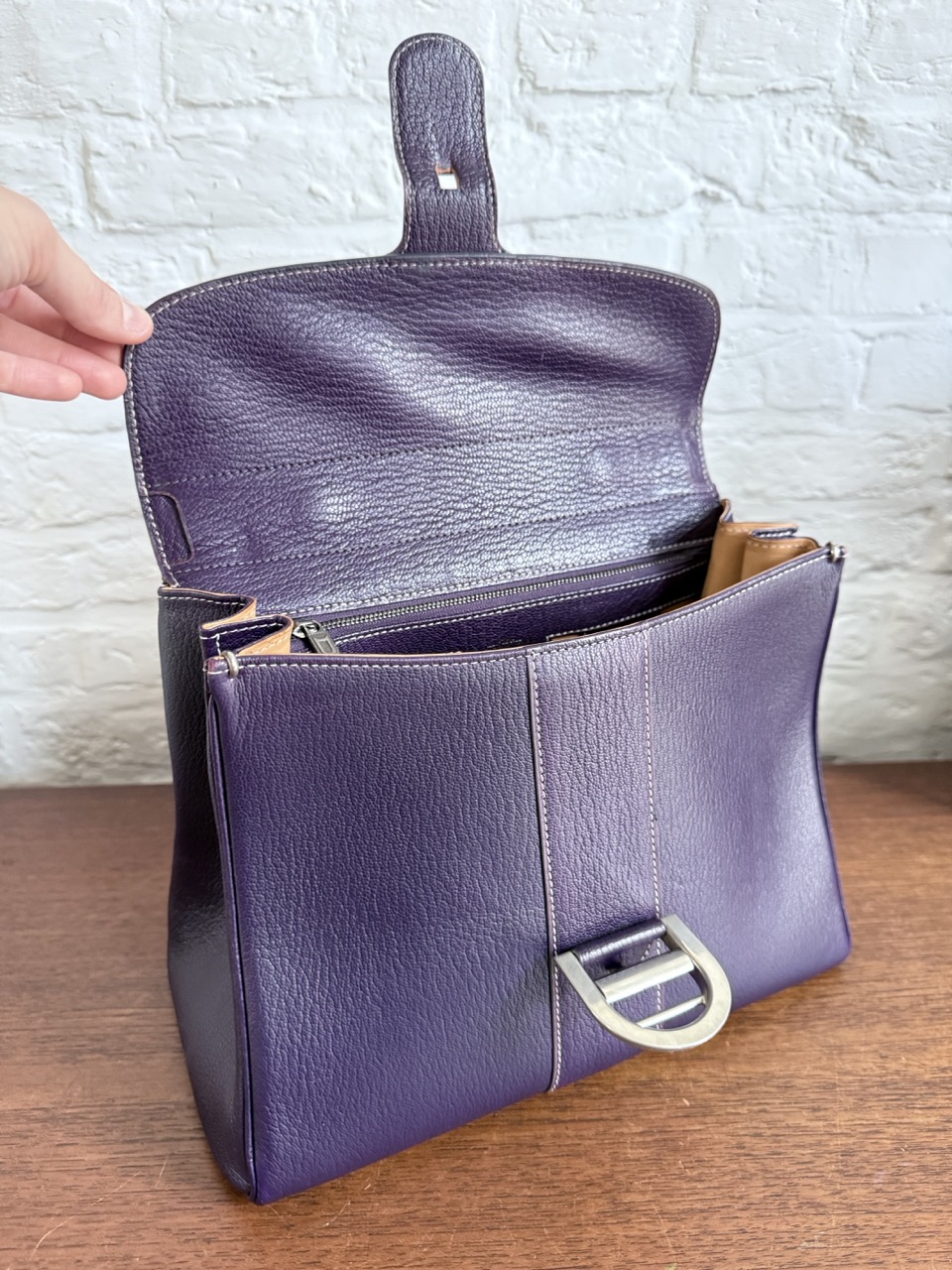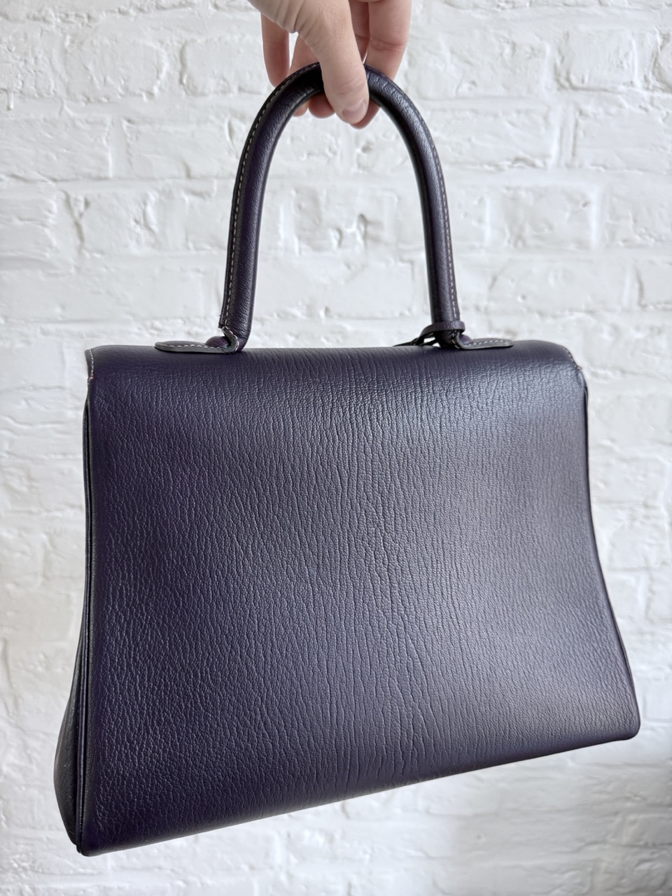 Deze Brillant is uitgevoerd in geitenleder, heel exclusief voor Delvaux. Het leder is centraal gesneden en dat geeft het waanzinnig mooie patroon achteraan op de rug. Mega exclusief en adembenemend in deze diepe Indigo kleur. De witte naden zijn de kers op de taart. Spierwit en als nieuw!