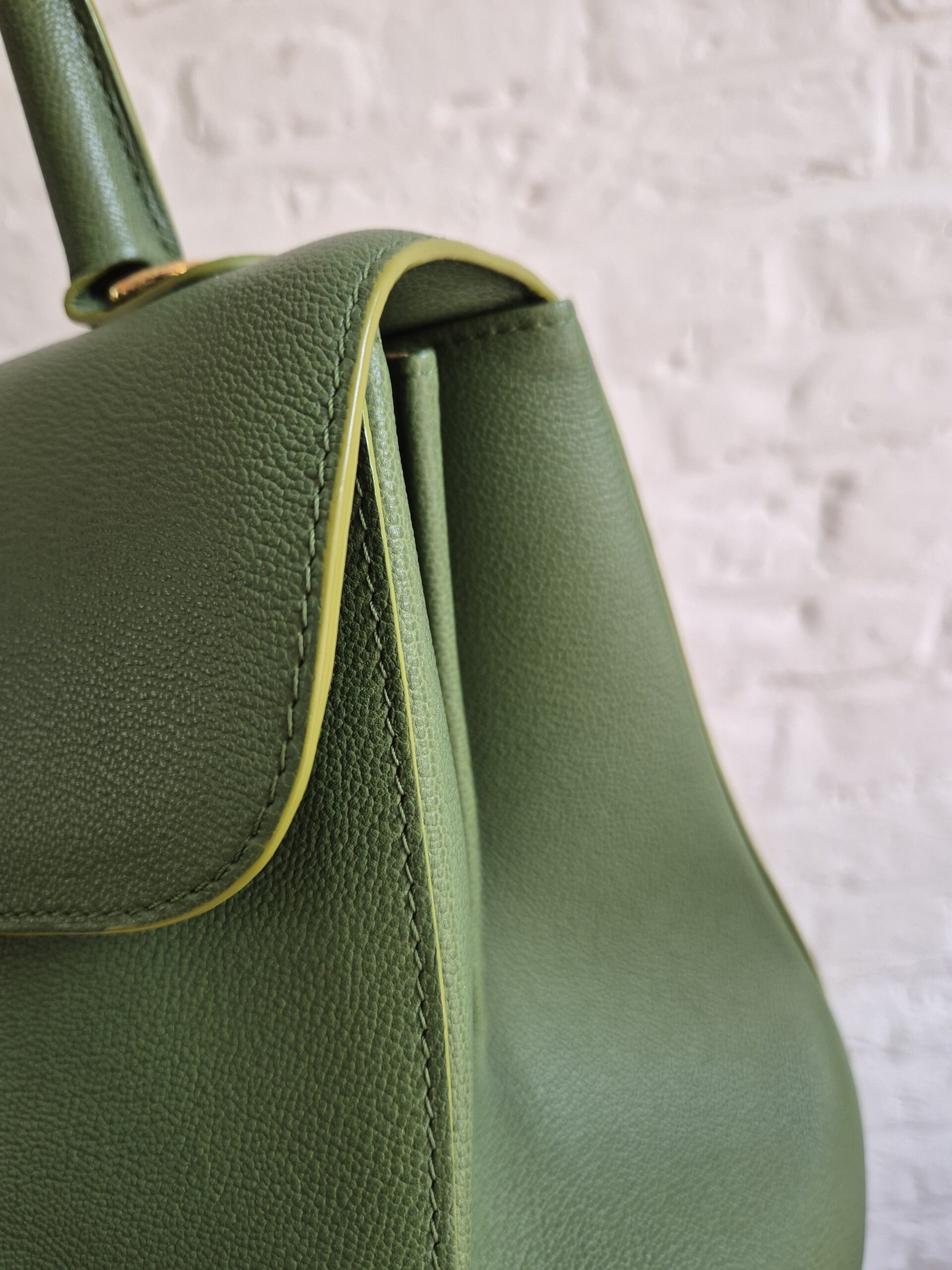 Atelier Mémé besteedt veel tijd en aandacht aan het zorgvuldig selecteren en, indien nodig, retoucheren van originele Delvaux handtassen. De tas is zo correct mogelijk in beeld gebracht met imperfecties die horen bij de vintage staat en manuele ambacht van zowel de Delvauxtas als de ambacht van het restaureren.