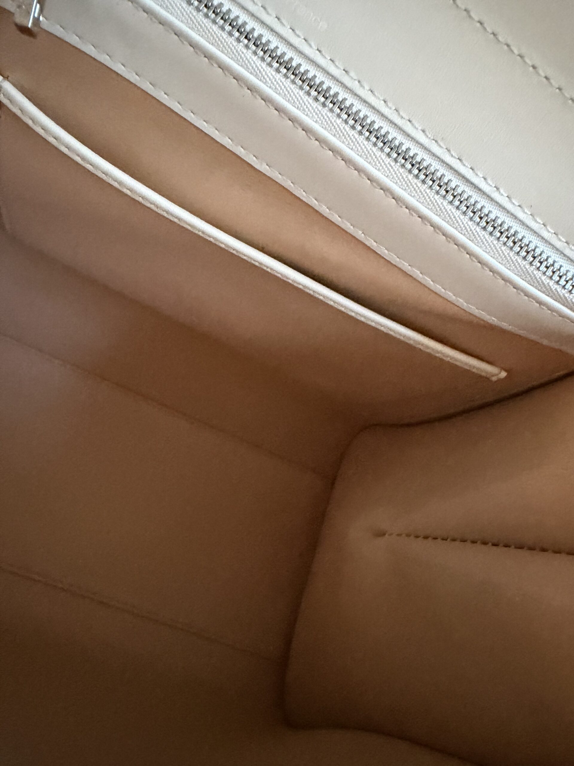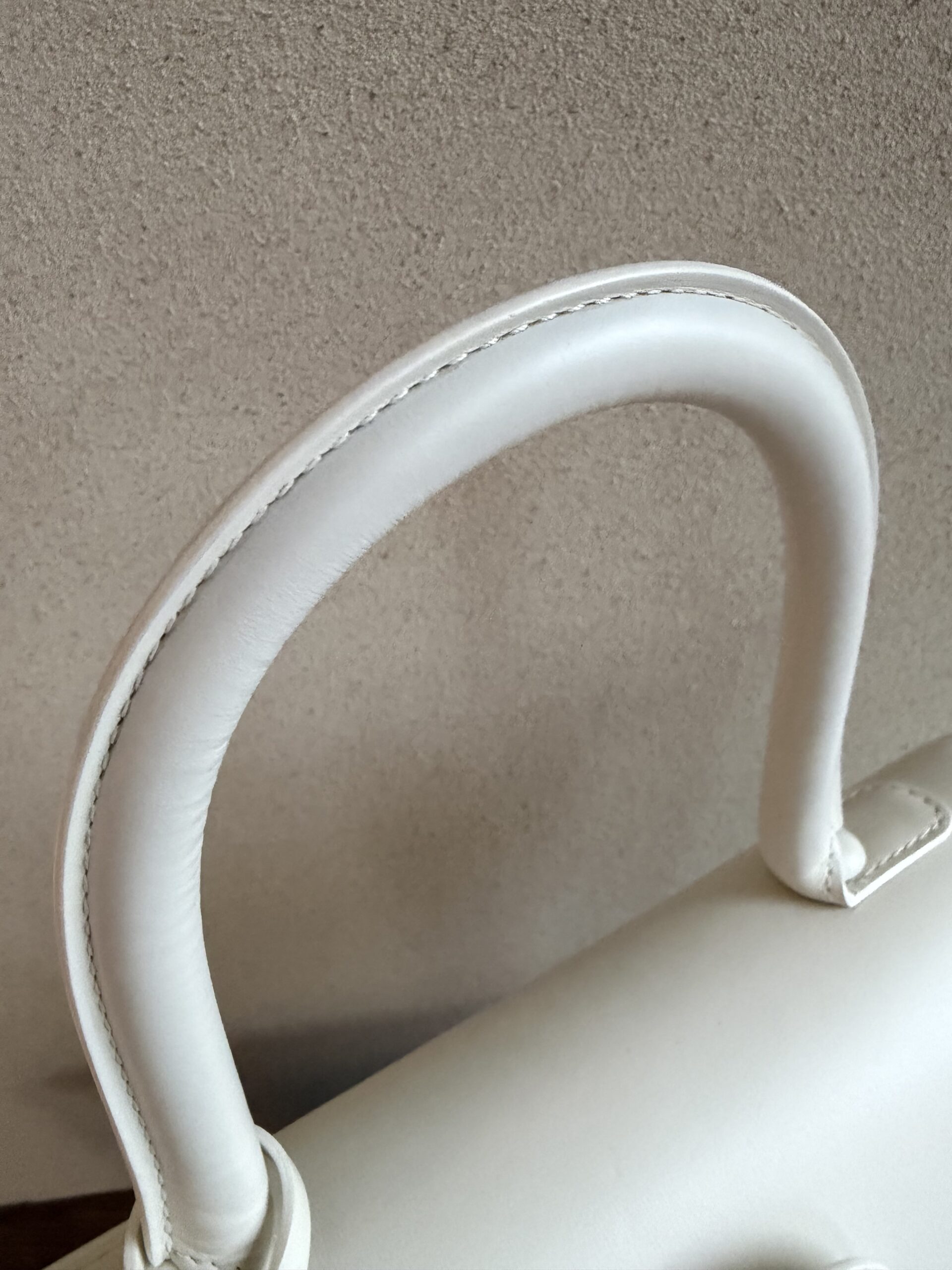 Deze Brillant is een specialleke: een MM in Box Calf in de kleur Ivoire met witte hardware.