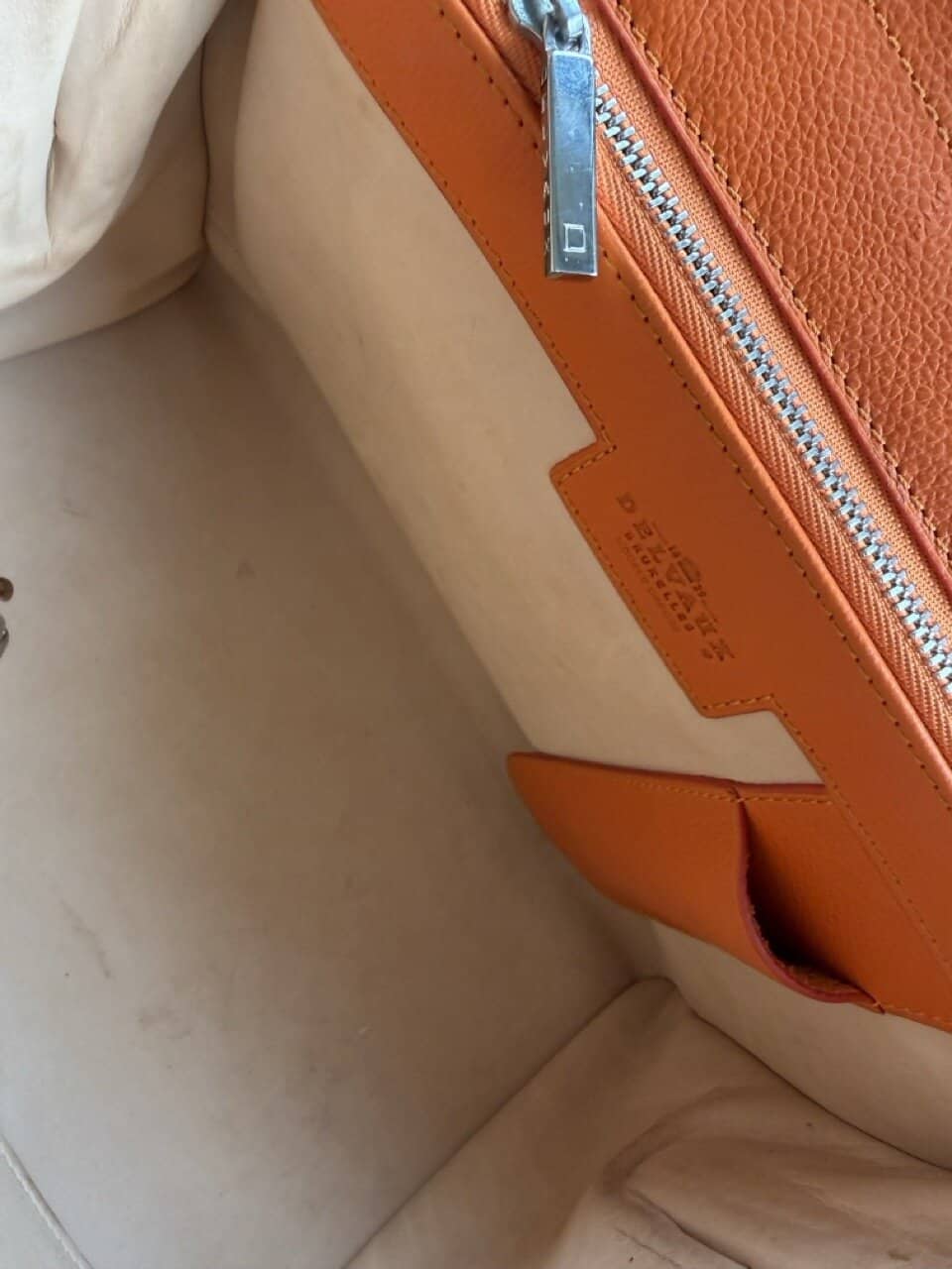 Atelier Mémé besteedt veel tijd en aandacht aan het zorgvuldig selecteren en, indien nodig, retoucheren van originele Delvaux handtassen. De tas is zo correct mogelijk in beeld gebracht met imperfecties die horen bij de vintage staat en manuele ambacht van zowel de Delvauxtas als de ambacht van het restaureren.