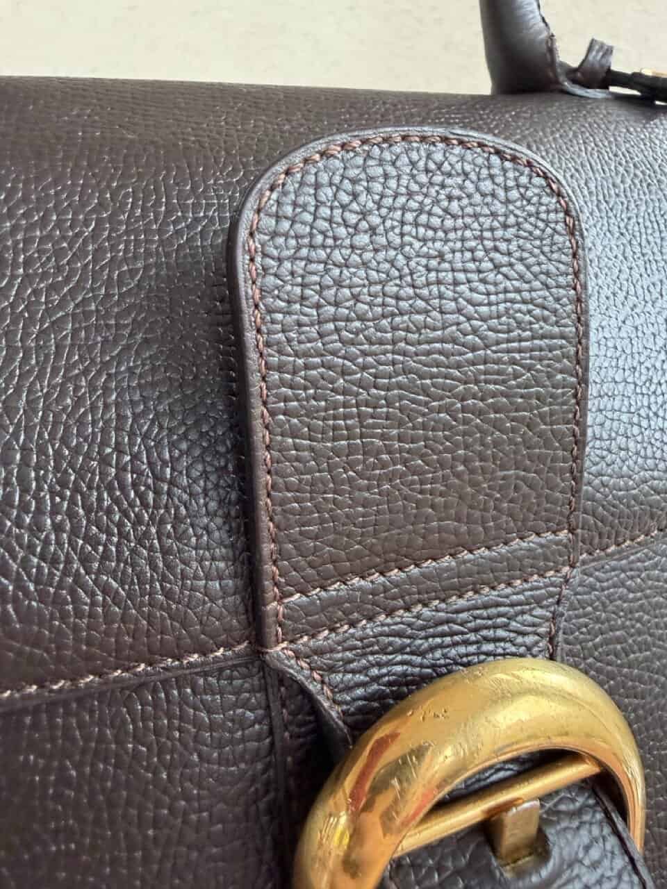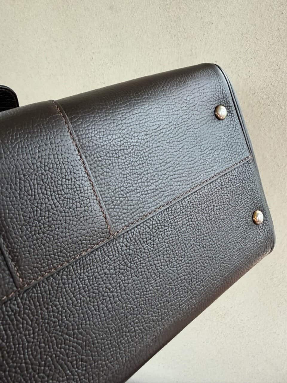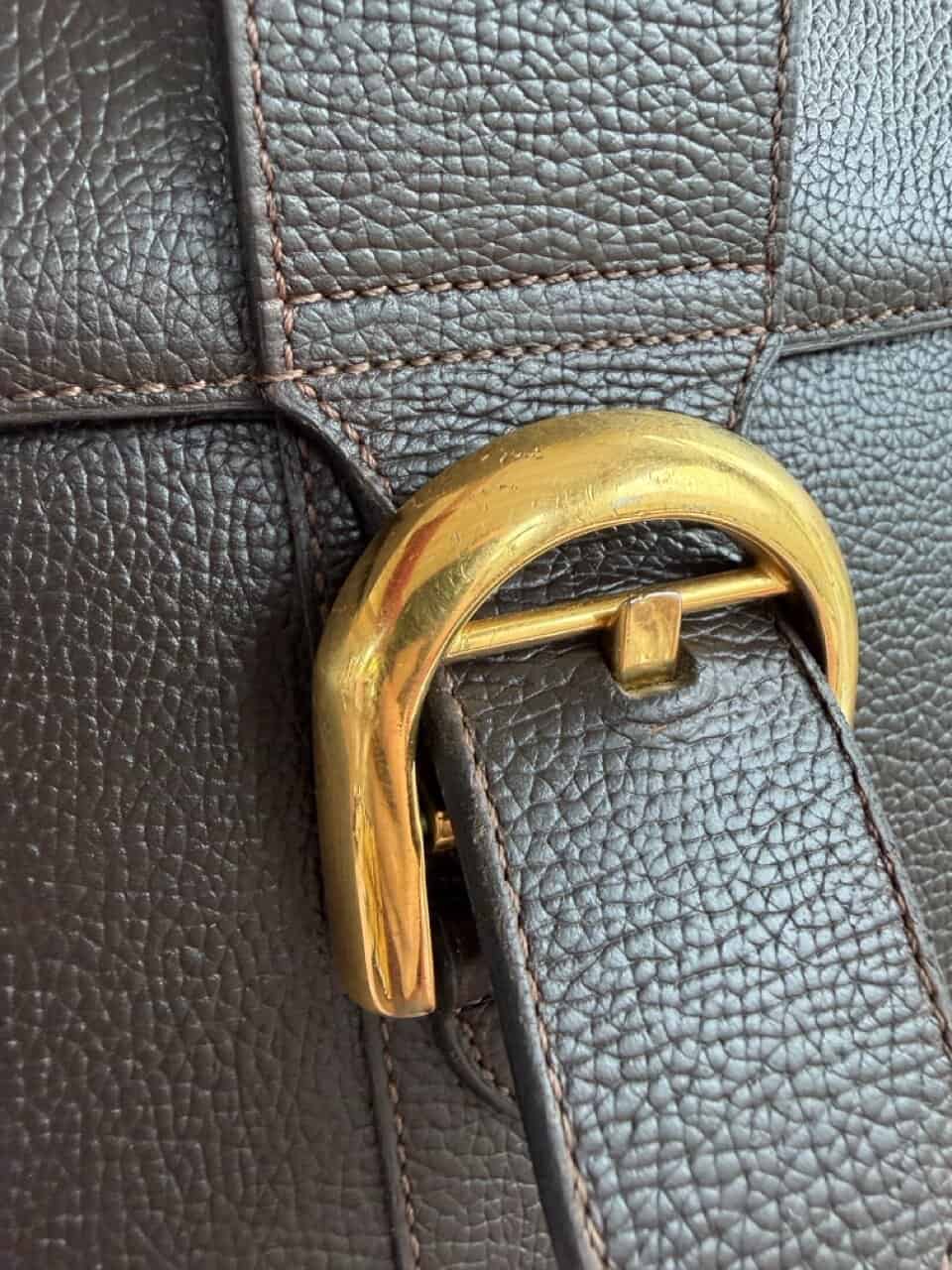Deze Brillant MM is van jaren 90 en komt in jumping Marron met gouden hardware.
