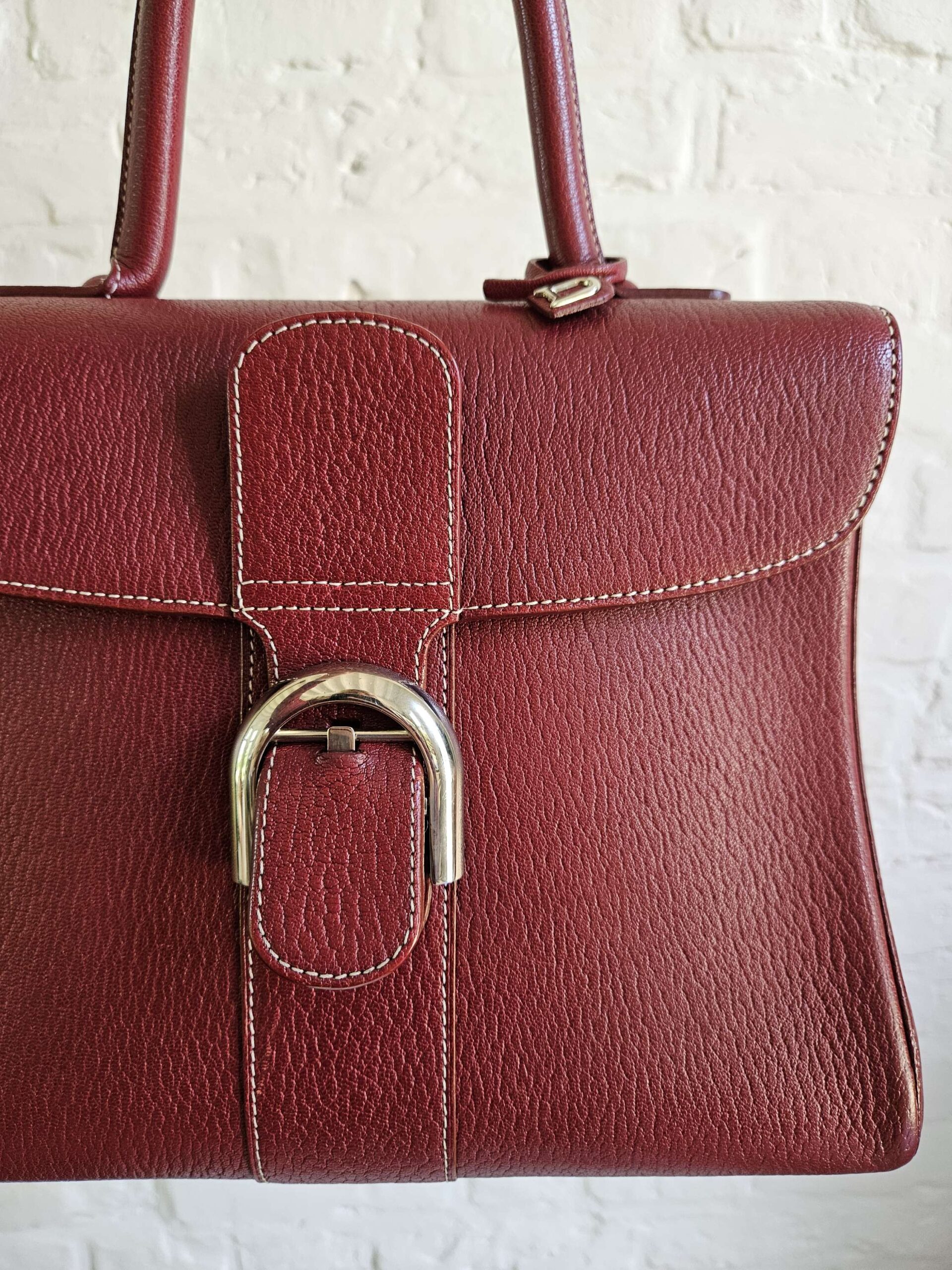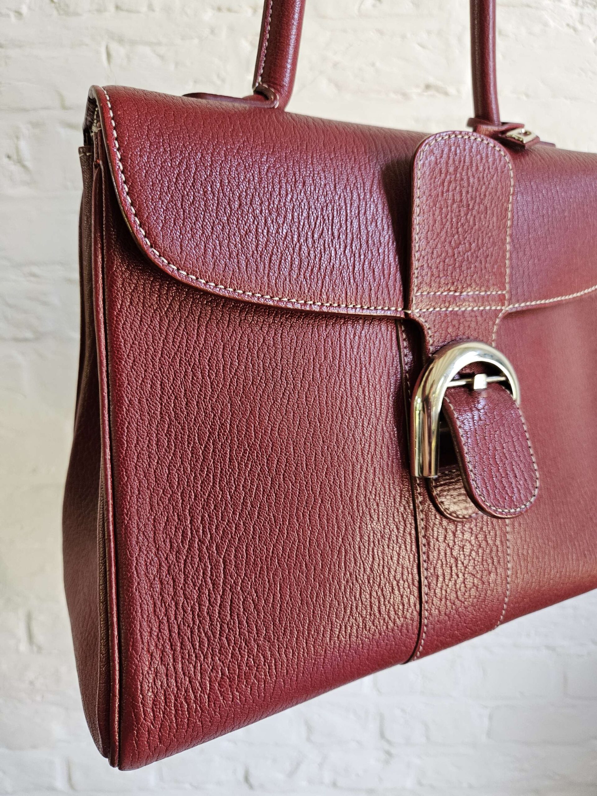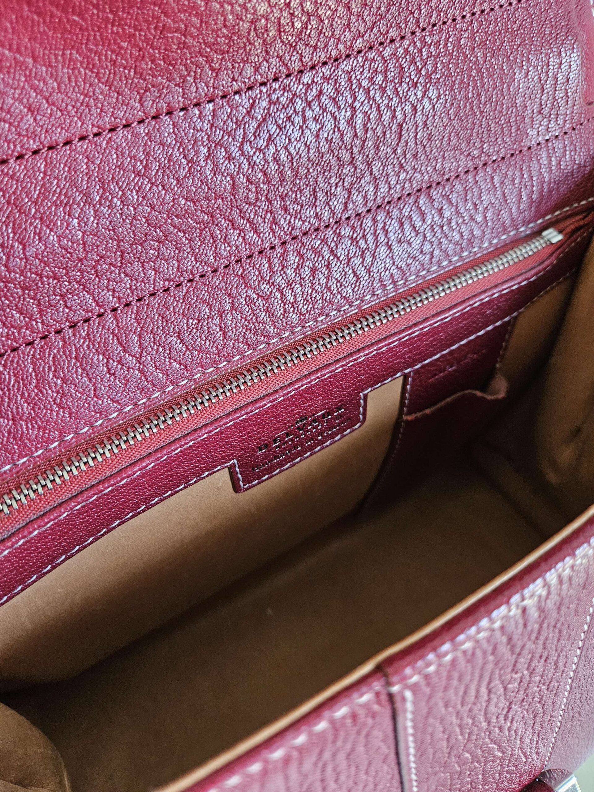 Deze Brillant is uitgevoerd in geitenleder, heel exclusief voor Delvaux. Het leder is centraal gesneden en dat geeft het waanzinnig mooie patroon achteraan op de rug. Mega exclusief en adembenemend in deze kleur Rosso. De witte naden zijn de kers op de taart. Spierwit en als nieuw!
