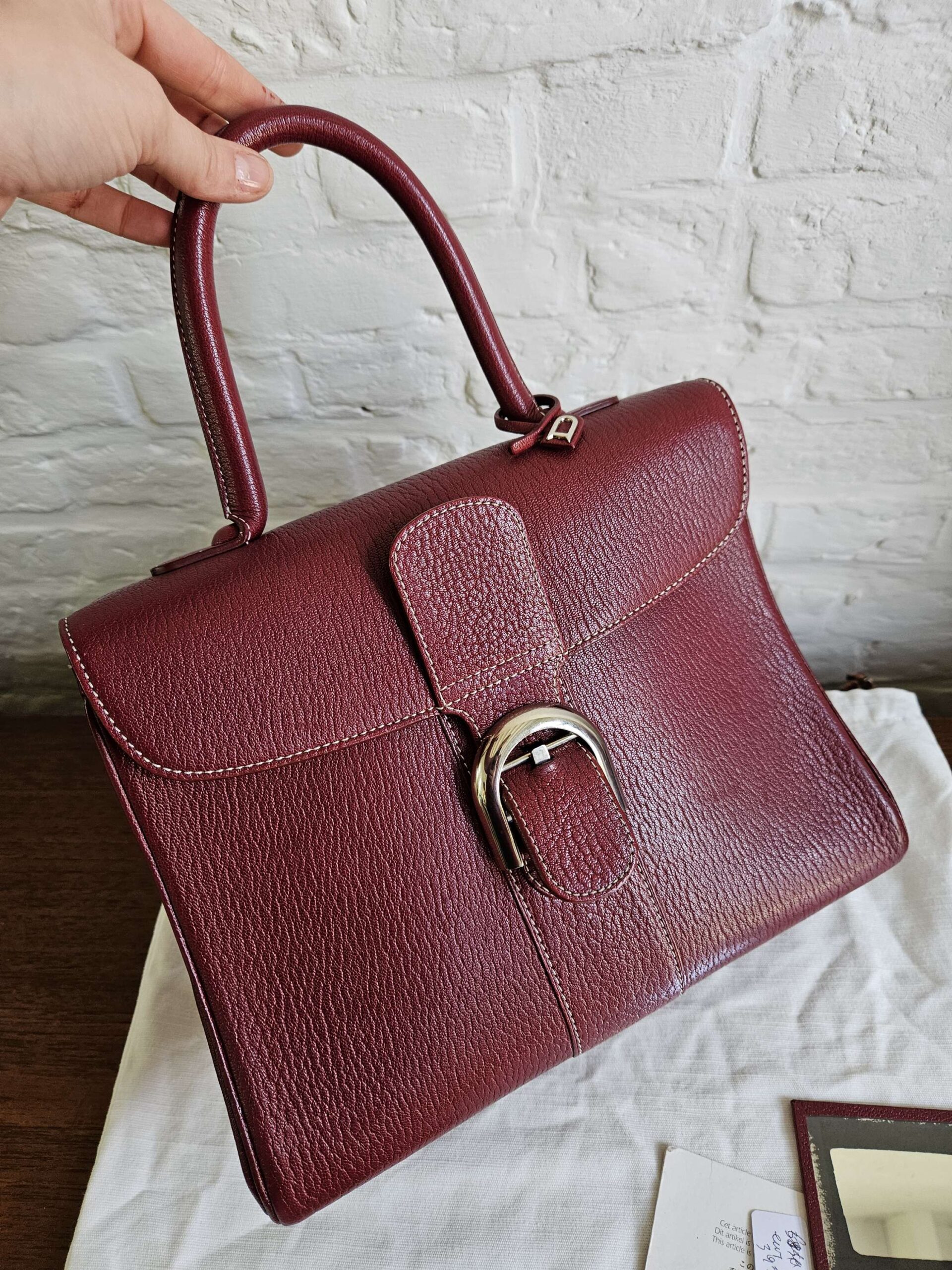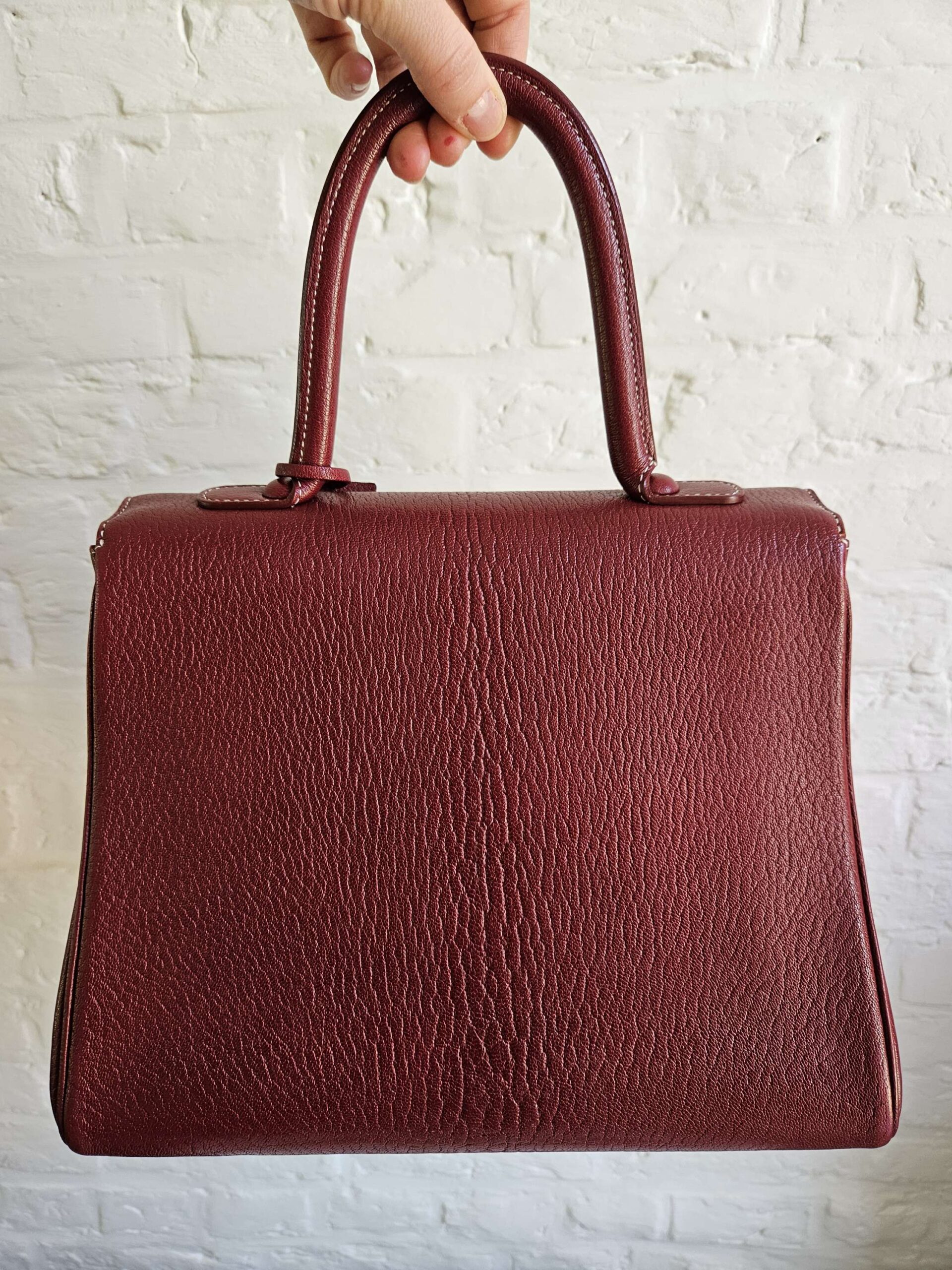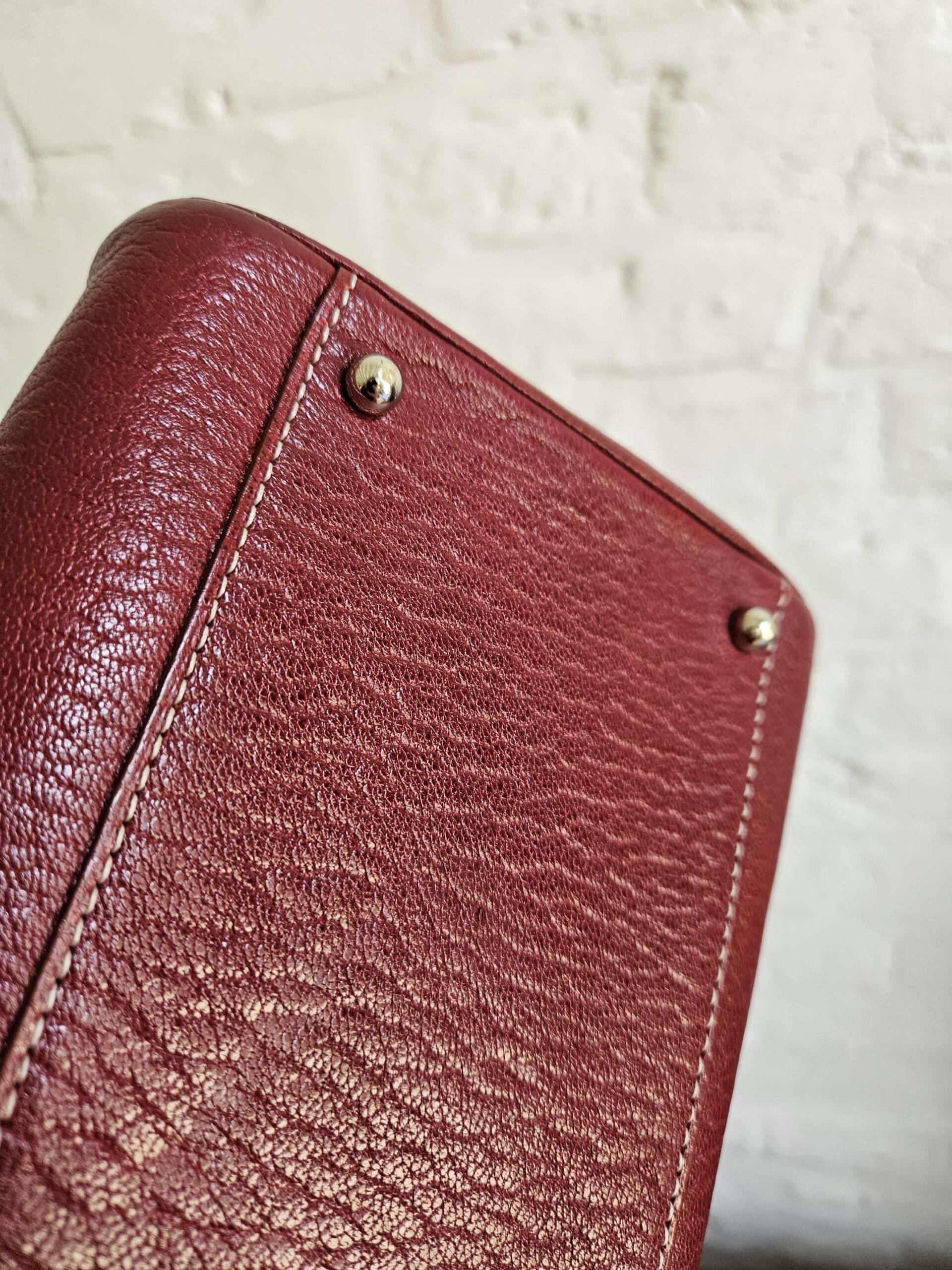 Deze Brillant is uitgevoerd in geitenleder, heel exclusief voor Delvaux. Het leder is centraal gesneden en dat geeft het waanzinnig mooie patroon achteraan op de rug. Mega exclusief en adembenemend in deze kleur Rosso. De witte naden zijn de kers op de taart. Spierwit en als nieuw!