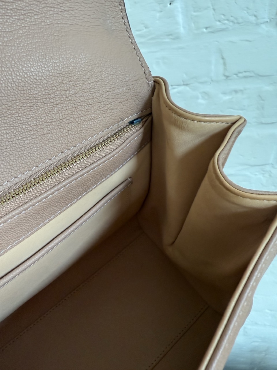 Atelier Mémé besteedt veel tijd en aandacht aan het zorgvuldig selecteren en, indien nodig, retoucheren van originele Delvaux handtassen. De tas is zo correct mogelijk in beeld gebracht met imperfecties die horen bij de vintage staat en manuele ambacht van zowel de Delvauxtas als de ambacht van het restaureren.