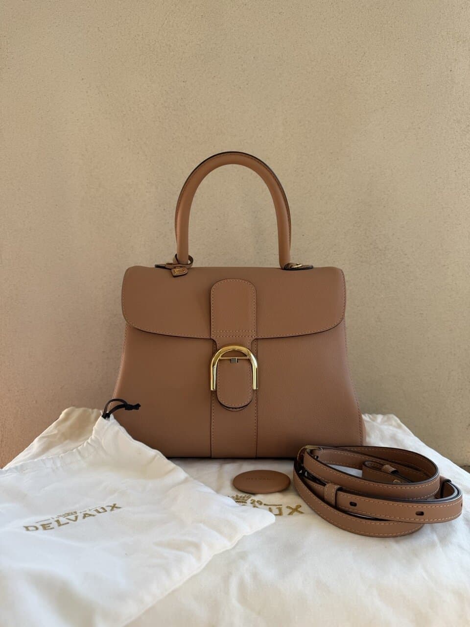 | Accessories | Authentieke Delvaux stofzak, Authentieke Delvaux stofzak voor riem, Riem, Spiegel |