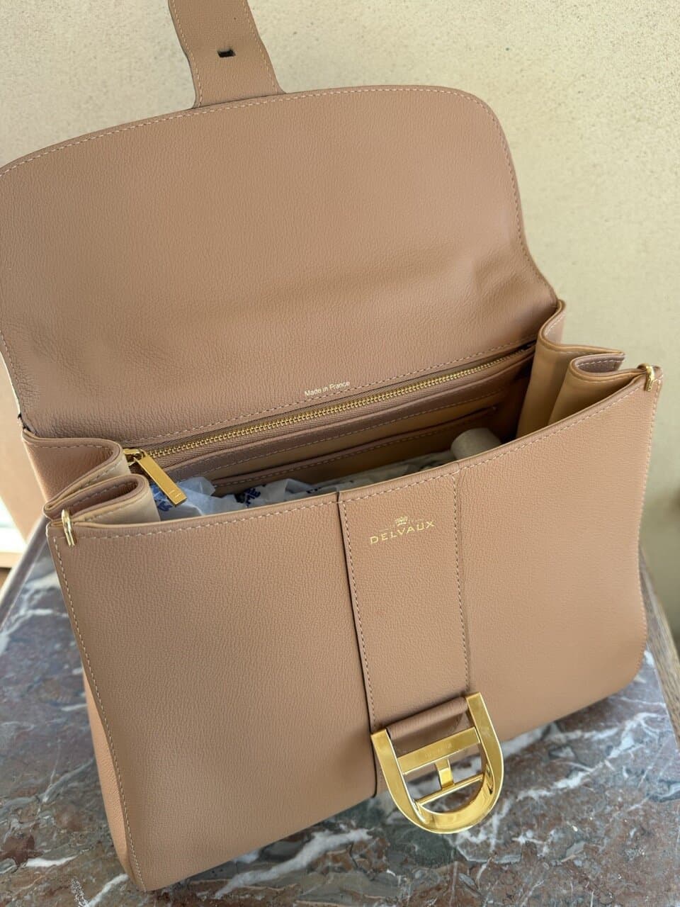 De Delvaux handtas wordt zorgvuldig verpakt en verzekerd verzonden.