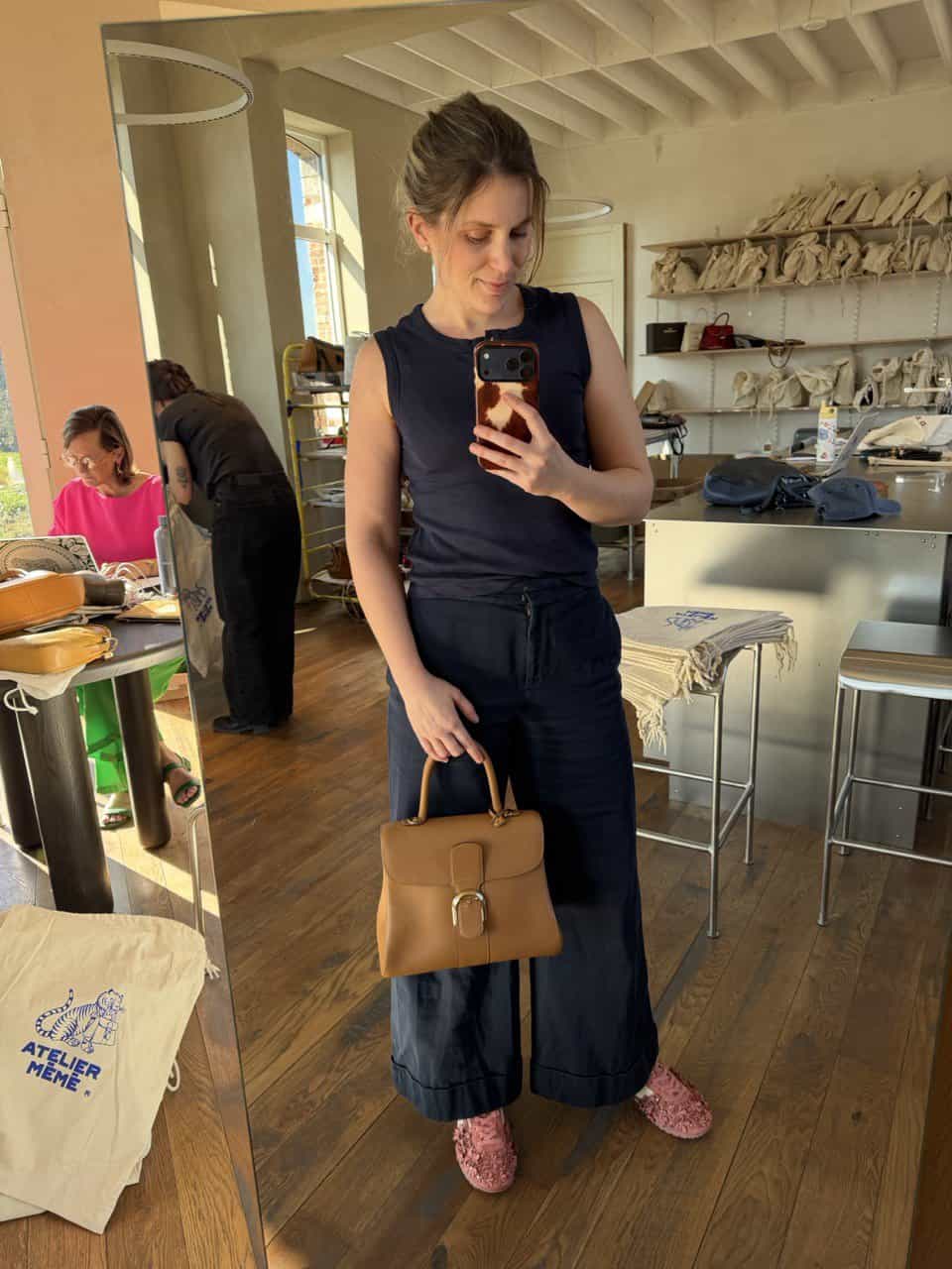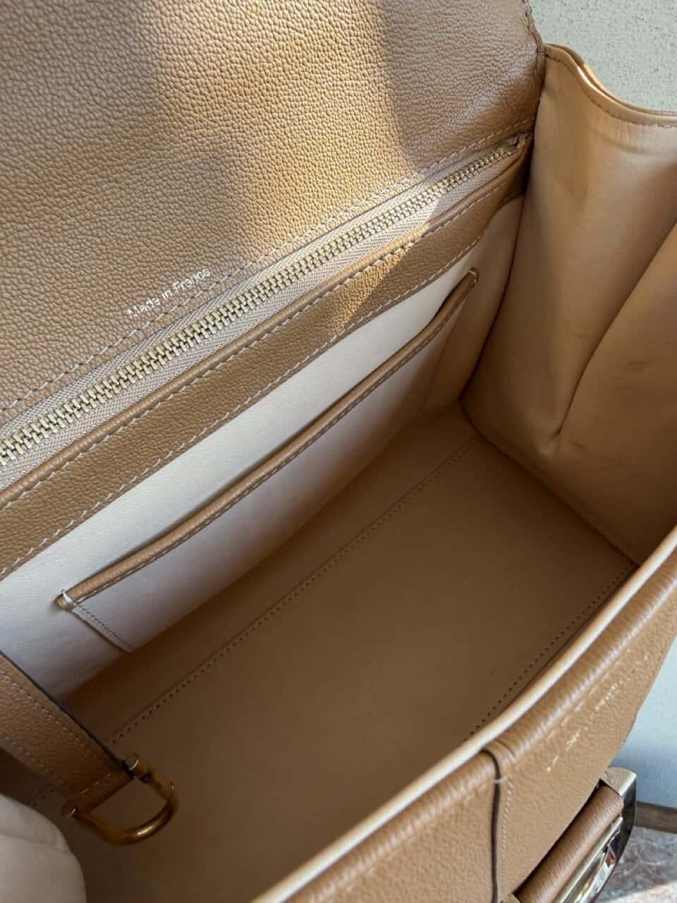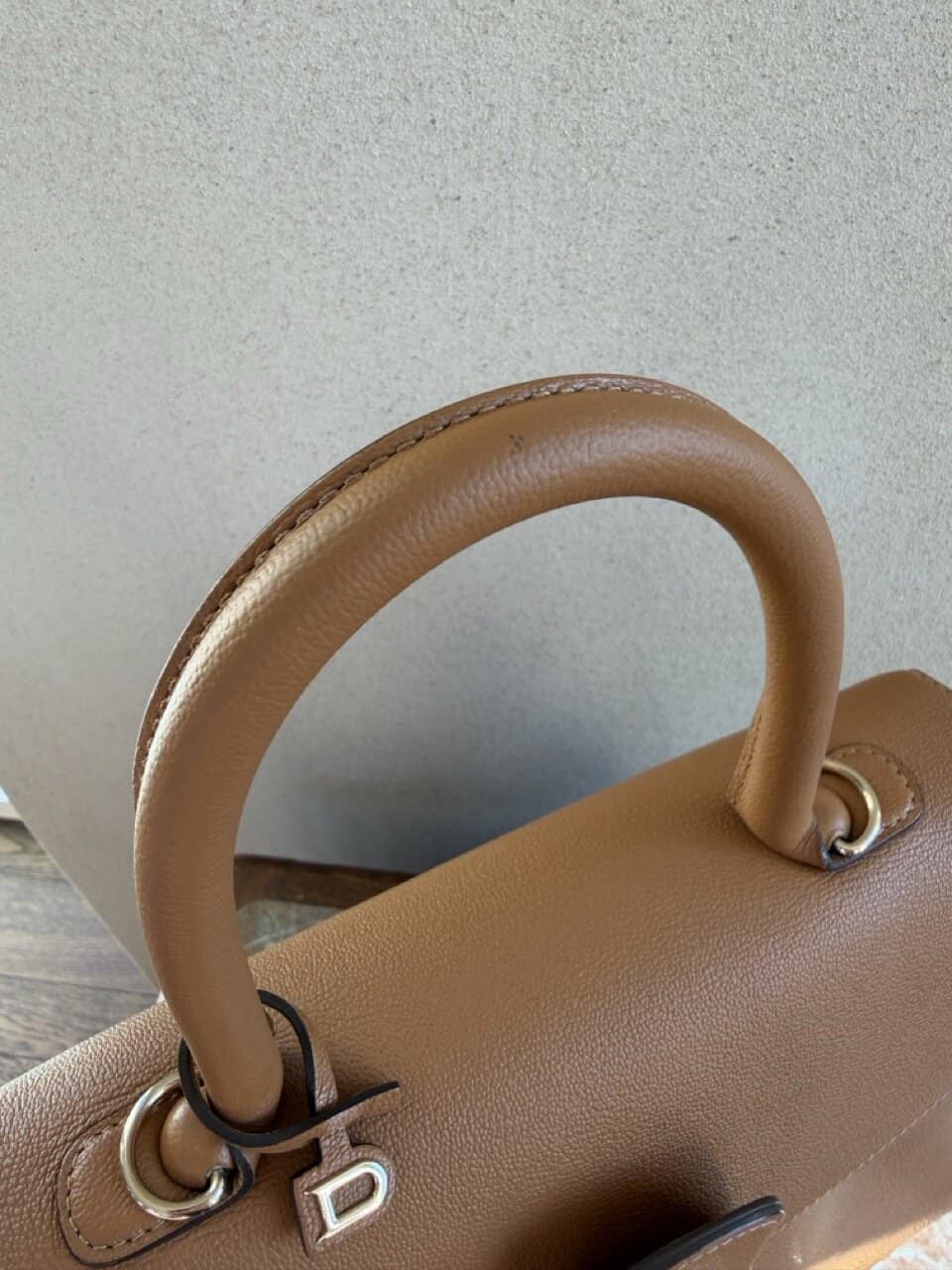 Atelier Mémé besteedt veel tijd en aandacht aan het zorgvuldig selecteren en, indien nodig, retoucheren van originele Delvaux handtassen. De tas is zo correct mogelijk in beeld gebracht met imperfecties die horen bij de vintage staat en manuele ambacht van zowel de Delvauxtas als de ambacht van het restaureren.