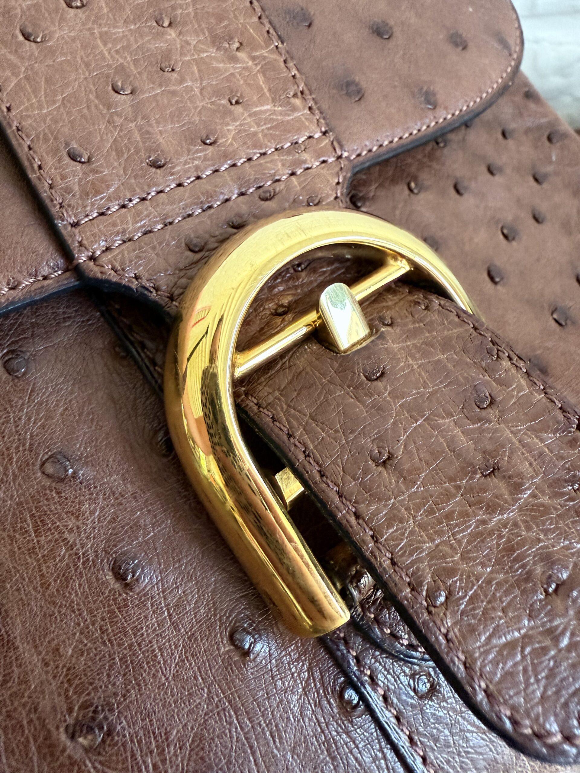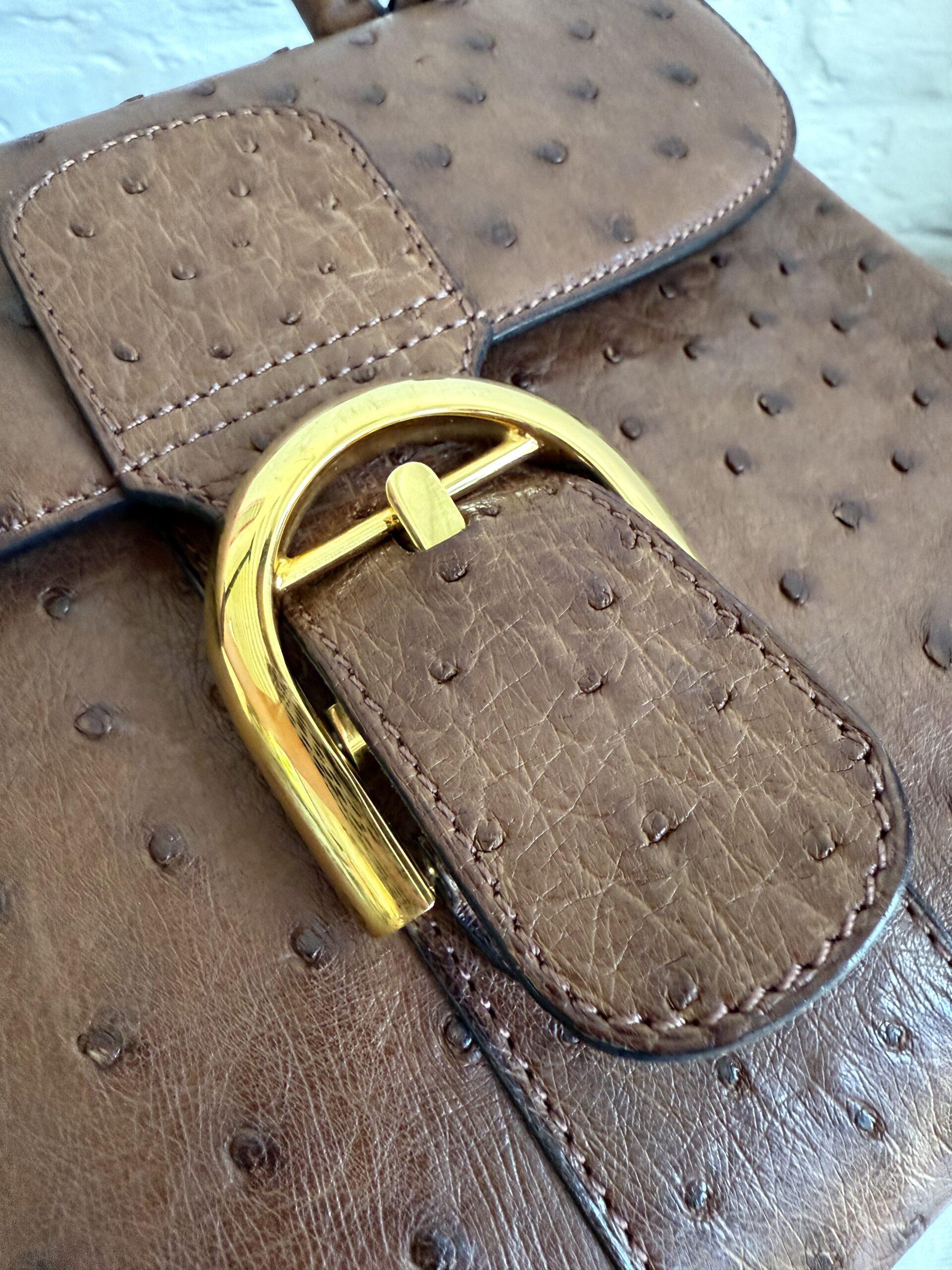 De Brillant PM in een ultieme uitvoering van naturel struisvogelhuid en gouden hardware.