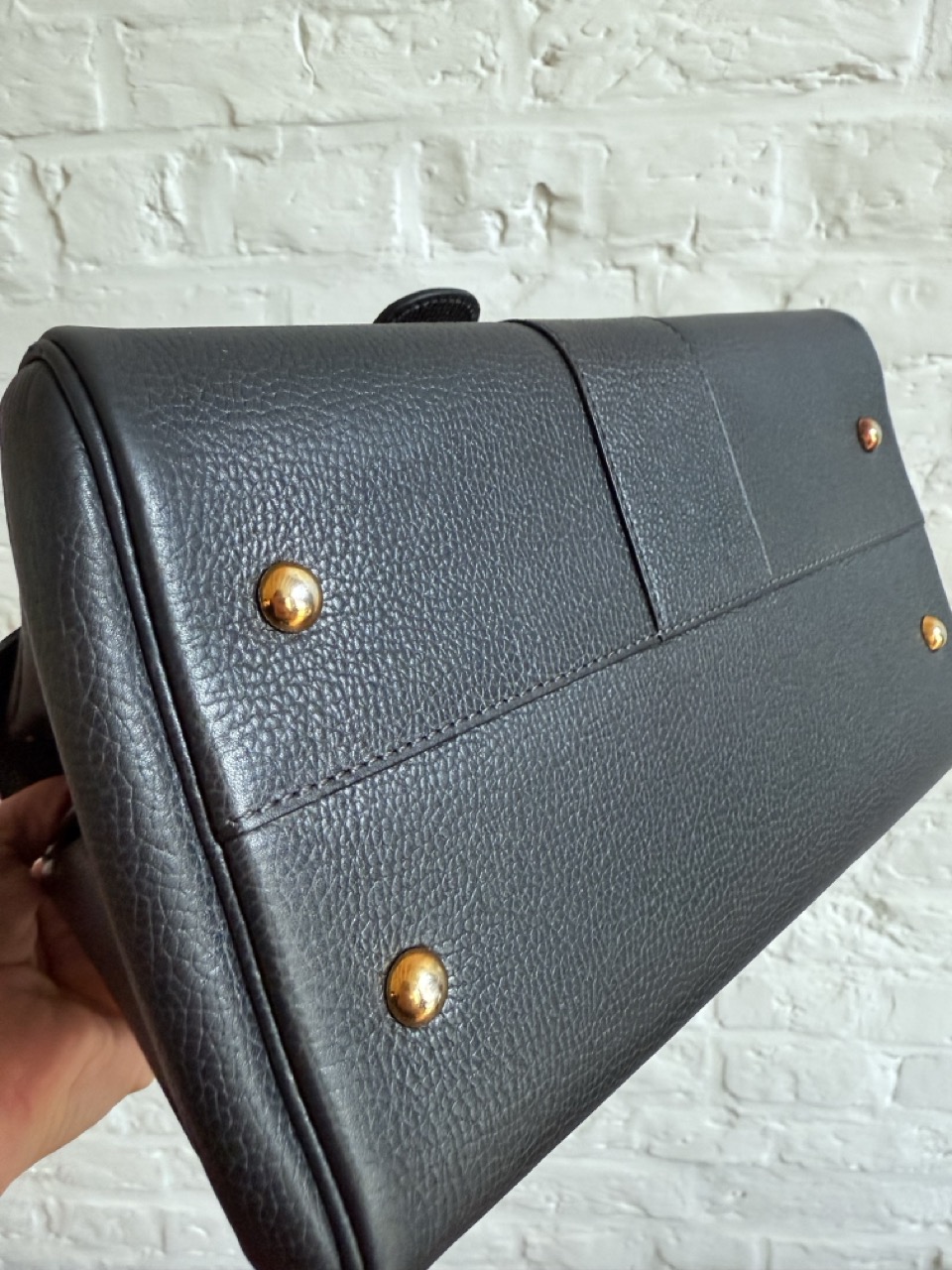 Een vintage Brillant PM in een ongelofelijk mooie uitvoering van Grijze Jumping Calf. Ongelofelijk mooi, en ook de conditie van de tas is om duimen en vingers bij af te likken. In heel mooie vorm; kijk maar naar die rug en dat handvat. De boekel blinkt als een spiegel en vertoont weinig tot geen krassen.