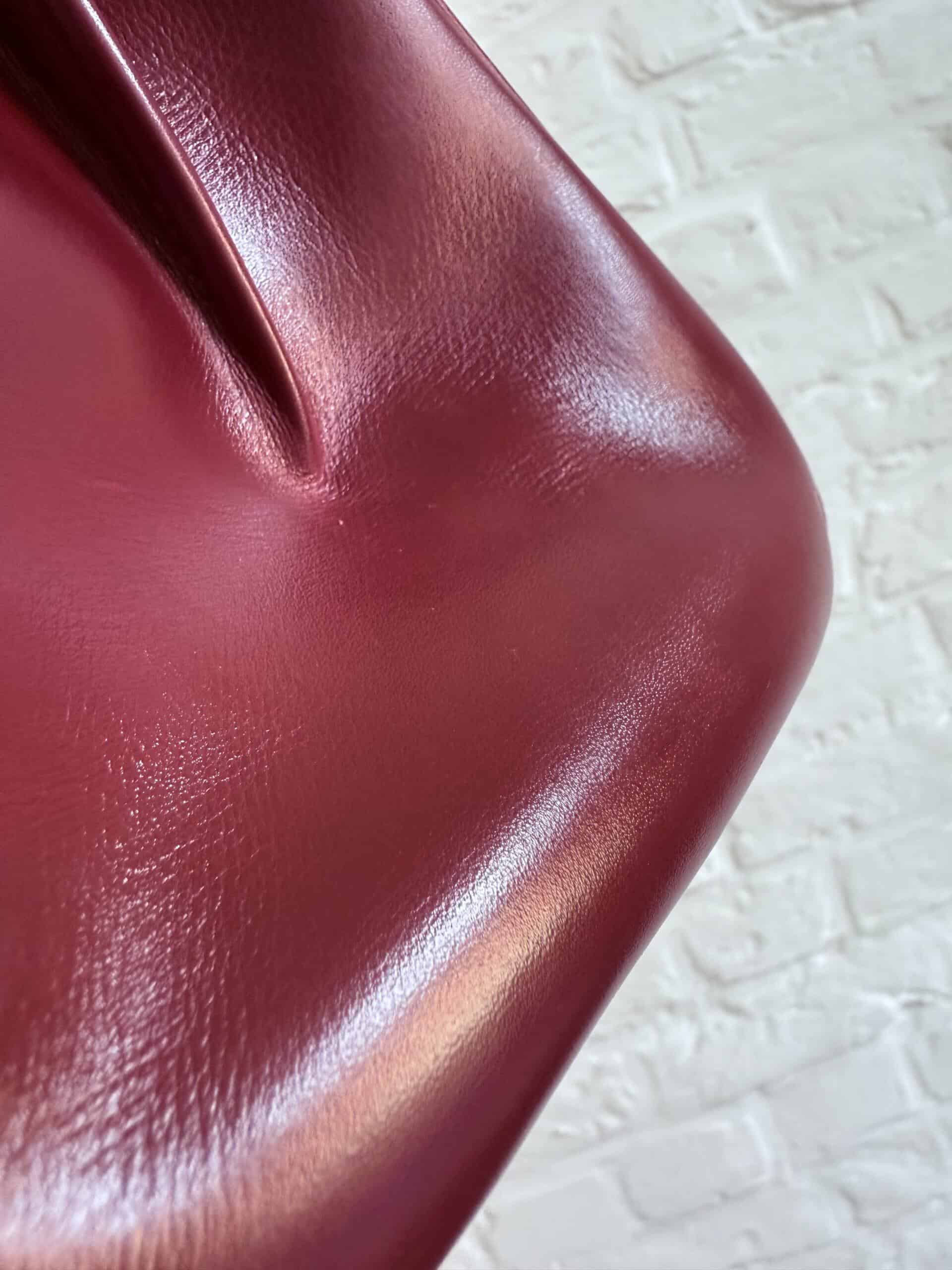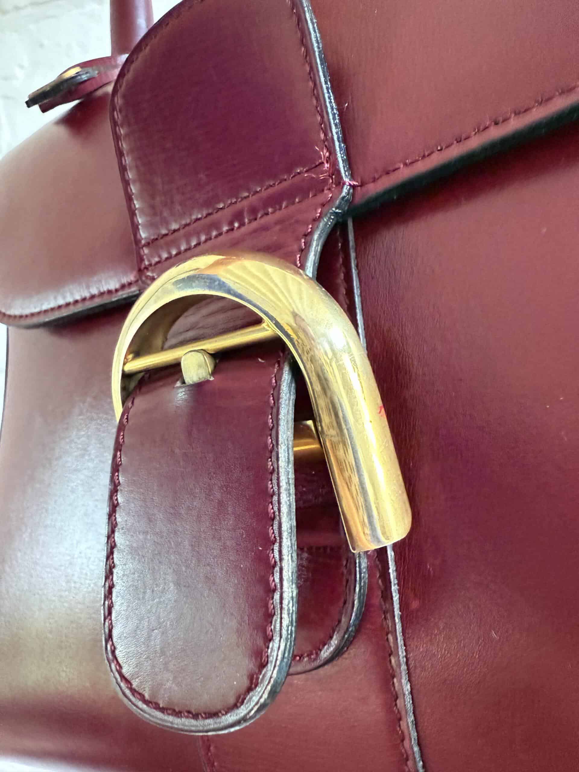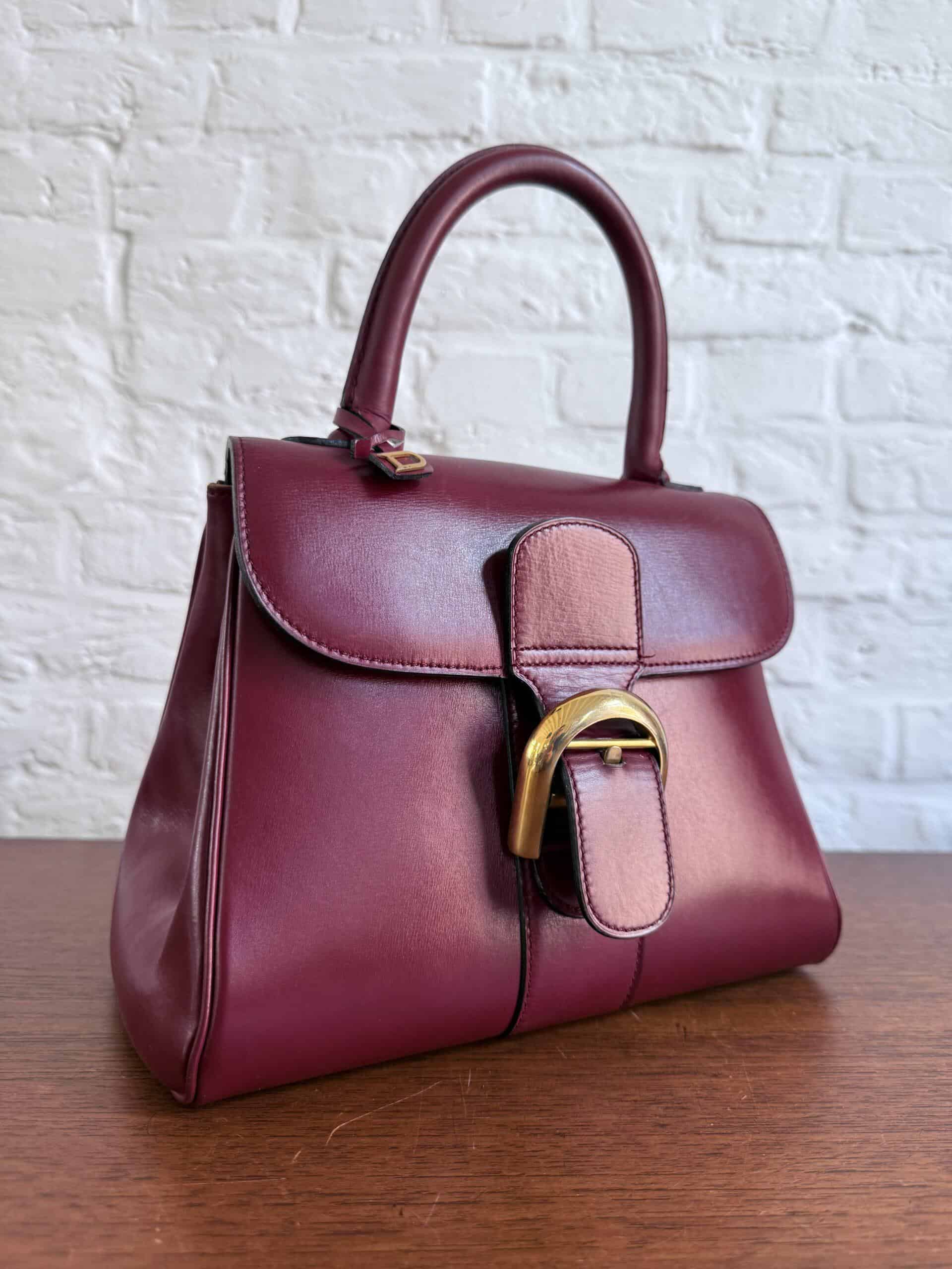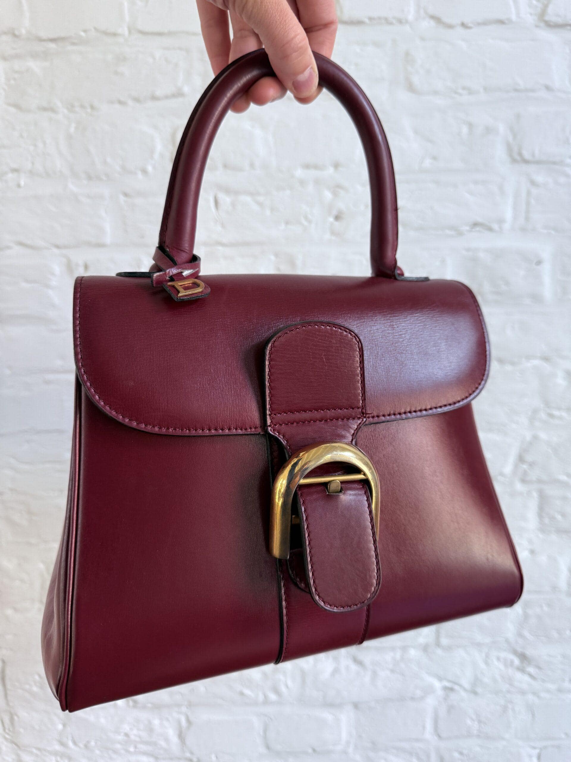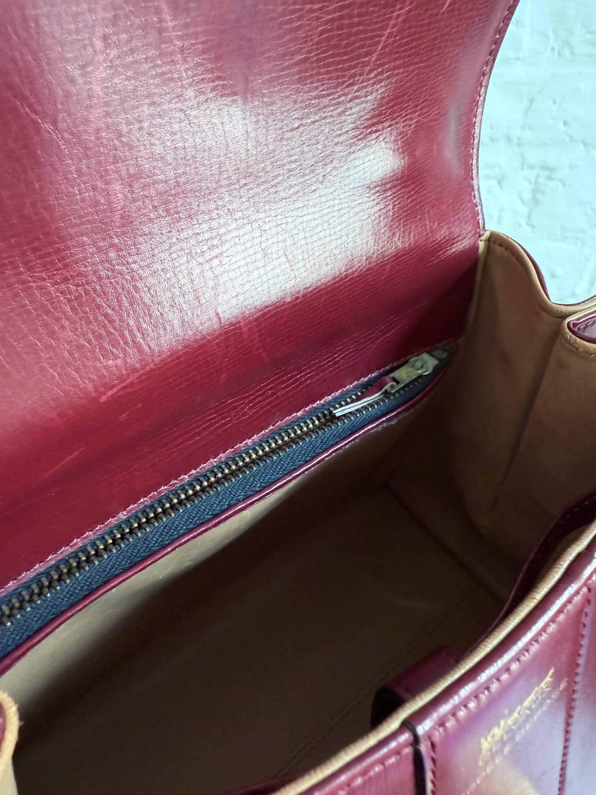 Een vintage Brillant PM in een ongelofelijk mooie uitvoering van Ruby Jumping Calf. Ongelofelijk mooi, en ook de conditie van de tas is om duimen en vingers bij af te likken. In heel mooie vorm; kijk maar naar die rug en dat handvat. De boekel blinkt als een spiegel en vertoont weinig tot geen krassen.